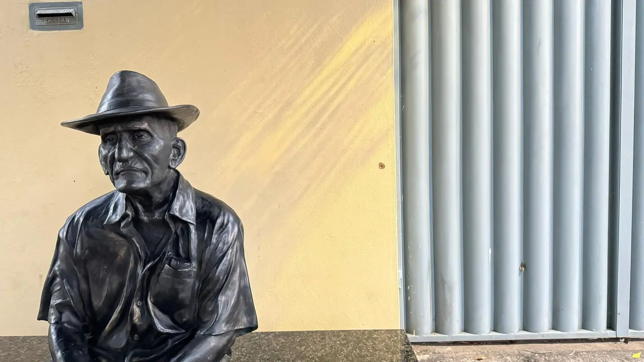 Antes de me despedir de dona Socorro, consegui fotografá-la, mesmo que de longe. Ela não quis sentar ao lado da estátua.