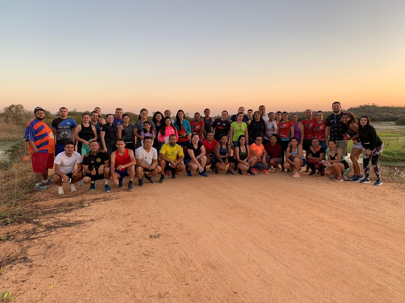 Tudo começou com um trio: o farmacêutico Luann Medeiros e os comerciários Nadja Kairan e Kayron Albuquerque. Hoje o grupo de corrida conta com 102 moradores de Cedro, município do Centro-Sul do Ceará. São três encontros semanais.