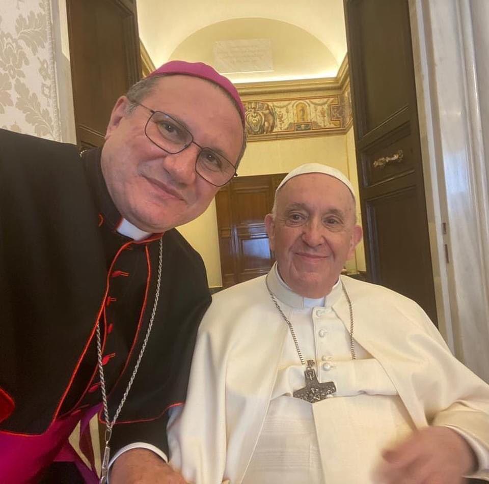 No Vaticano, bispo da Diocese do Crato faz selfie com Papa Francisco