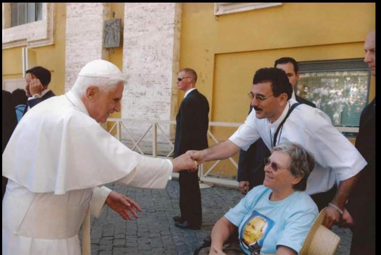 Outro religioso que compartilhou fotografia é o padre Paulo Lemos, pároco de São José Operário na Ponta da Serra, no Crato, e ex-pároco de Santana do Cariri, a terra da Beata Benigna. Era maio de 2006, Lemos aparece no Vaticano em frente a Bento XVI, tendo ao lado a já falecida freira belga irmã Annette Dumoulin, quando foram entregar o processo de reabilitação do Padim. É evidente a simpatia do papa.