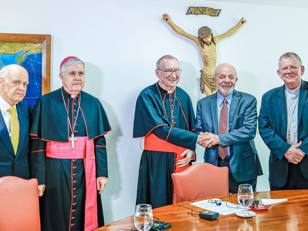 Parolin é o atual Secretário de Estado do Vaticano, por isso, tem trânsito com outras nações (característica considerada importante para um Papa), inclusive veio ao Brasil recentemente, quando encontrou o presidente Lula (foto).