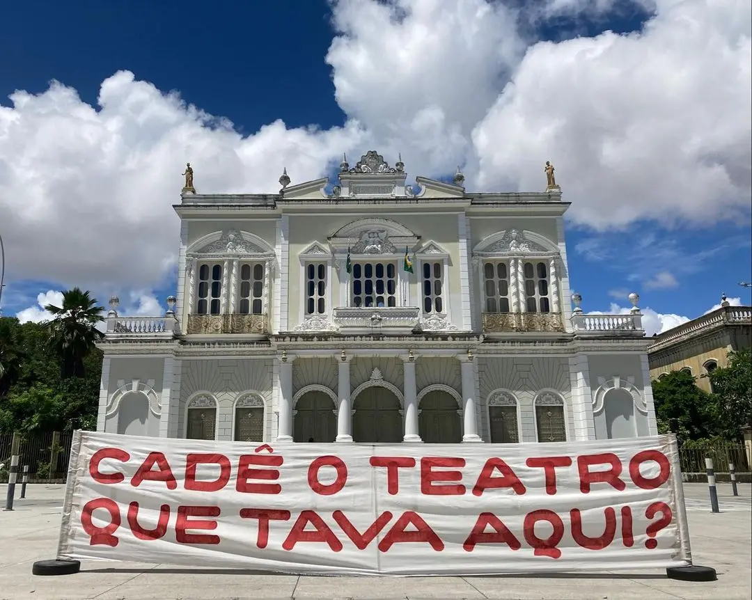 Com faixas postas na frente de cada teatro público da Capital, a classe artística questiona, por exemplo, até quando vai a reforma do Teatro Sesc Emiliano Queiroz, que teve início em 2019 ou quando a gestão irá propor cachês condizentes com o mercado atual e deixar de ofertar o defasado valor de R$ 1000.