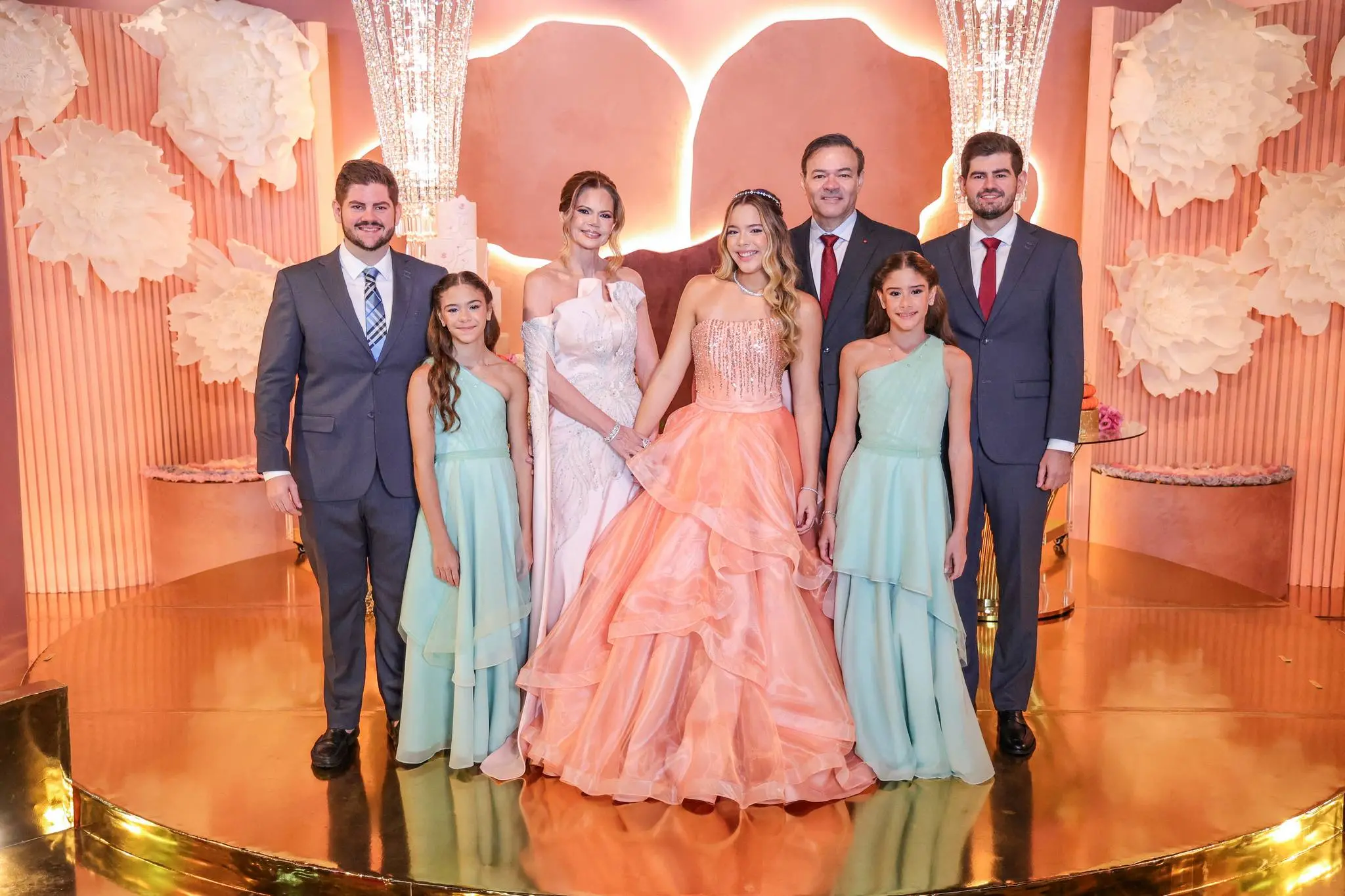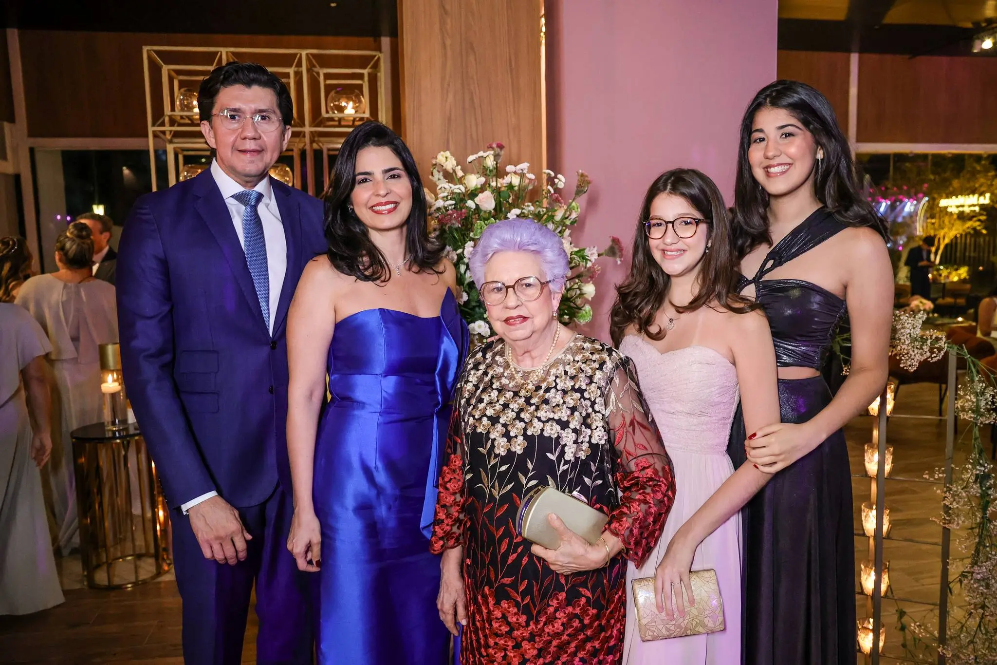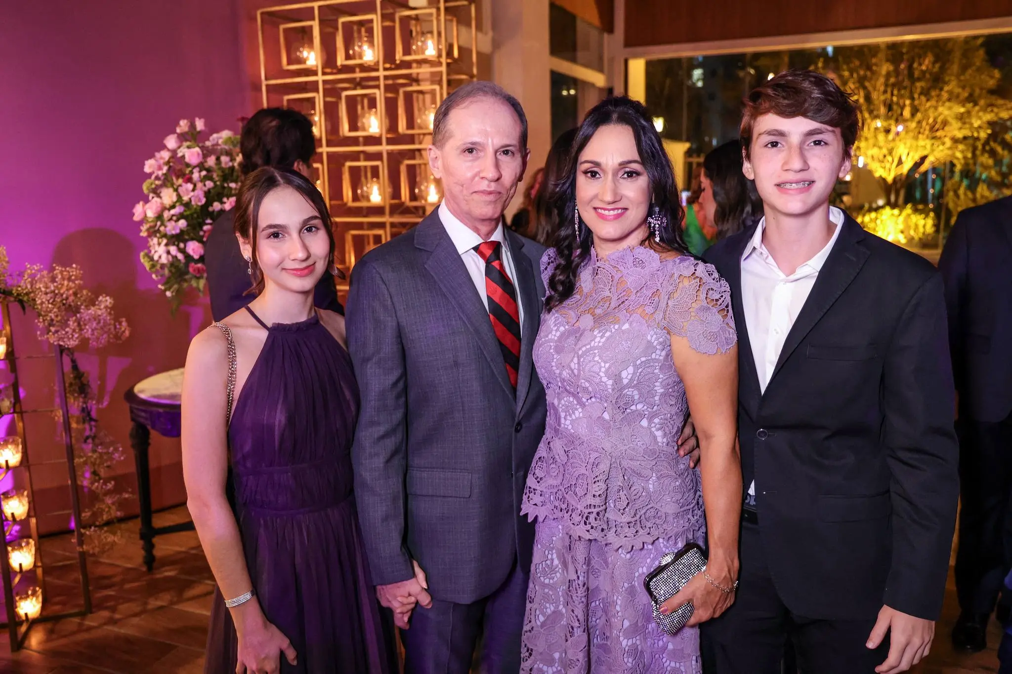 A festa contou com a presença de familiares e amigos próximos, todos imersos em um ambiente de pura alegria e requinte.