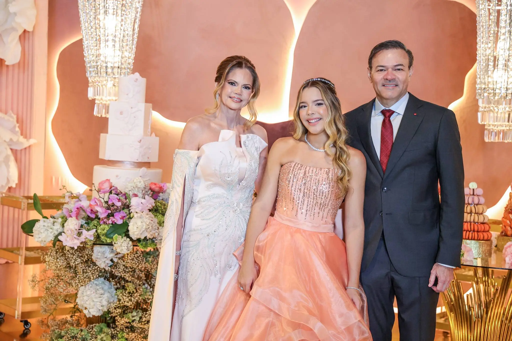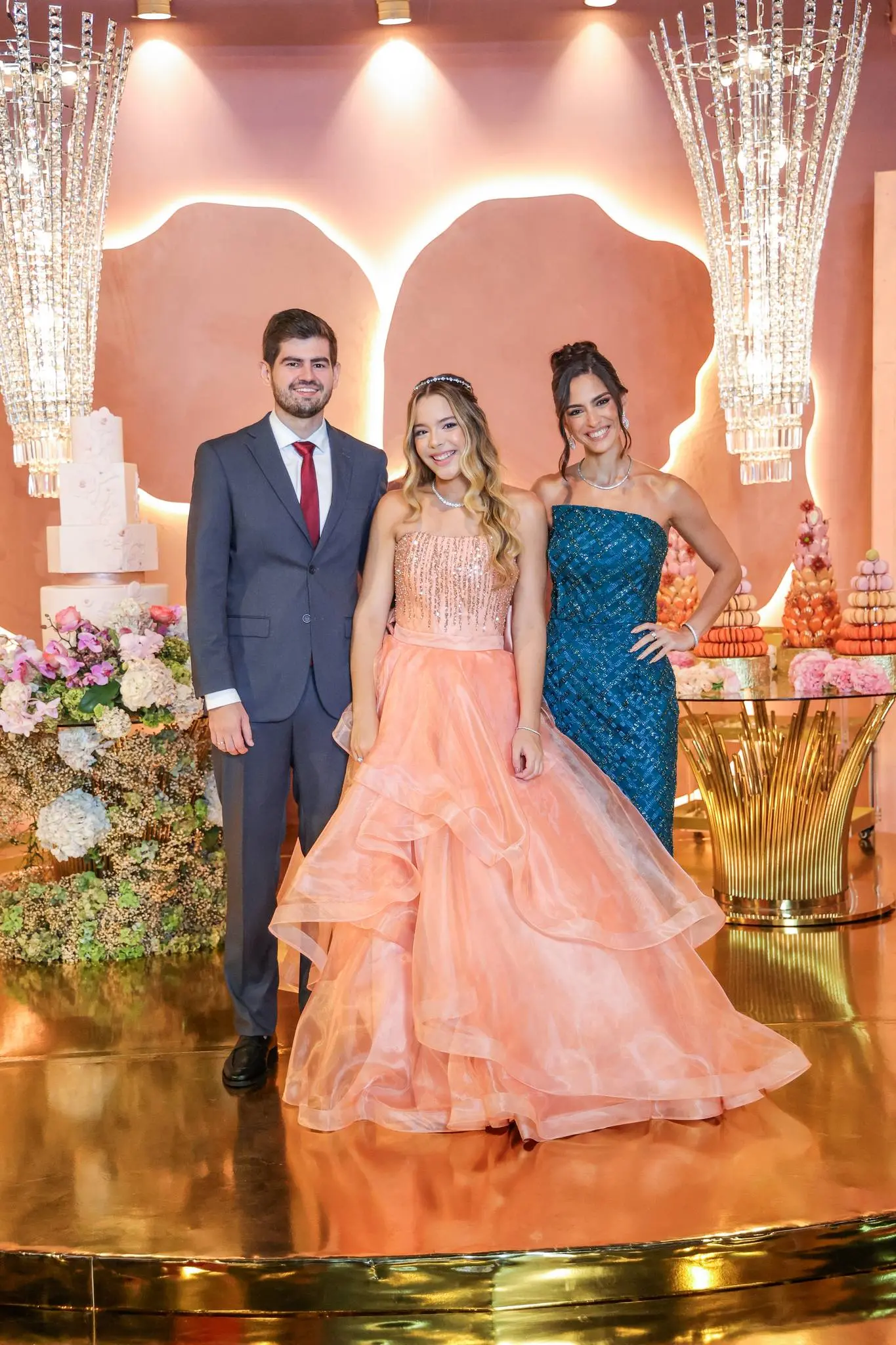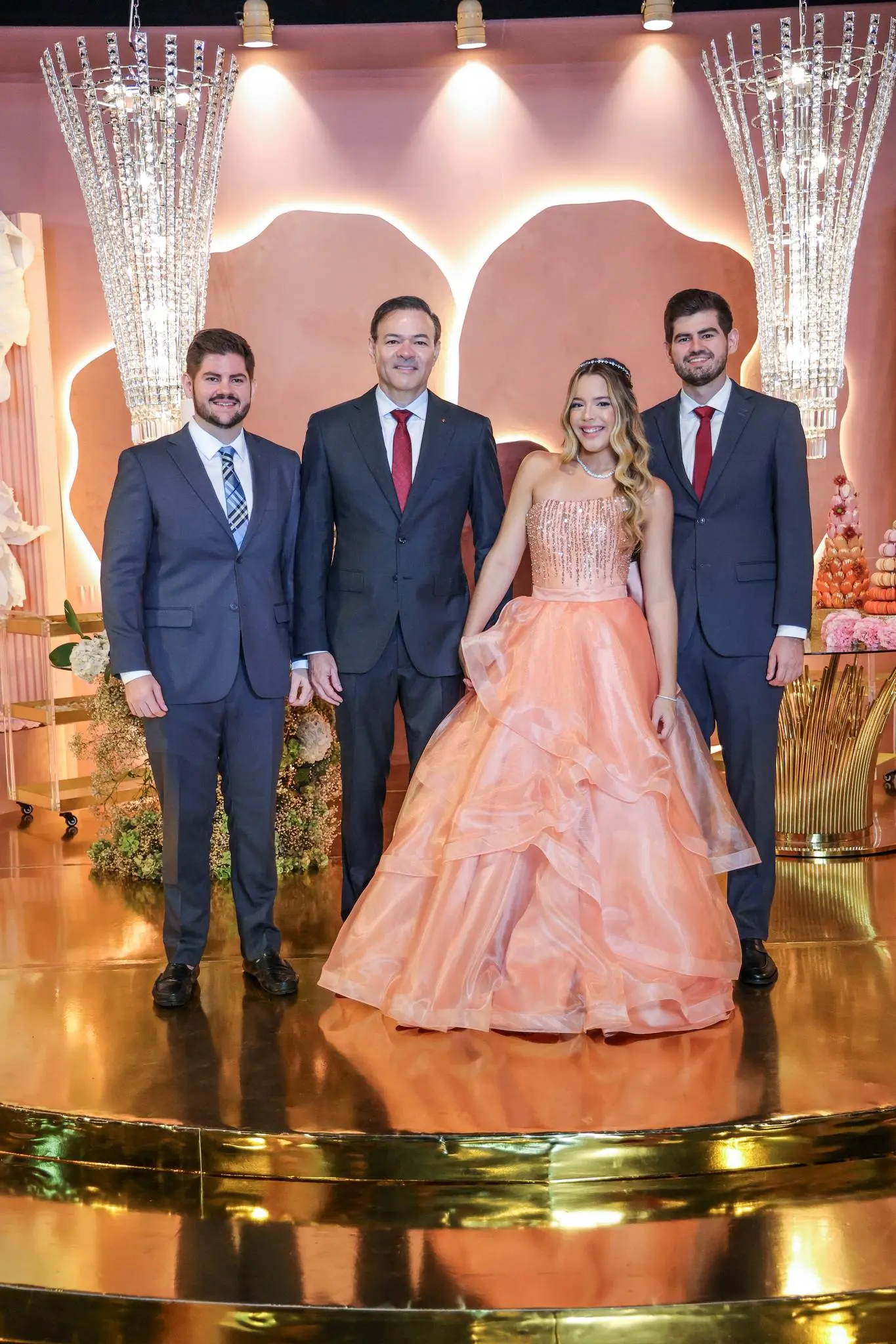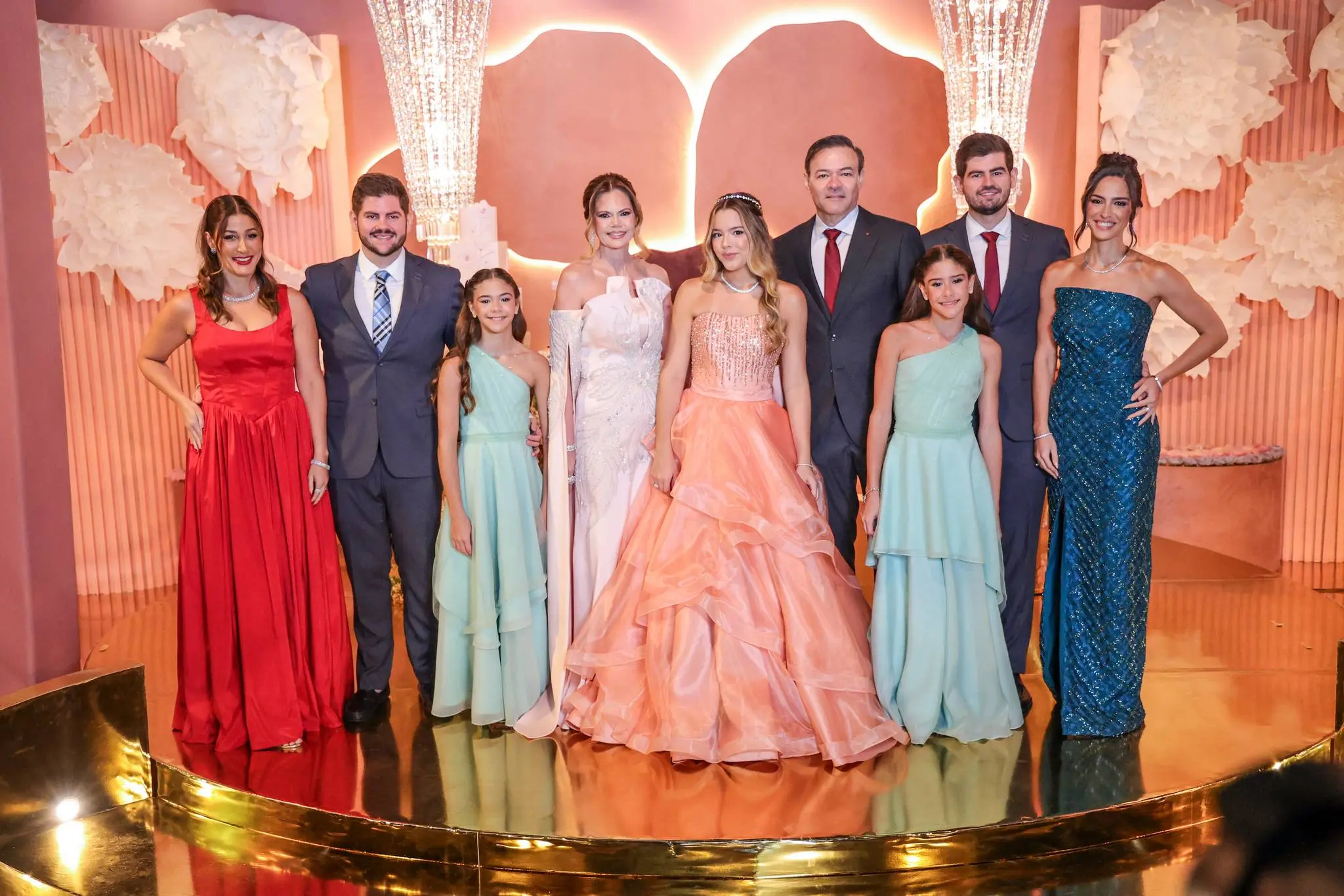 A festa contou com a presença de familiares e amigos próximos, todos imersos em um ambiente de pura alegria e requinte.