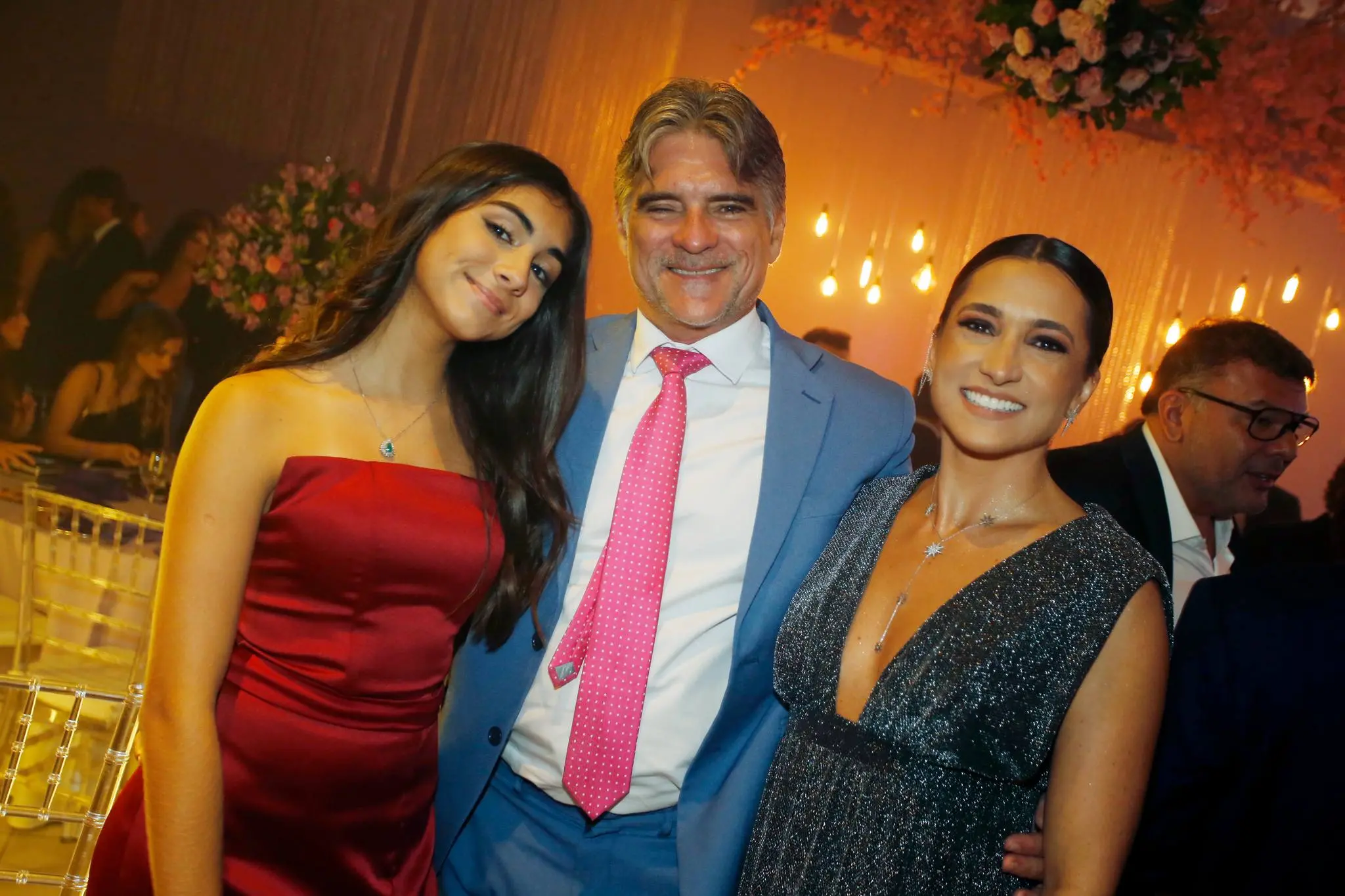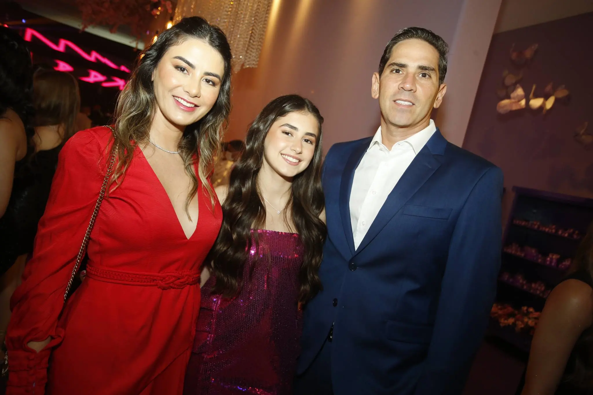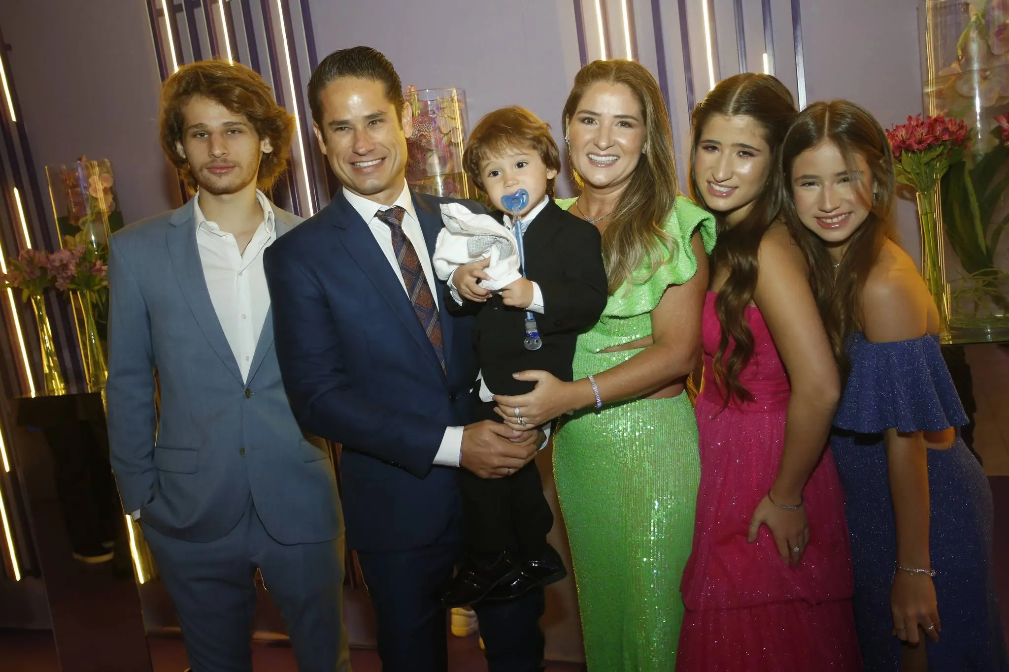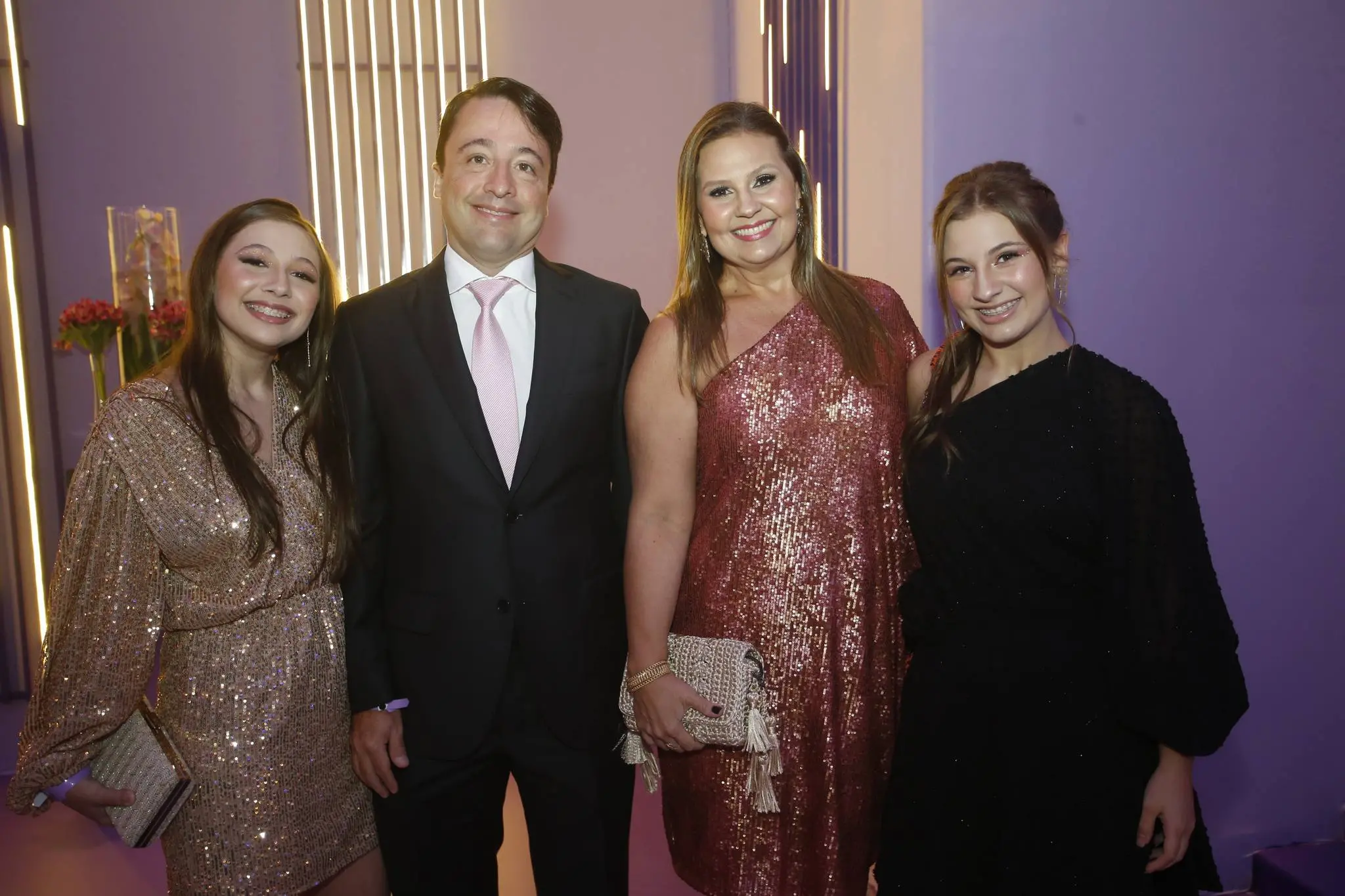 A família Almada Queirós estava elegantemente vestida. Todos dentro da paleta de cores da festa e/ou da aniversariante. Destaque para as mulheres da família: mãe e filha usando Ticiana Sampaio. Feitio exclusivo para o momento.