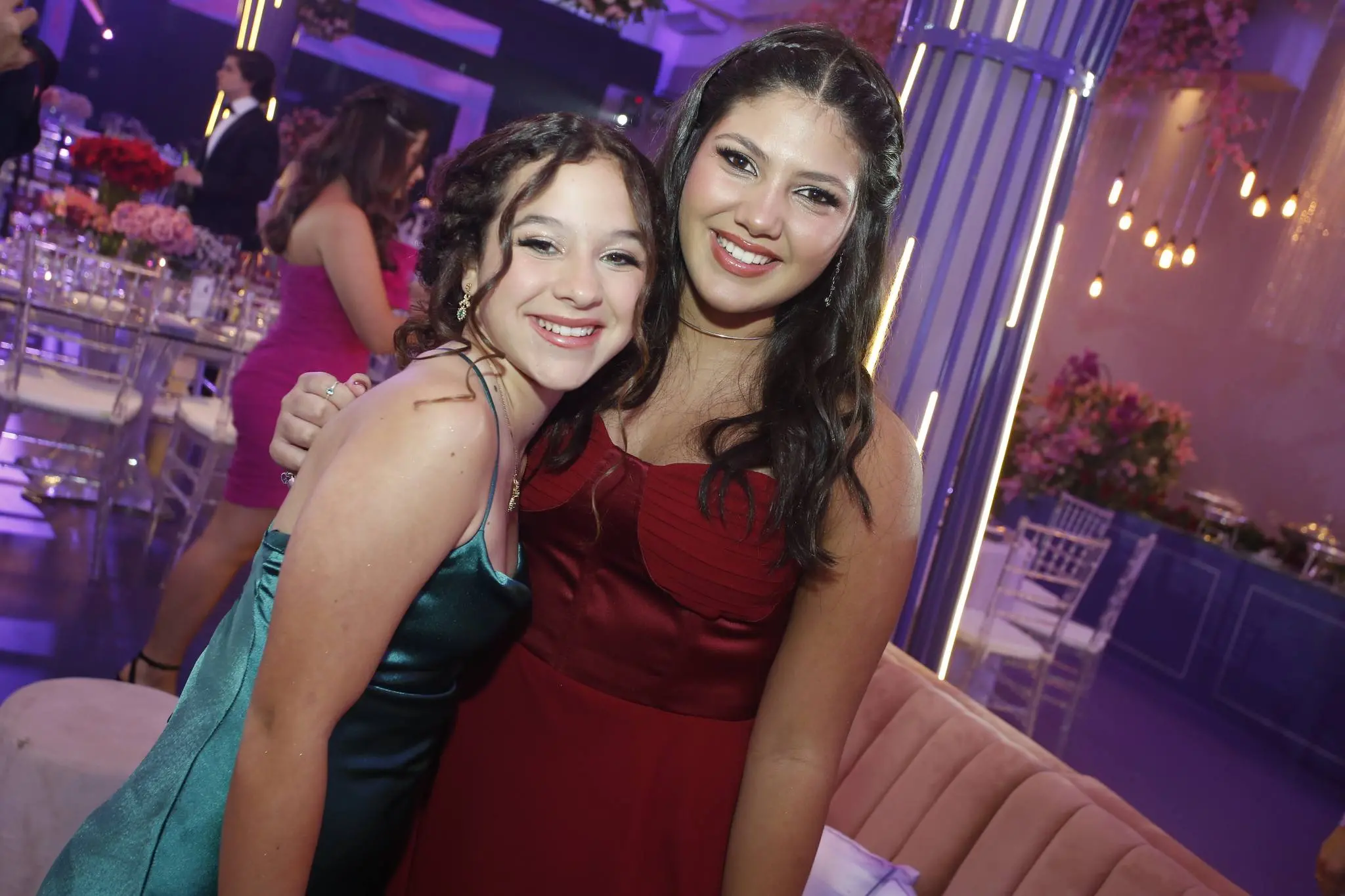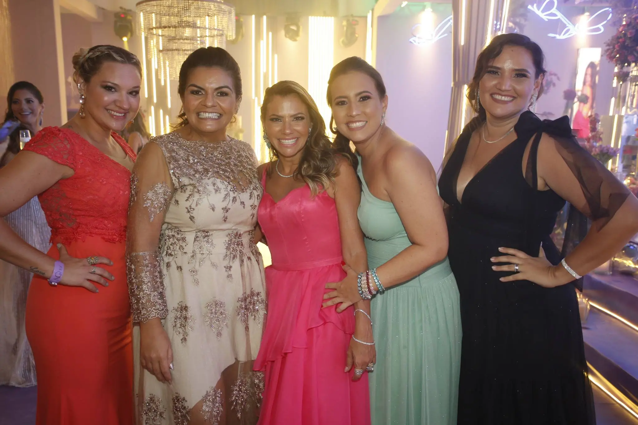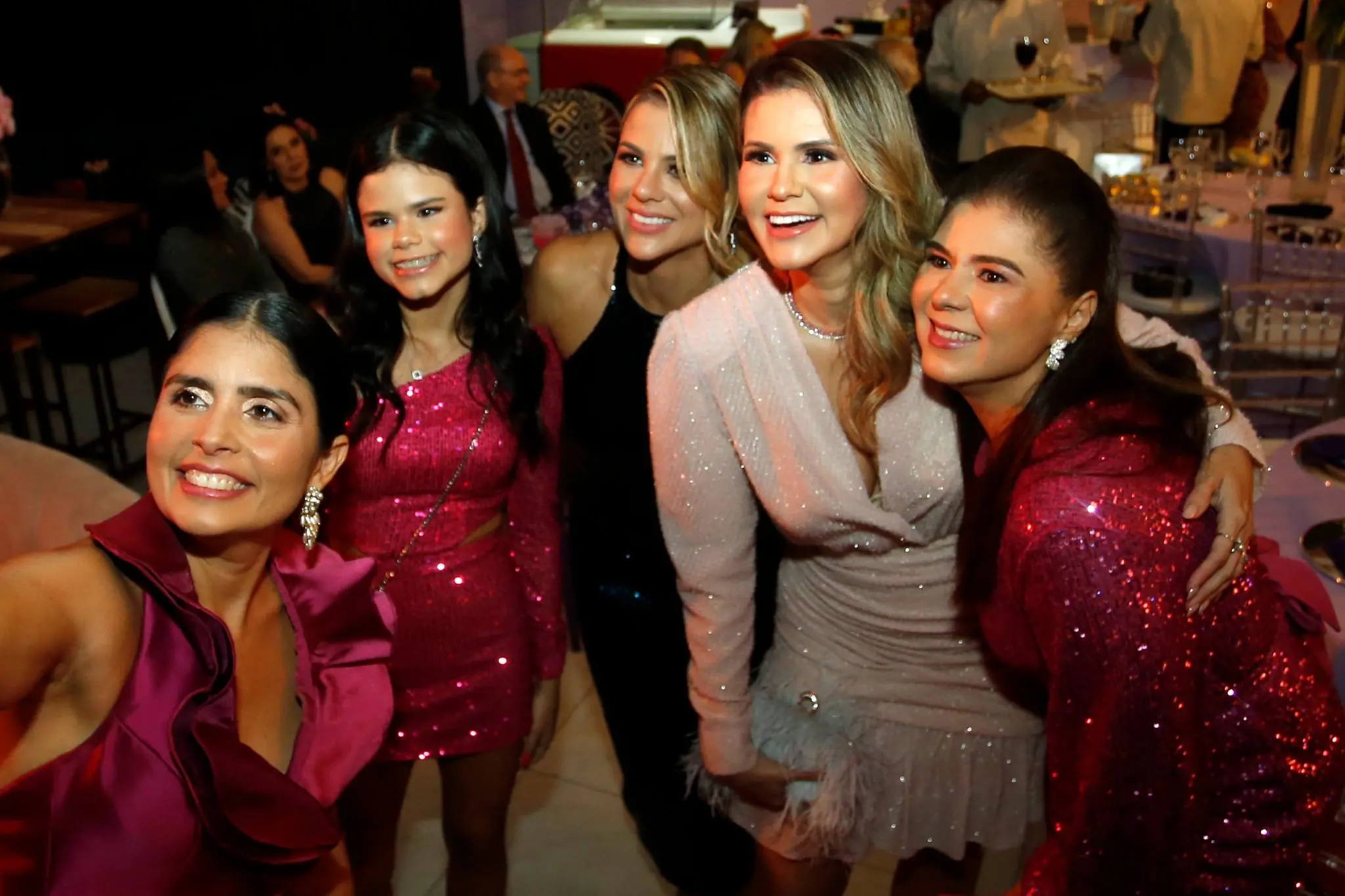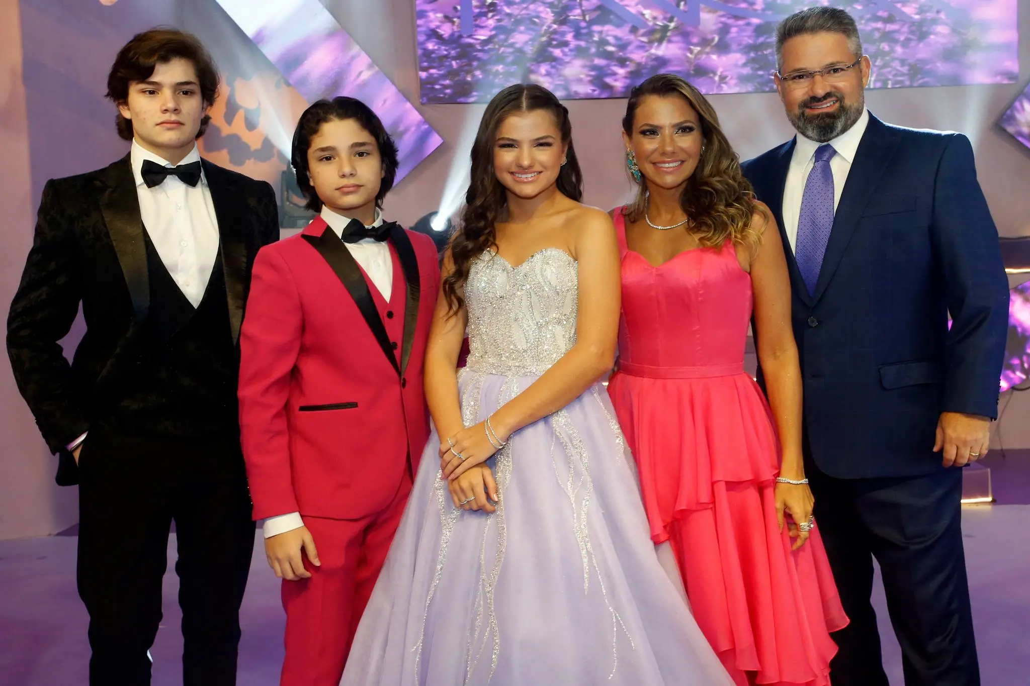 A família Almada Queirós estava elegantemente vestida. Todos dentro da paleta de cores da festa e/ou da aniversariante. Destaque para as mulheres da família: mãe e filha usando Ticiana Sampaio. Feitio exclusivo para o momento.