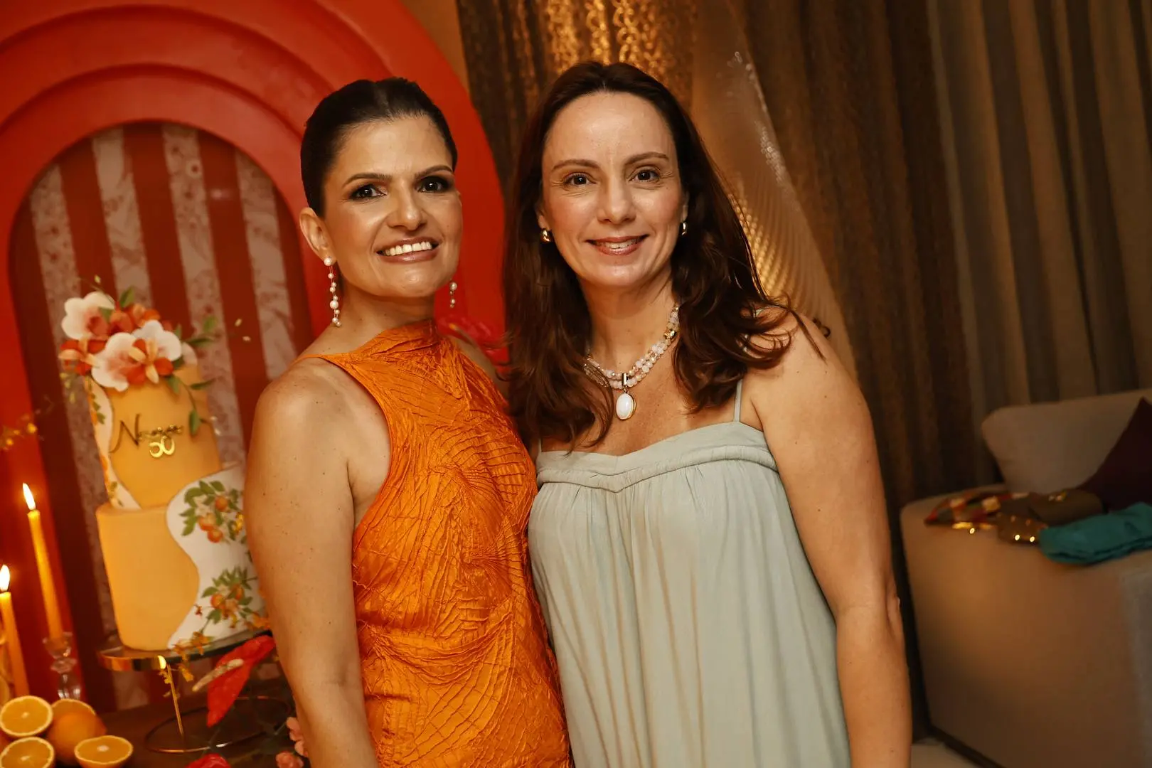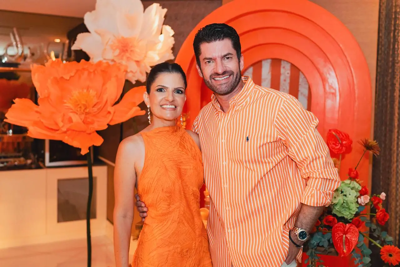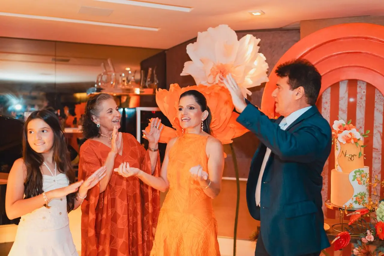 De laranja, na exata “skin” do tema, Nana recebeu amigas e família no apê do irmão, o cantor Paulo José, no Guararapes, endereço que combinou sofisticação, charme e a medida certa de intimidade.