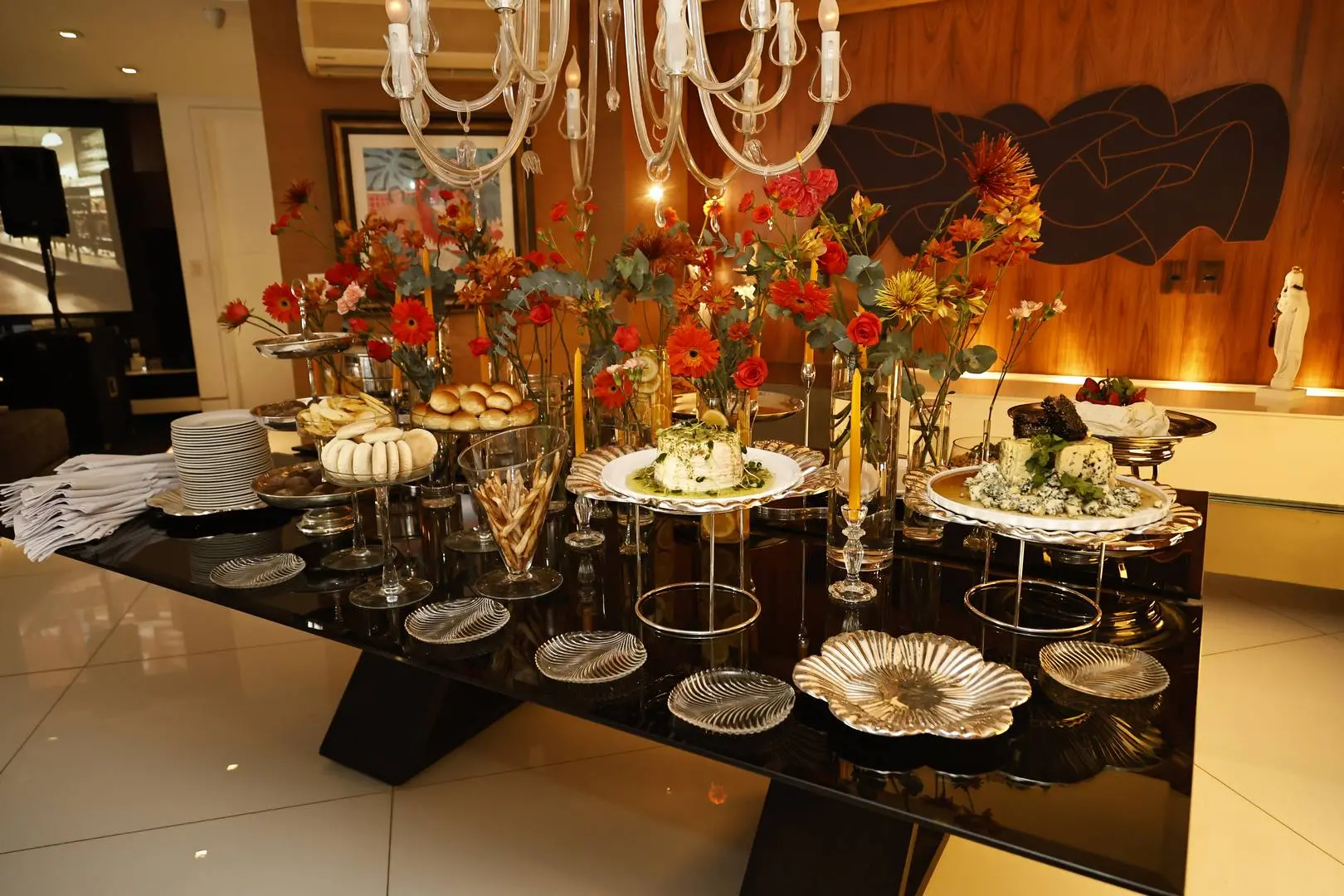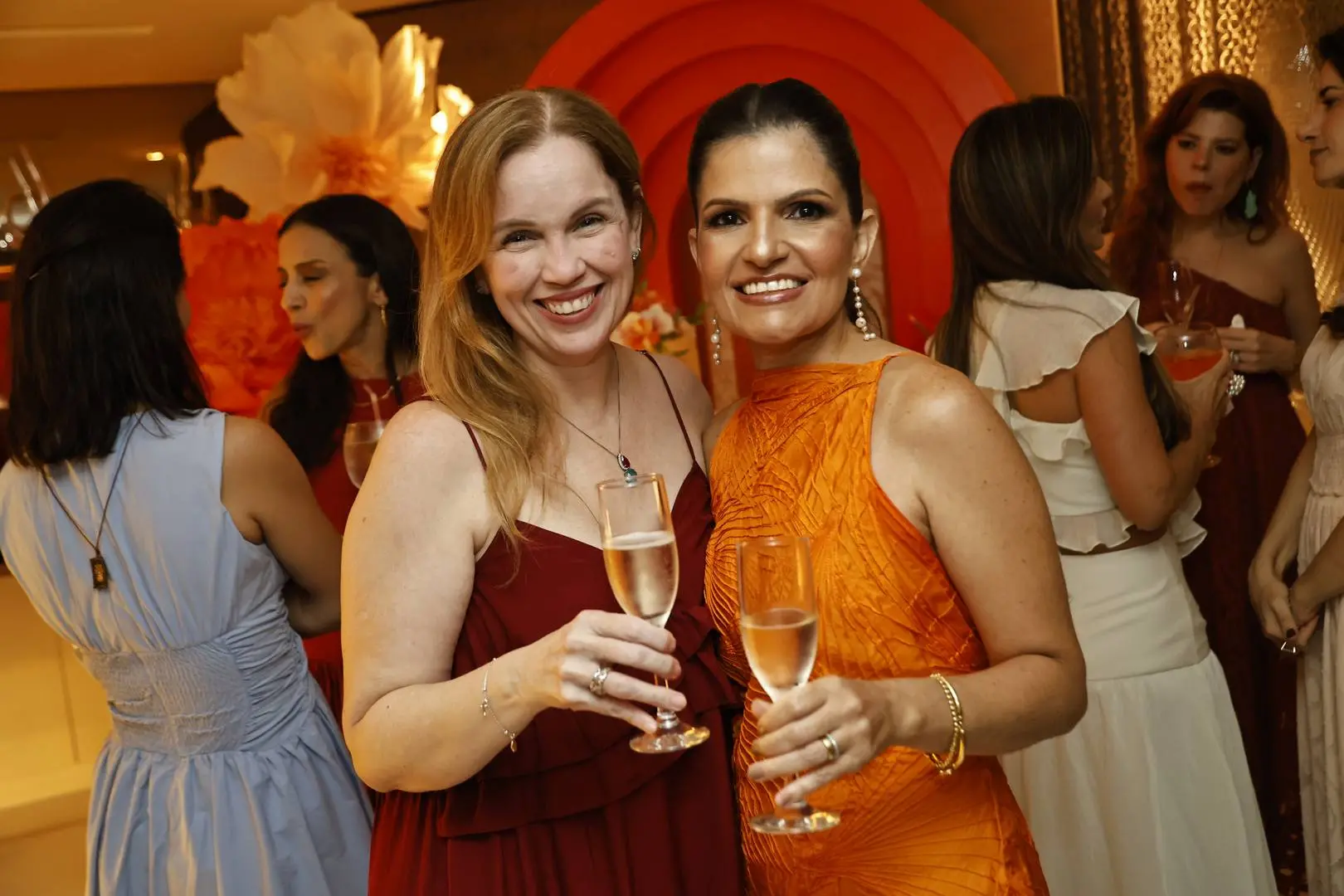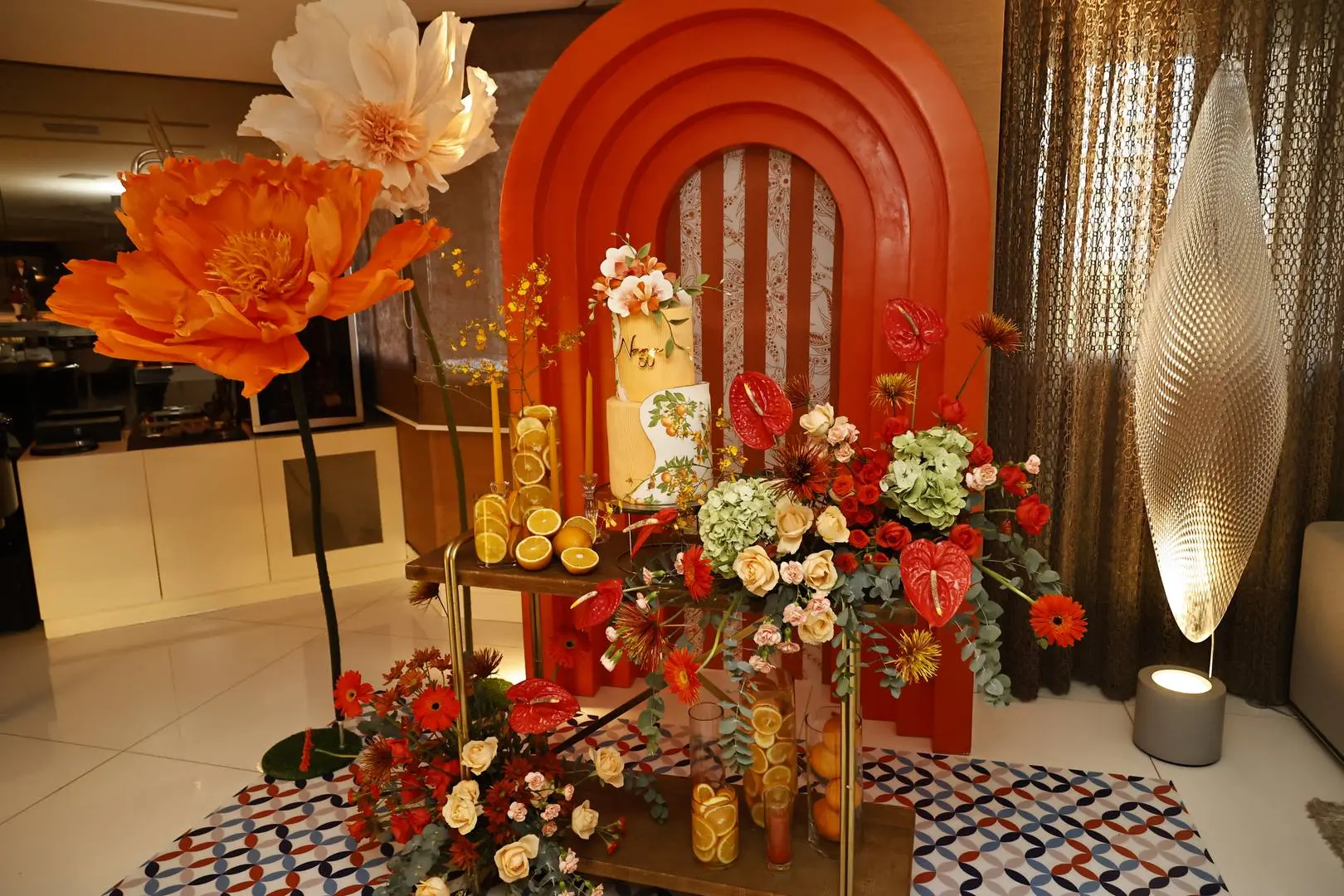 De laranja, na exata “skin” do tema, Nana recebeu amigas e família no apê do irmão, o cantor Paulo José, no Guararapes, endereço que combinou sofisticação, charme e a medida certa de intimidade.
