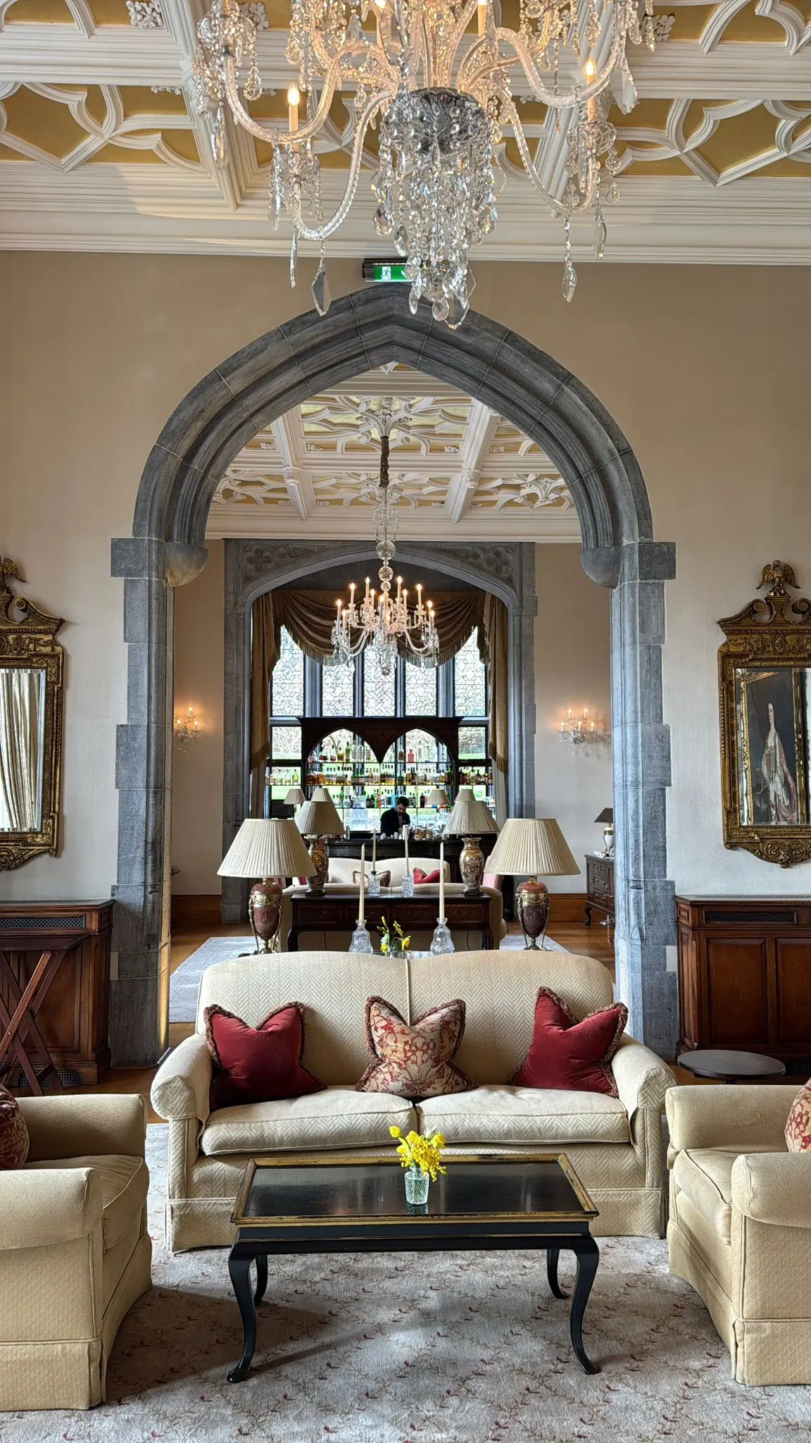 O gran finale teve endereço nobre: o icônico Ashford Castle, imersão definitiva na vida aristocrática irlandesa — cenário que os atentos reconhecem na série House of Guinness.