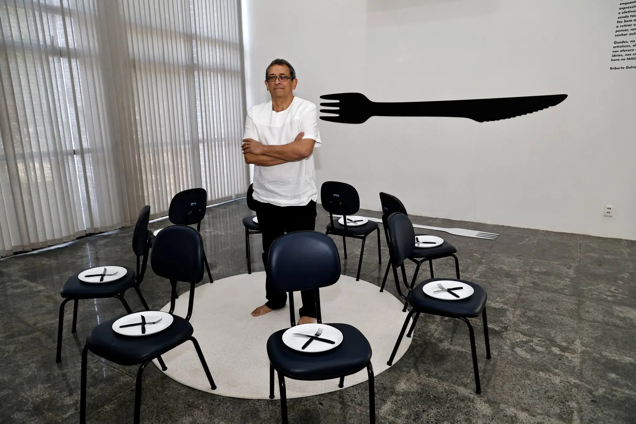 Roberto Falcão apresenta José Guedes como um artista que envolve o visitante, instigando-o a questionar conceitos e realidades sociais, além da estética das obras.