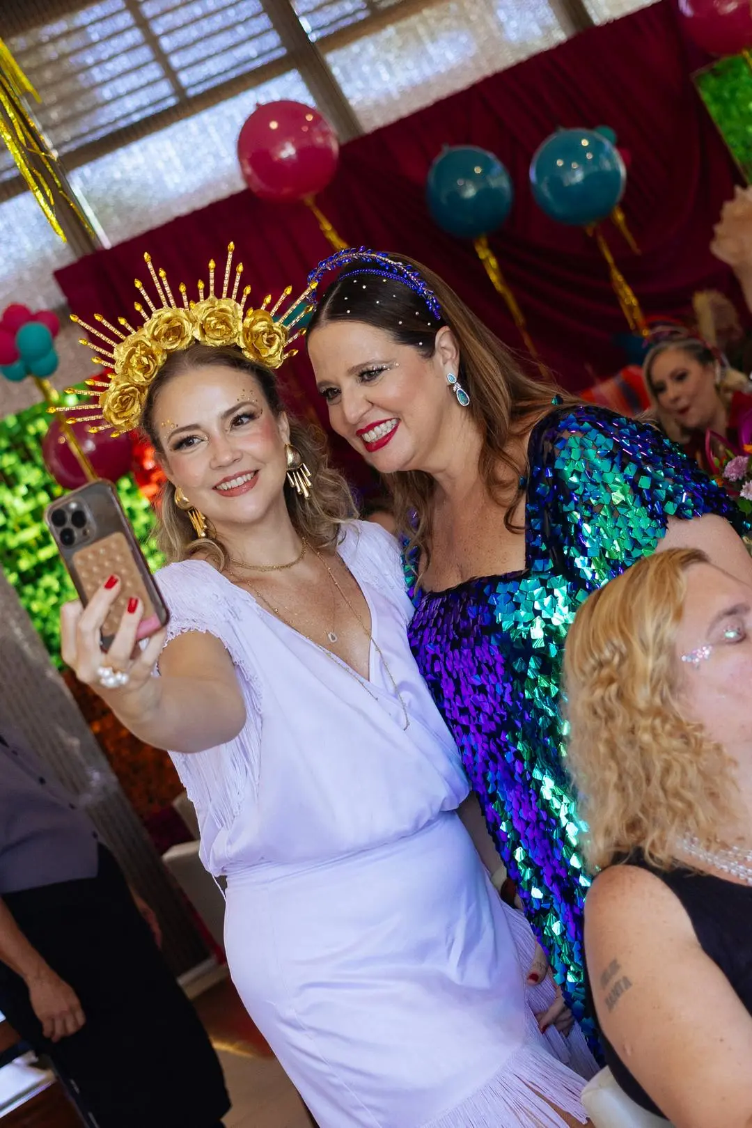 Lu cuidou de todos os detalhes da folia. Trouxe a maquiadora Carla Ferreira para garantir o up estratégico nas produções, enquanto os adornos assinados por Jomara Cid Chapelaria decretaram clima oficial de Carnaval.