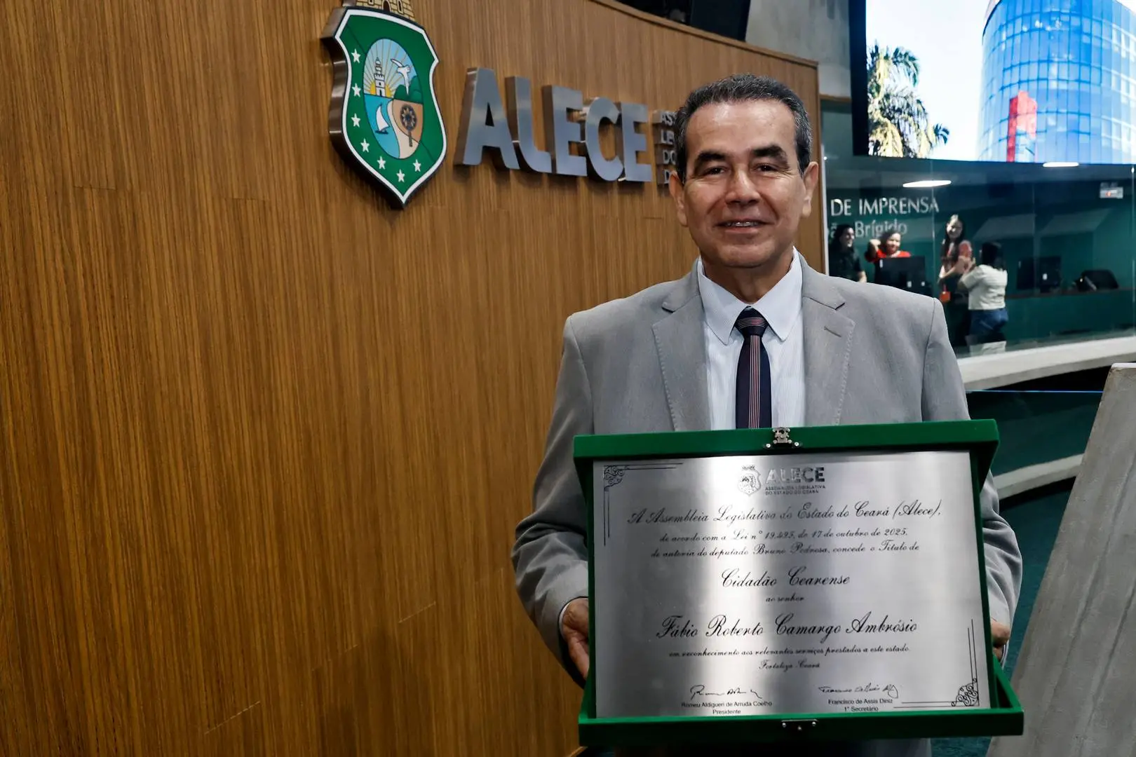 Na manhã de sexta-feira, 13, no Plenário 13 de Maio, na Assembleia Legislativa do Ceará, o diretor de programação do Sistema Verdes Mares, Fábio Ambrósio, recebeu o Título de Cidadão Cearense, distinção proposta pelo deputado Bruno Pedrosa.