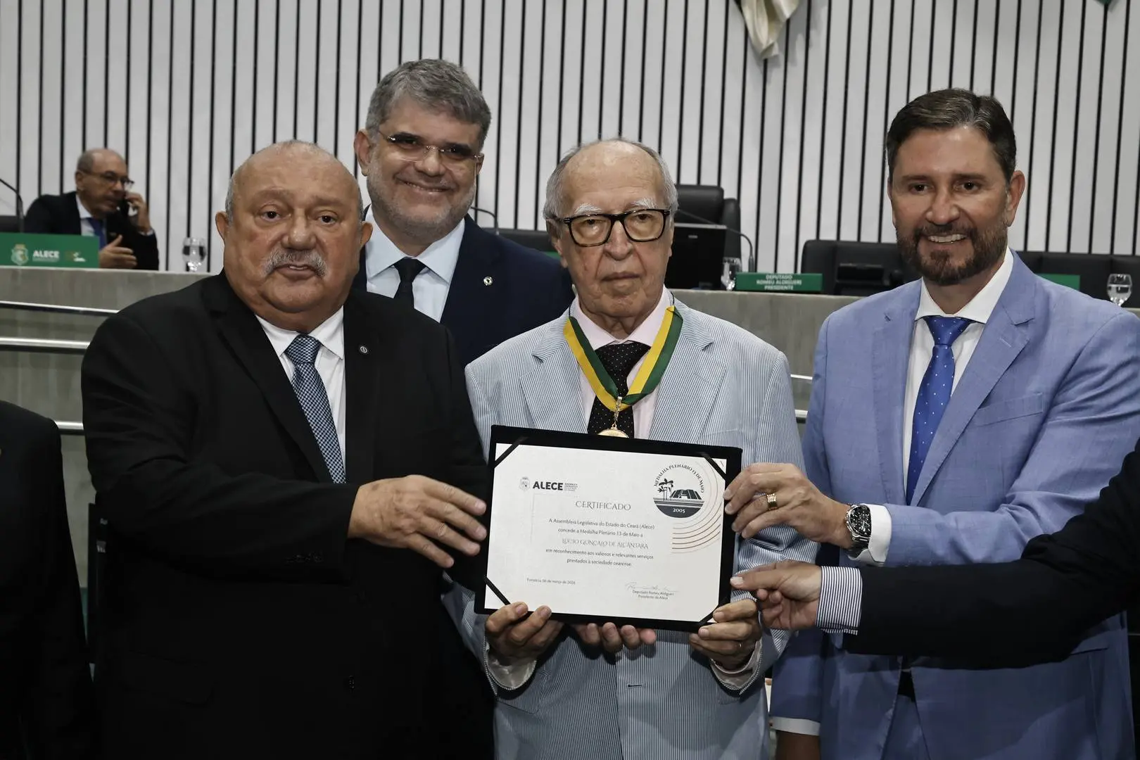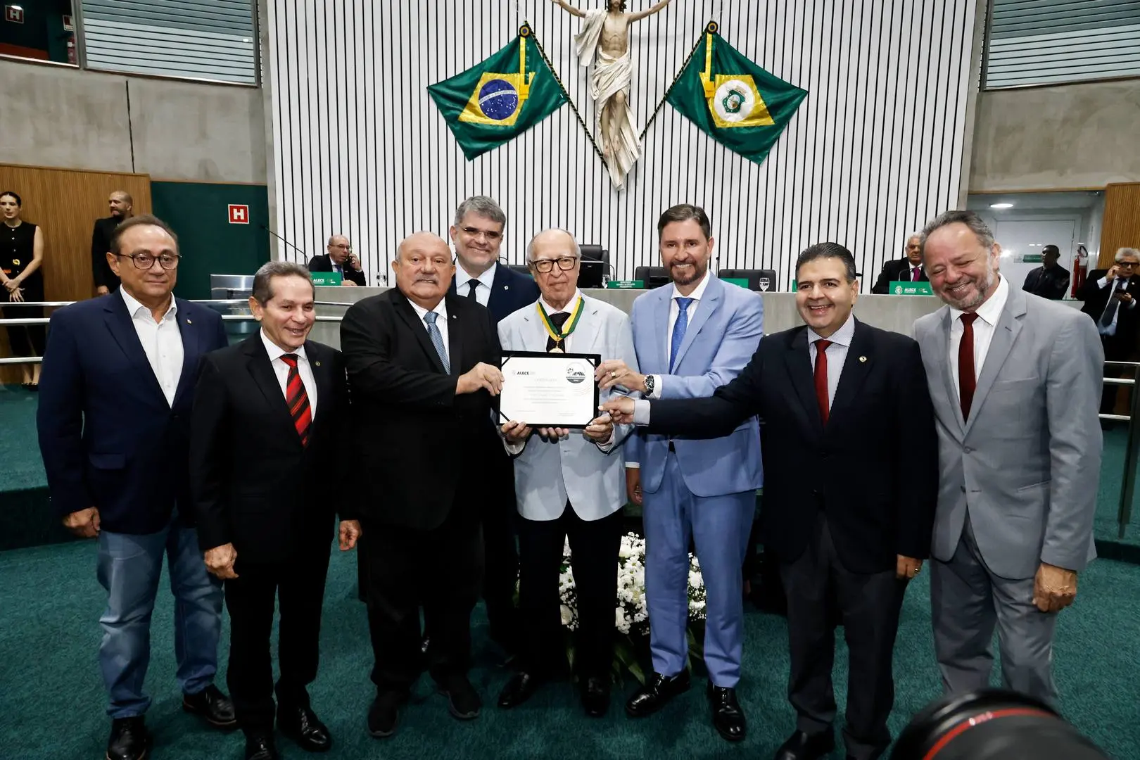 A cerimônia, proposta pelo presidente da Alece, deputado Romeu Aldigueri, e pelo deputado Fernando Hugo, reuniu políticos, intelectuais e nomes da cena institucional.