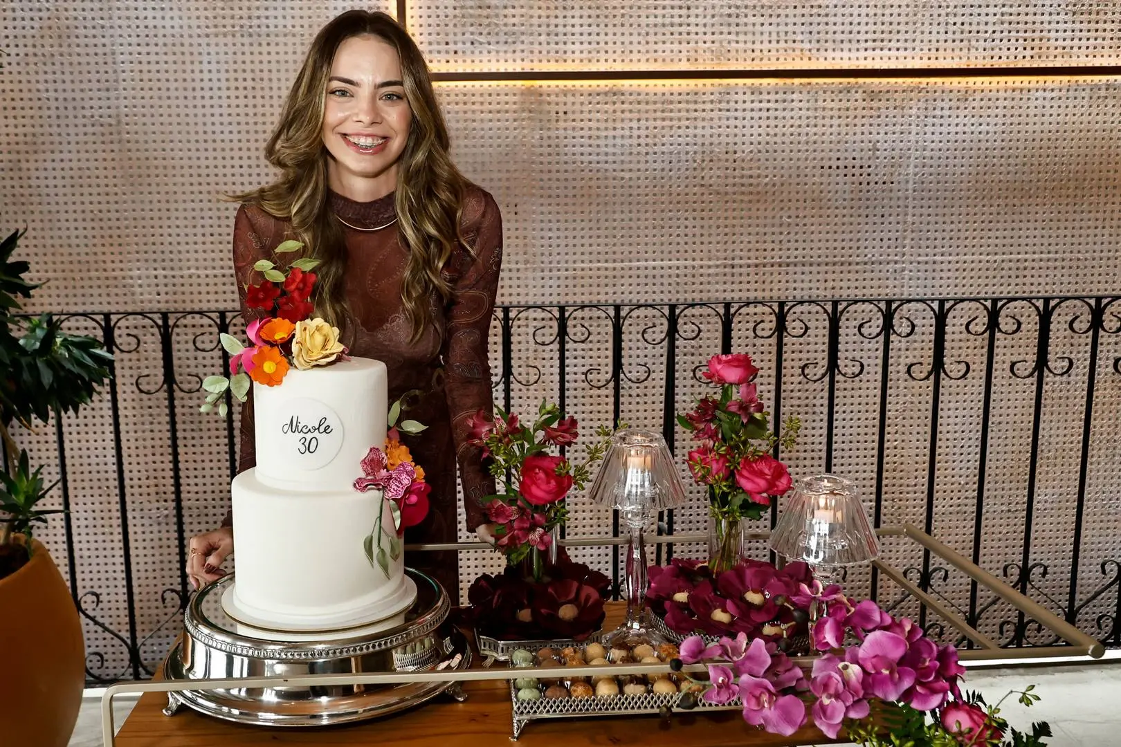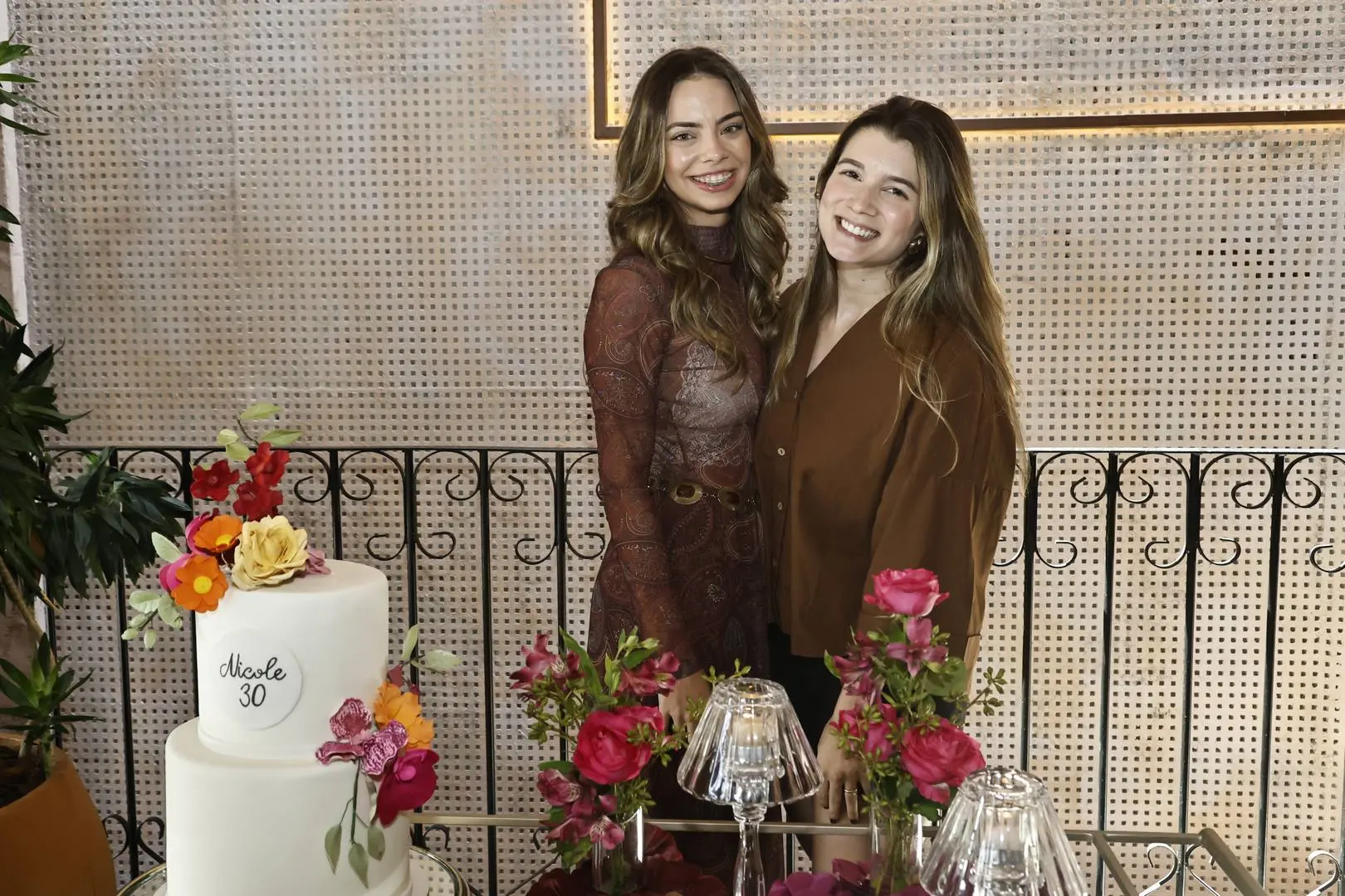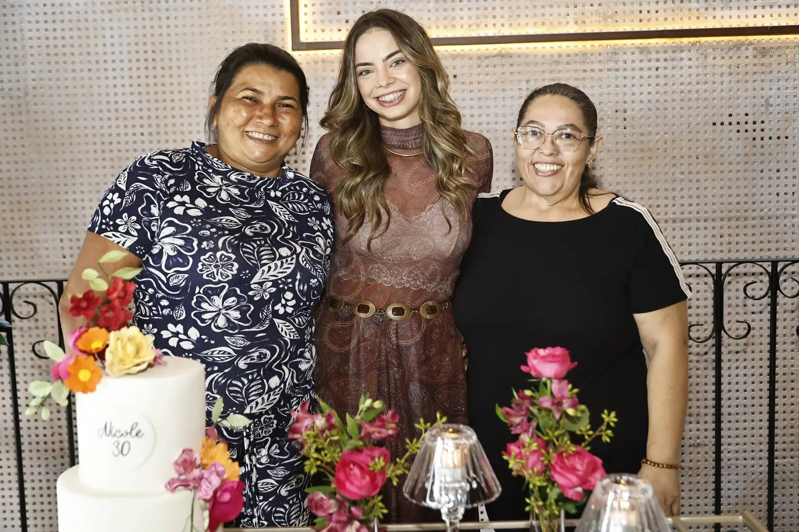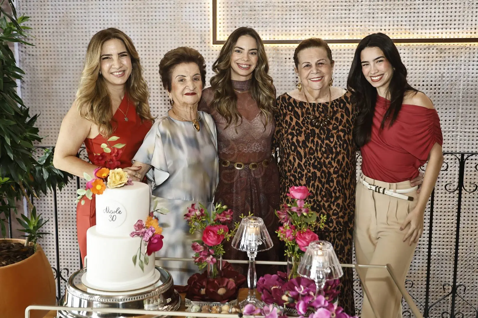 Ao chegar ao piso superior, Nicole foi envolvida por um coro afinado de parabéns, cercada por amigas e mulheres da família — cena de afeto com styling impecável.