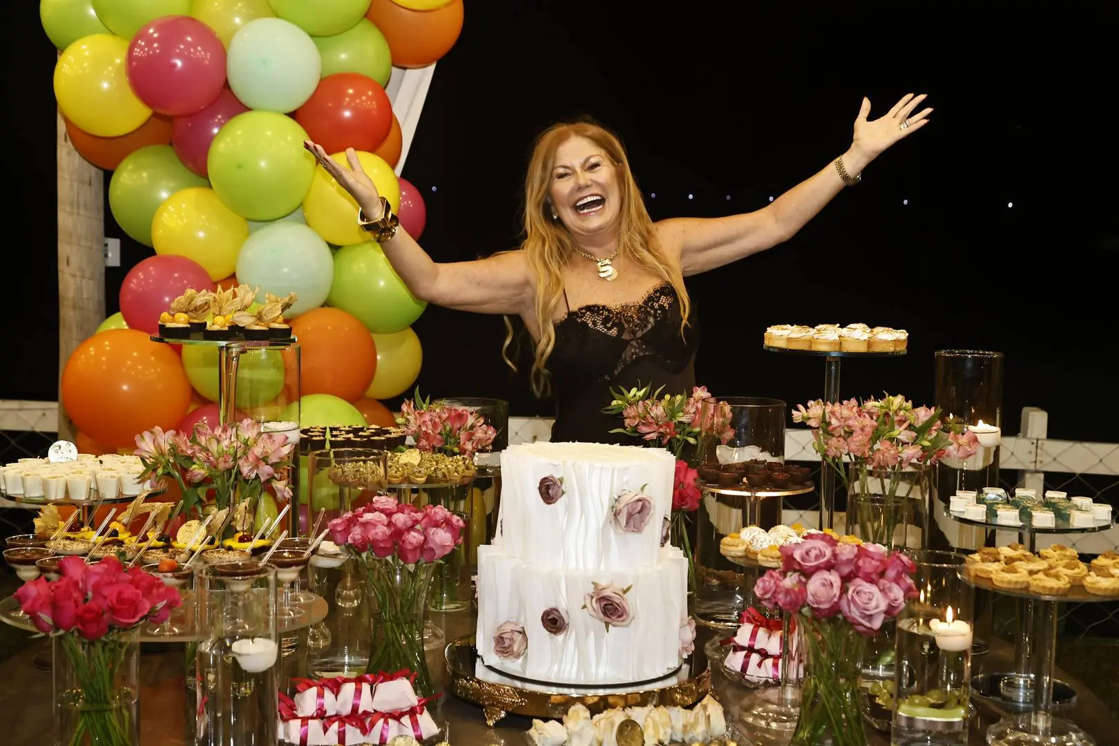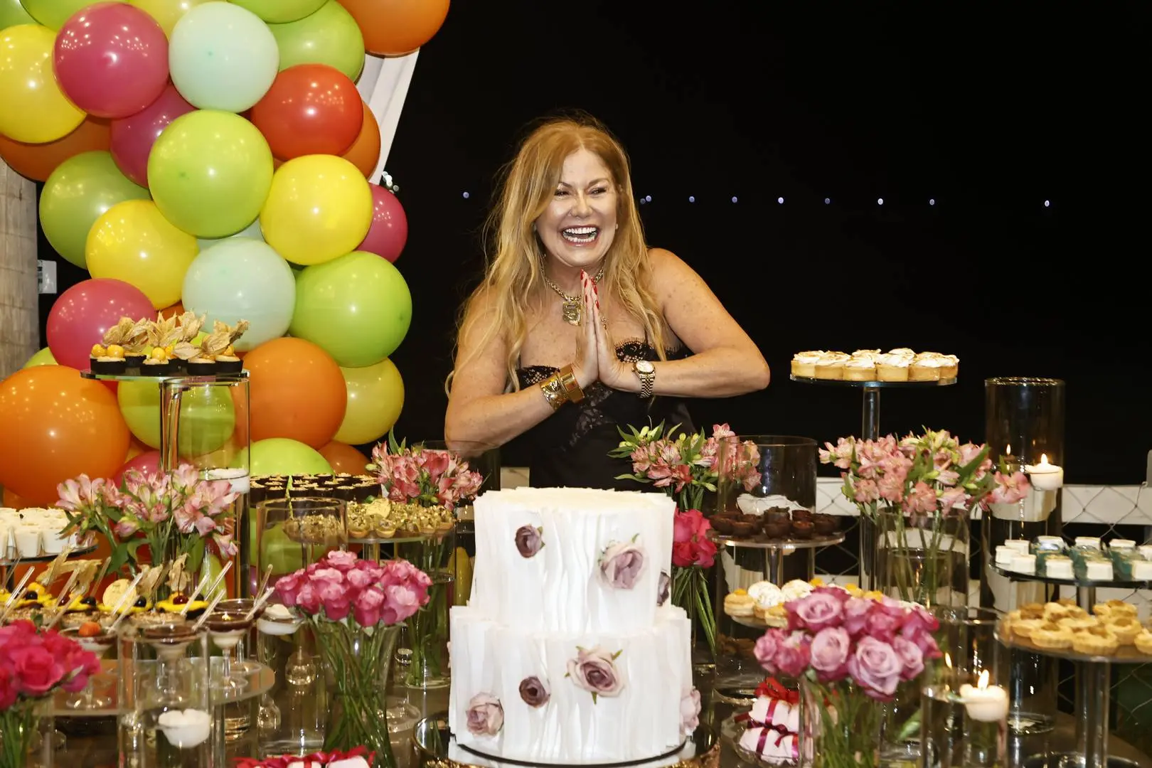 Entre brindes em modo nonstop, o décor assinado por Kaio Wendel com balões de Costa Brasil e o bolo de Ana Duran deram o tom do “high living à la Stelinha.