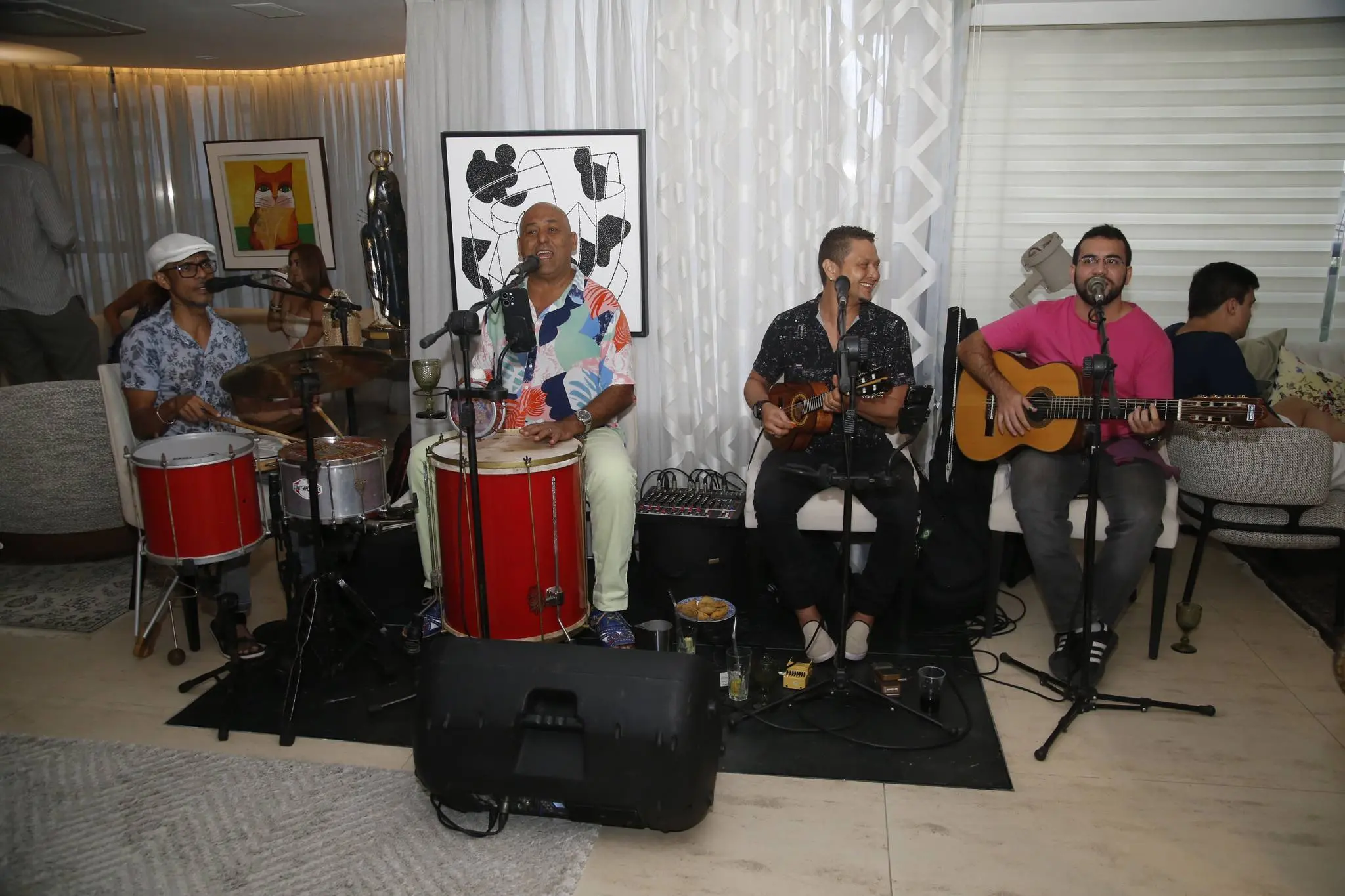 Animando a festa, Quarteto 4e20 e o DJ Romulo Bravo.