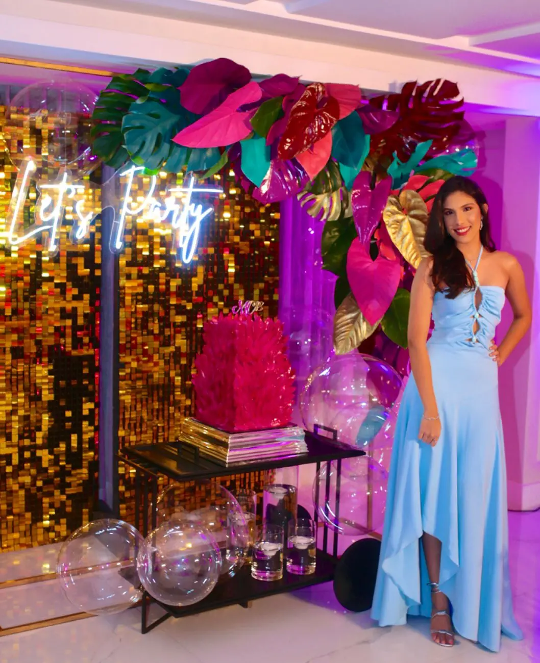 Comemoração mais intimista e marcante. 40 amigas mais próximas para prestigiá-la ao lado de familiares, em sua própria casa.