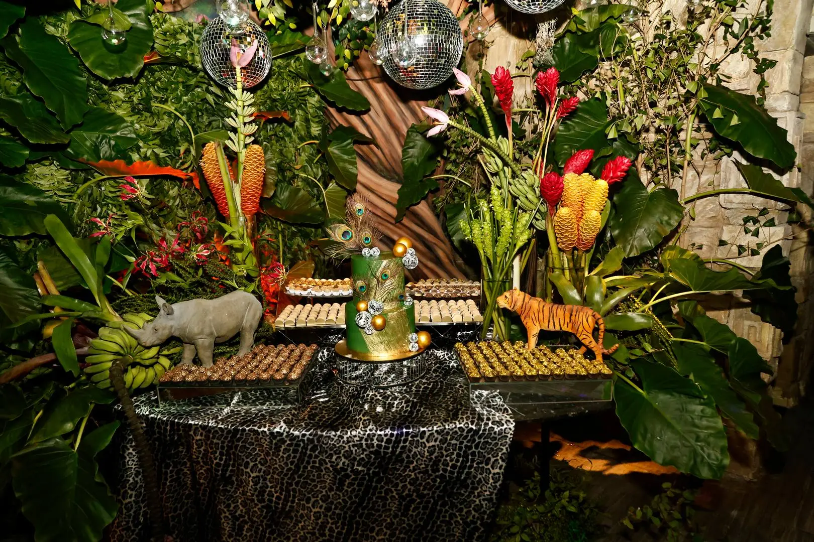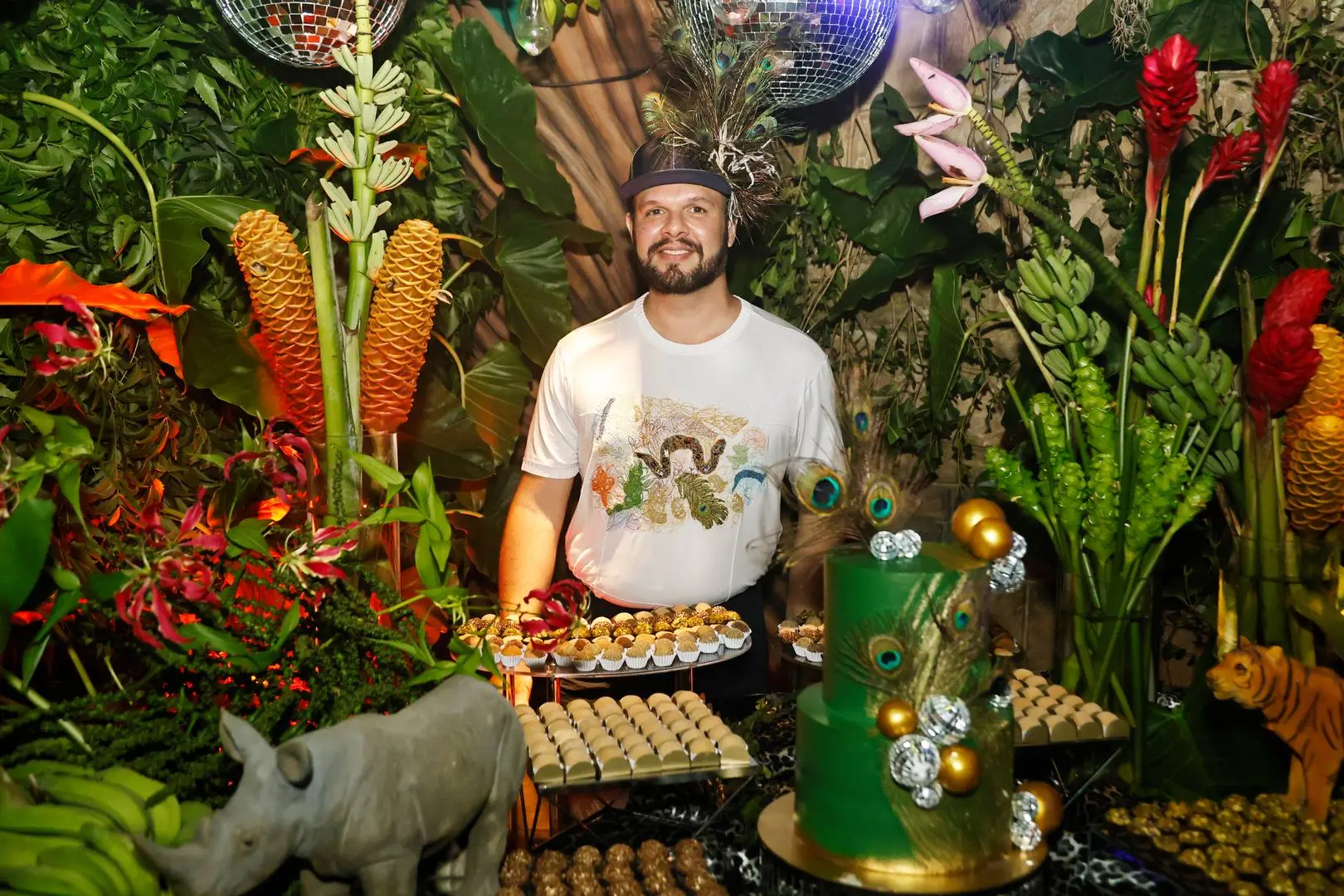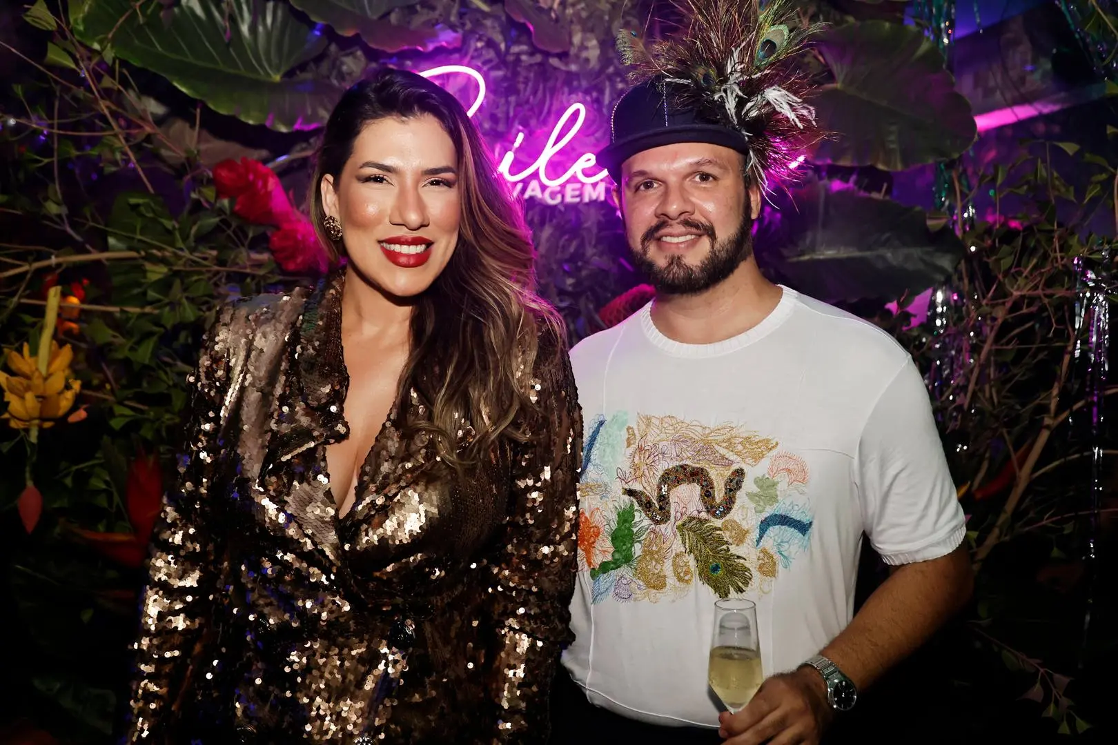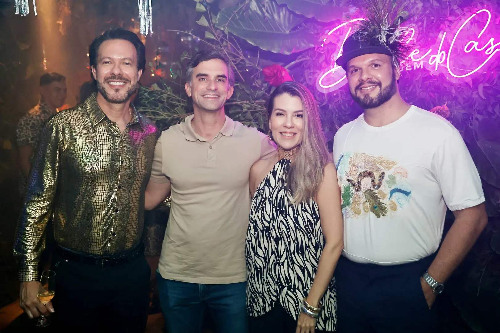 A festa tomou conta do Selva – Complexo Imprensa Food Square, na quarta-feira (18), com décor de Tadeu Xerez que apostou no tropical, animal print, folhagens e luz cênica no ponto.