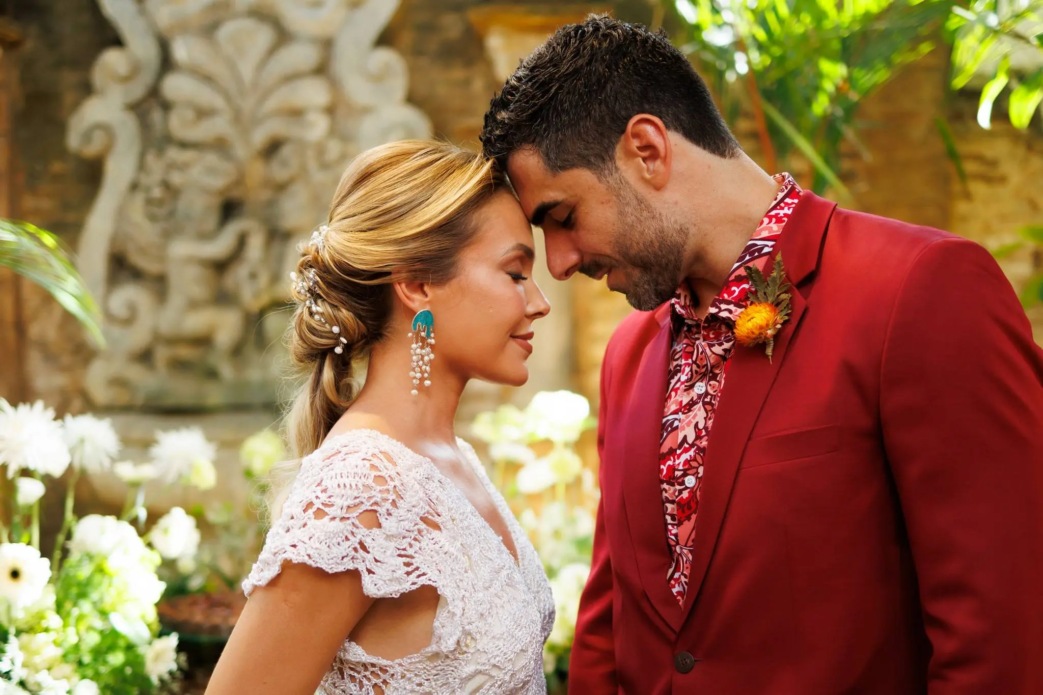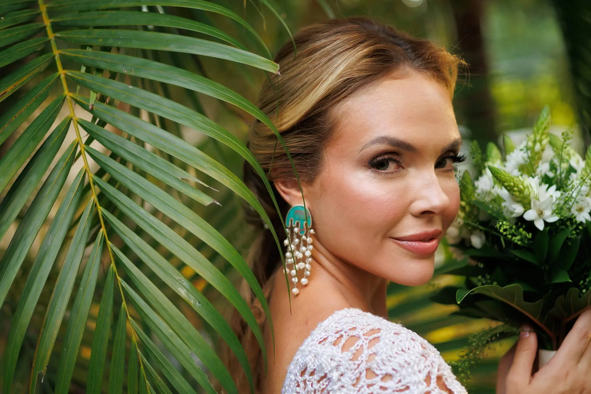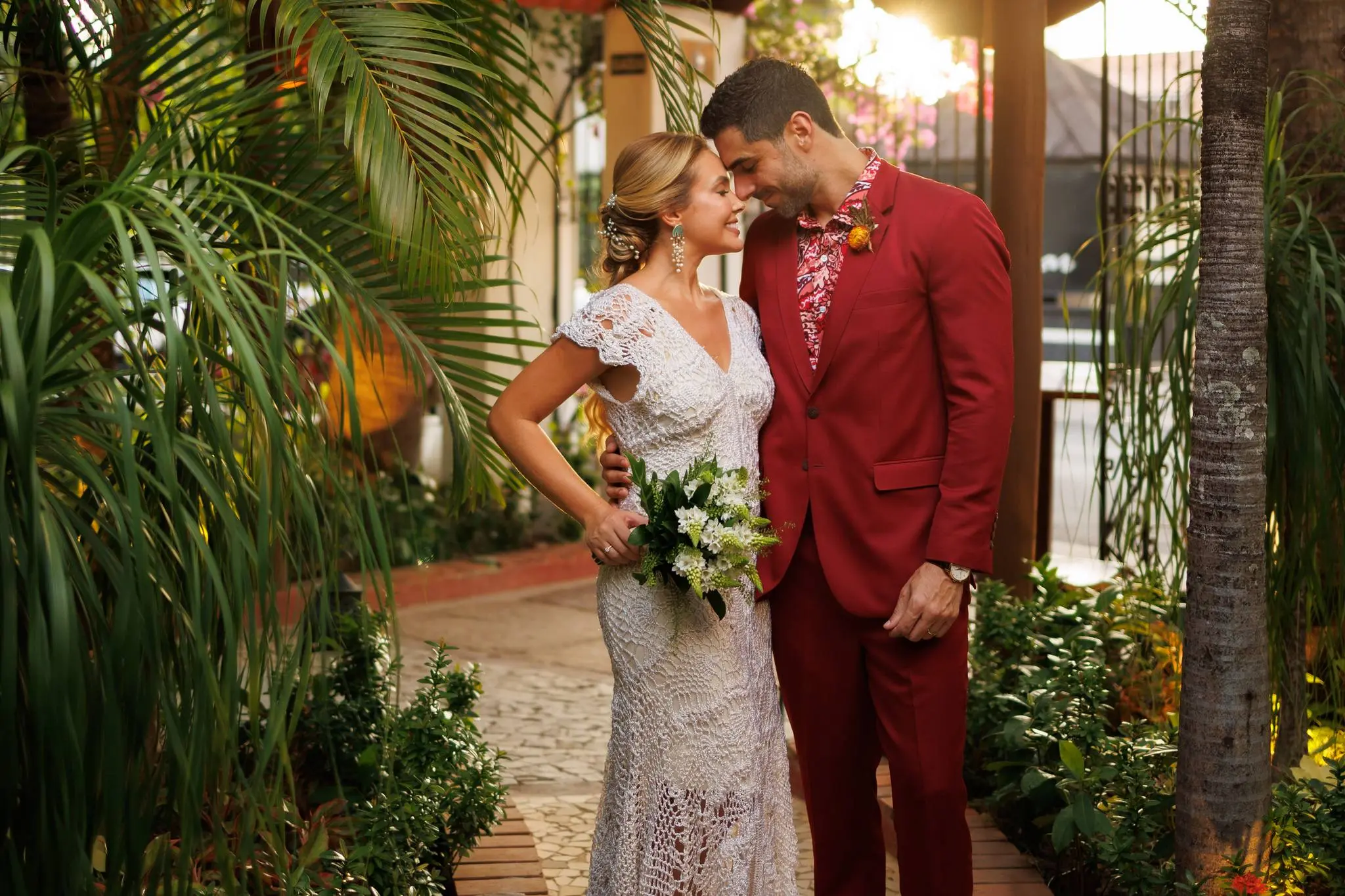 A noiva escolheu um modelo em crochet da estilista Jack, crocheteira que faz parte da Rede Graviola. A Rede Graviola é uma iniciativa que apoia mulheres artesãs da comunidade, trazendo à tona o talento e a criatividade dessas artesãs. O todo o styling foi de Cláudio Ferreira.