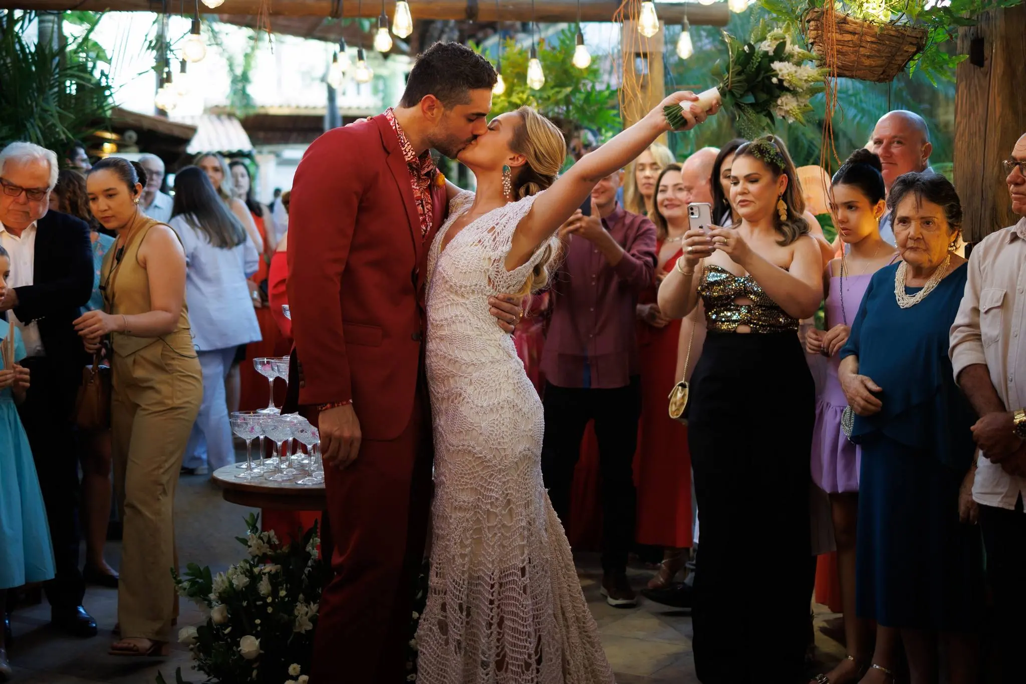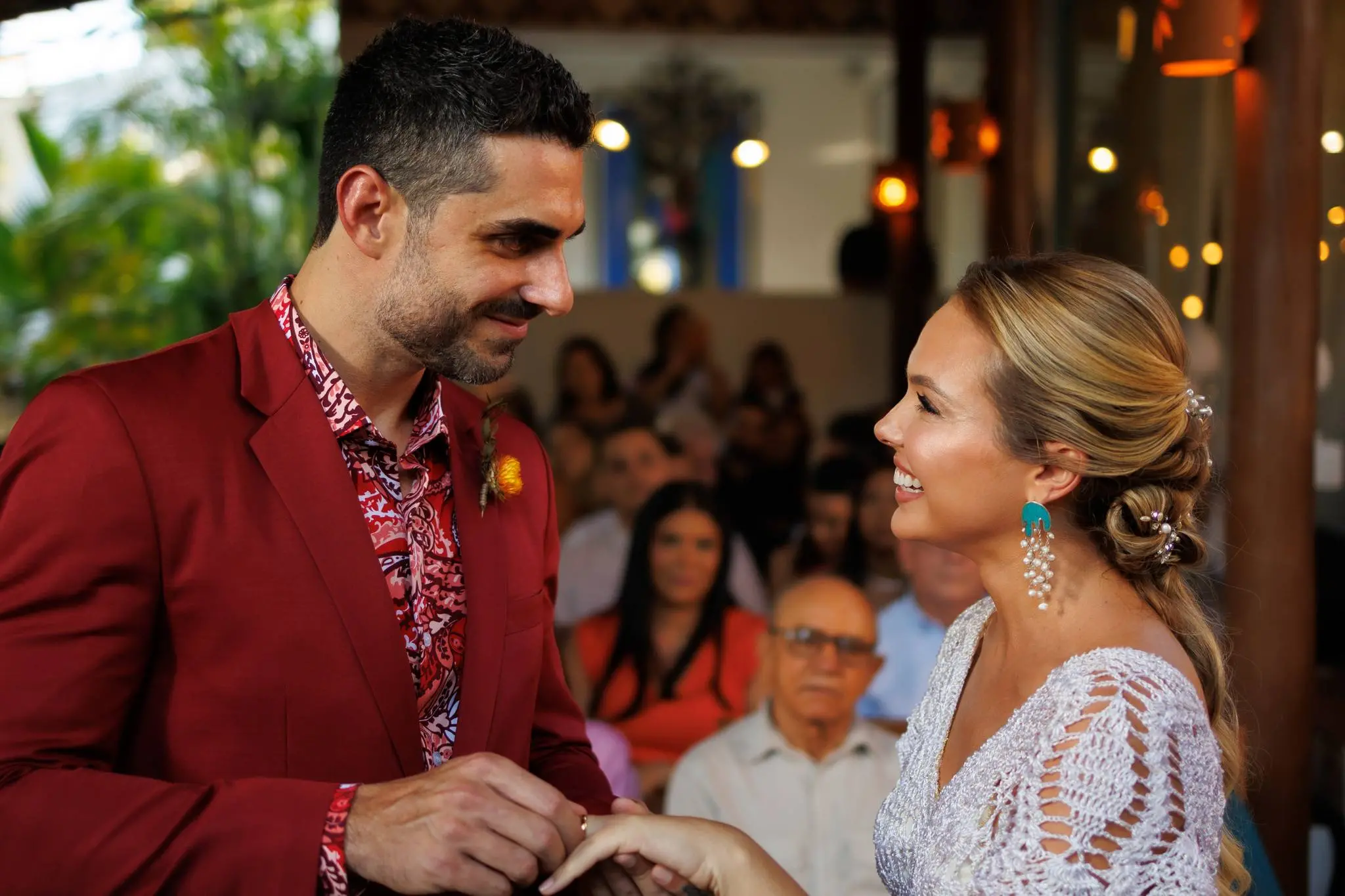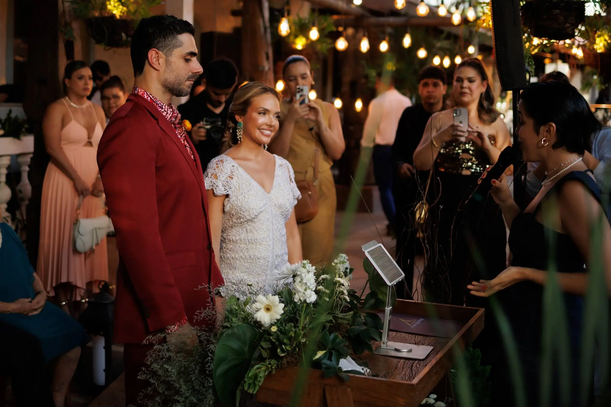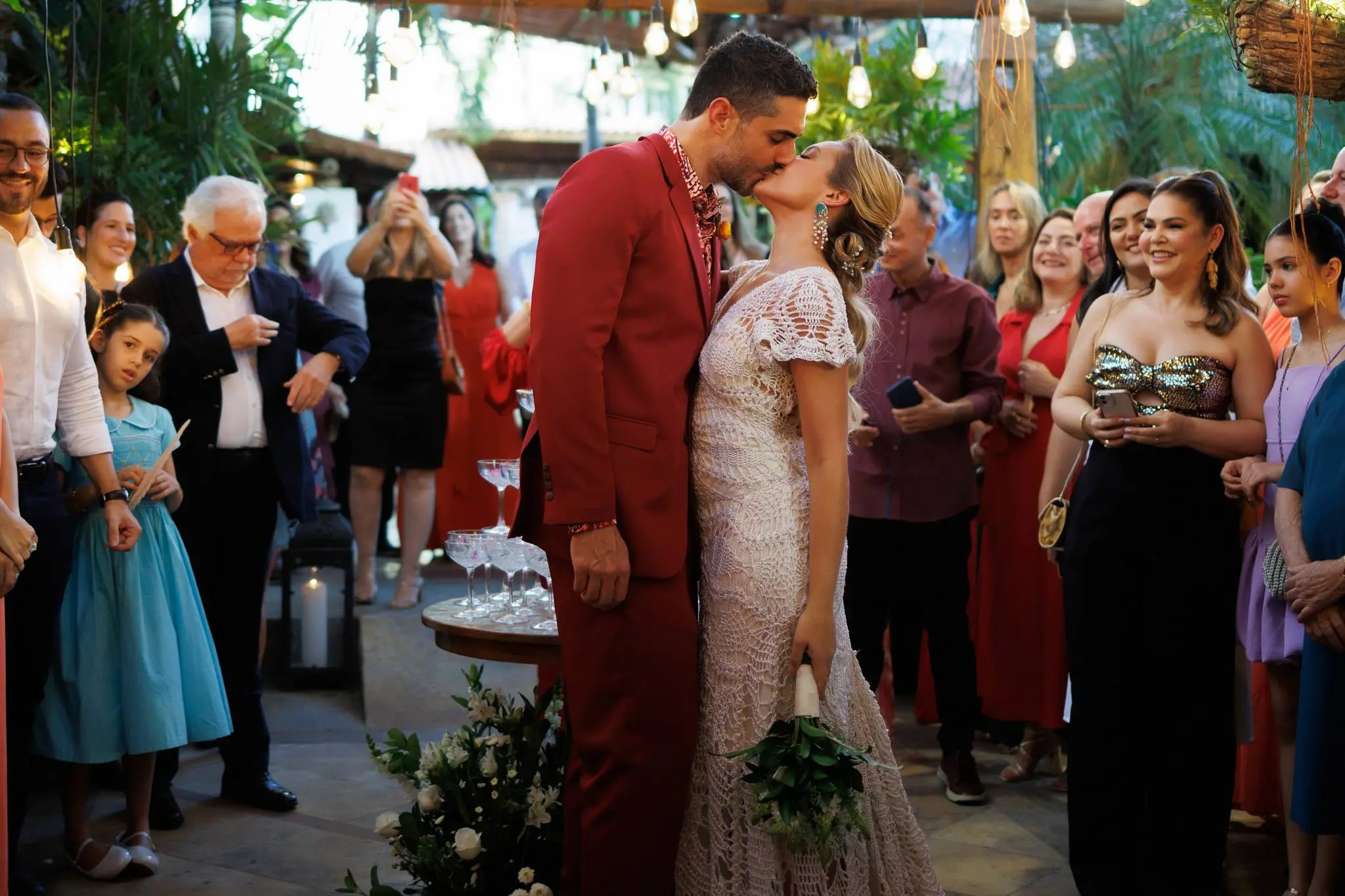 O evento, organizado por Nazaré Santos, da Allegra Eventos, foi marcado por muita alegria e romantismo, com os escritos e ritos conduzidos por Lara Rovere. Após a troca das juras de amor, a festa contou com animação de Juliana Barreto e banda e Phelipe Carvalho com a Paduo.