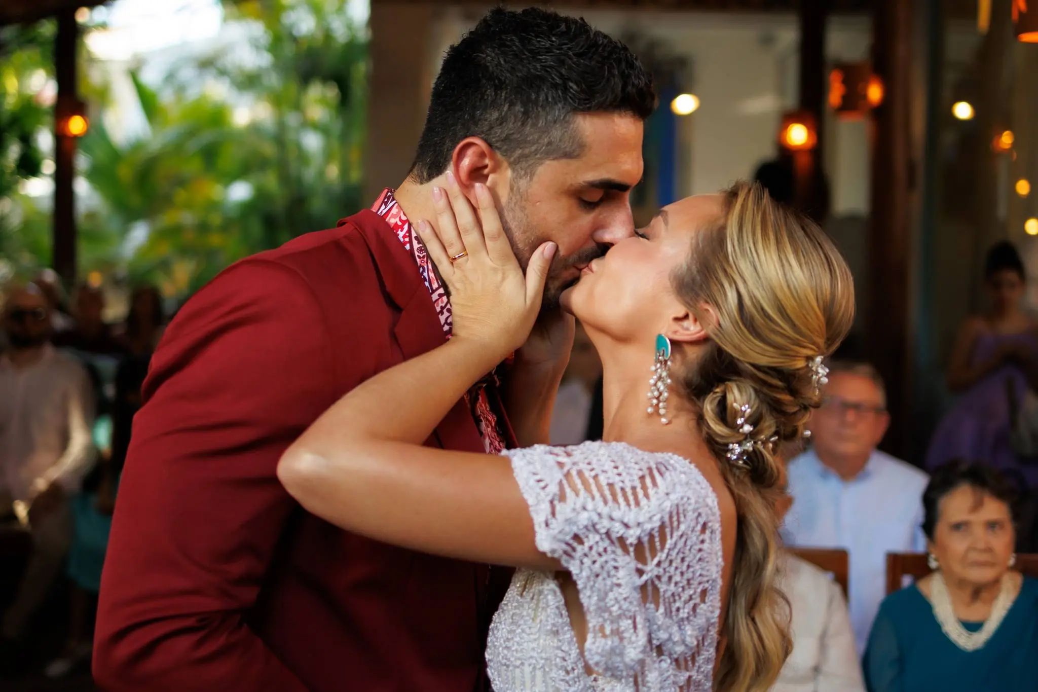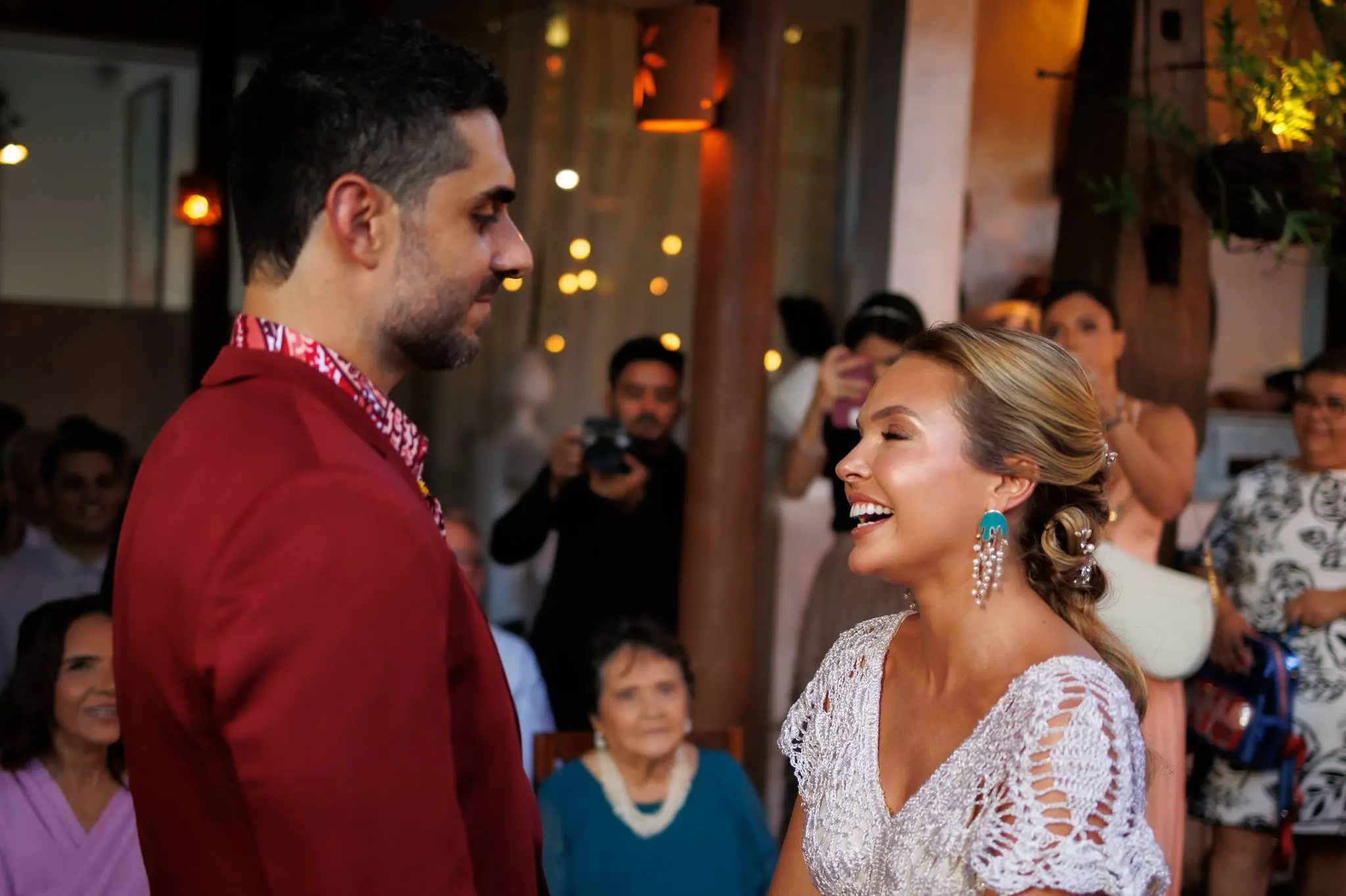 O primeiro momento do enlace foi restrito apenas para a família dos noivos