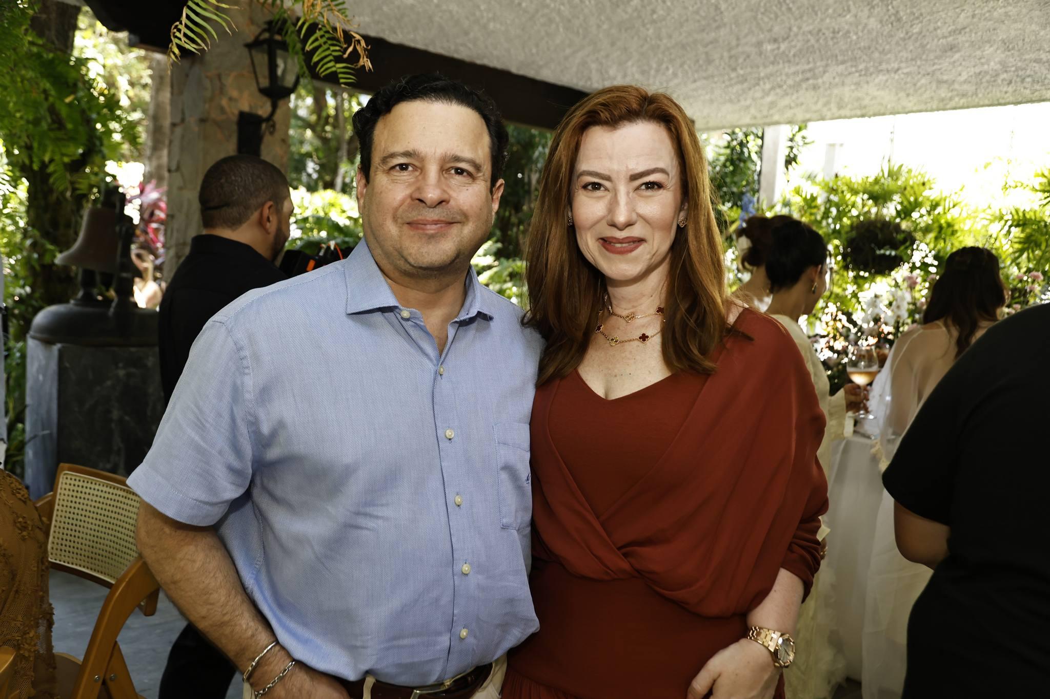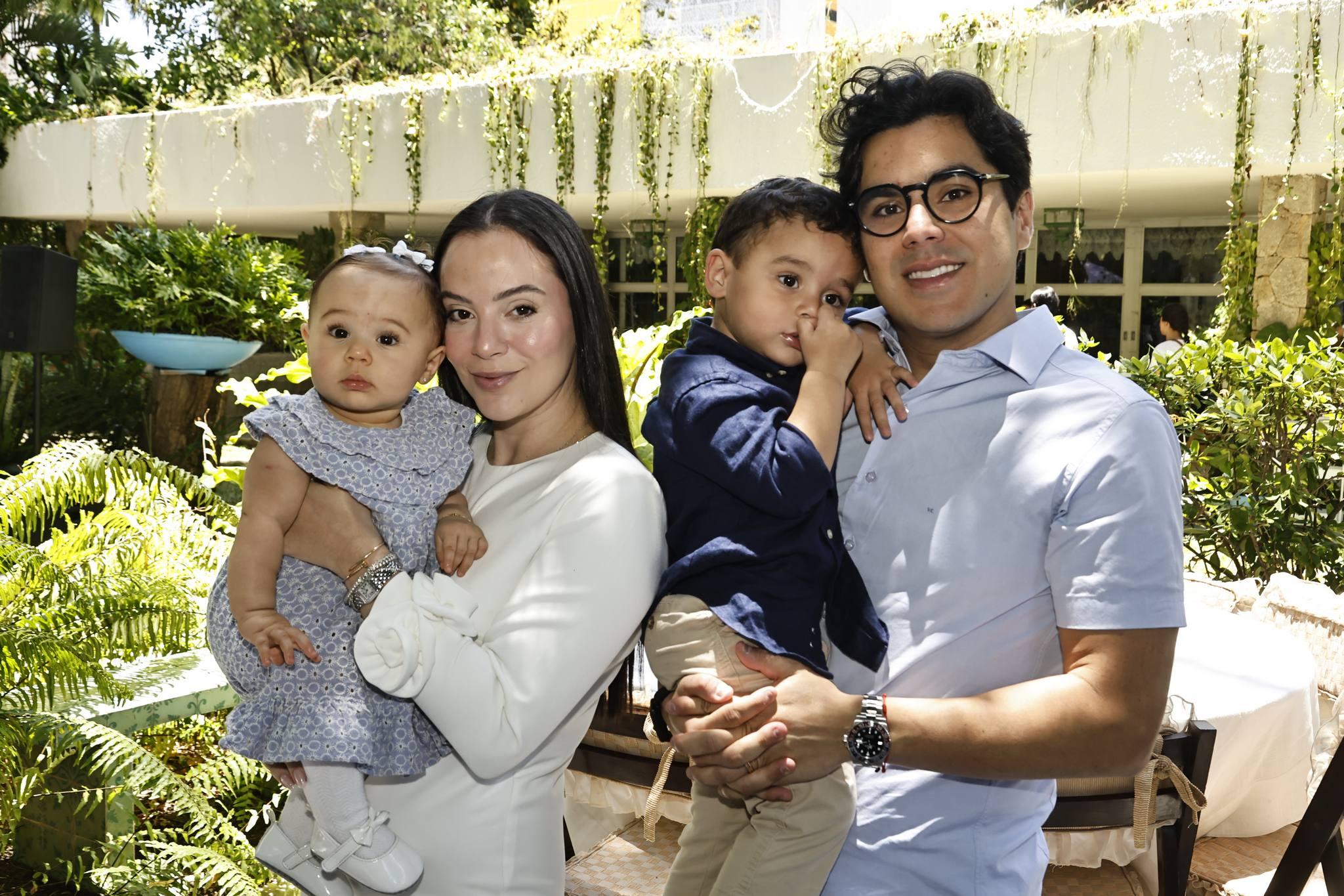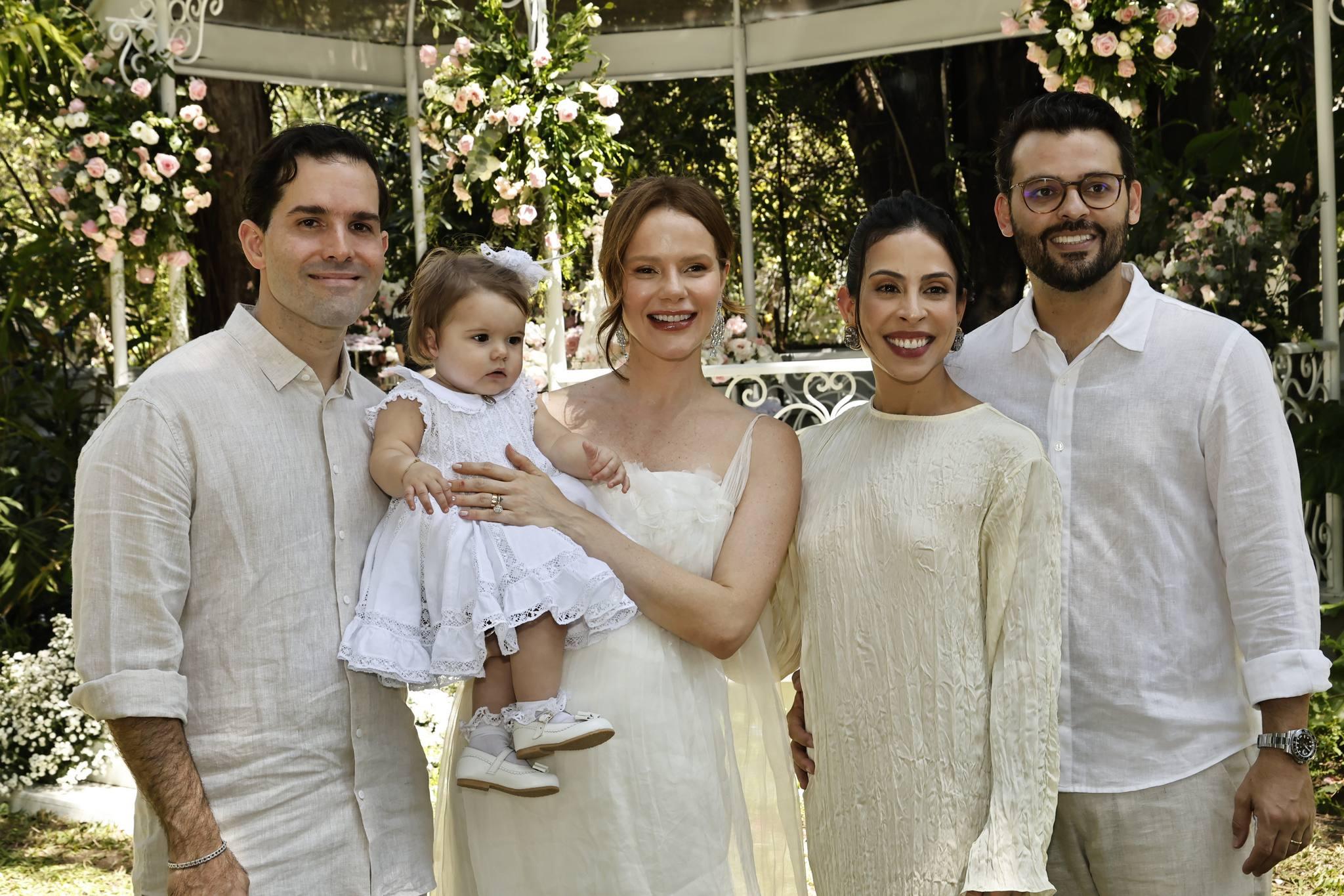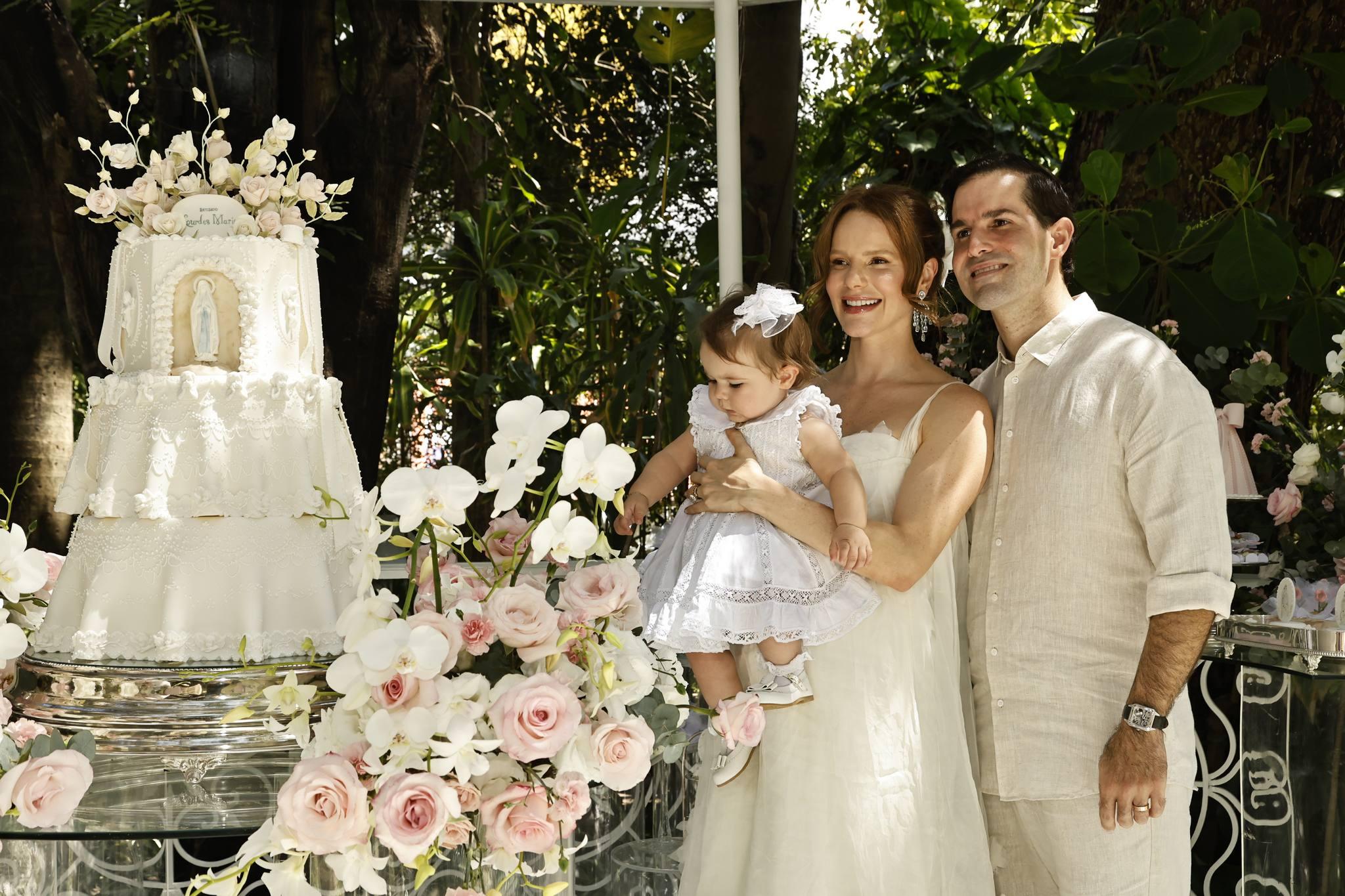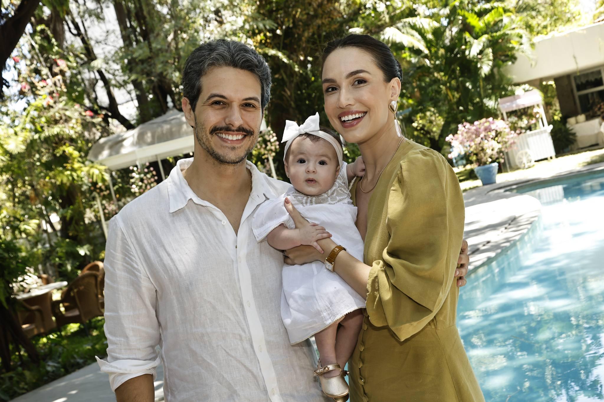 Nos jardins da residência de Dona Yolanda Queiroz, a manhã de sábado foi de pura emoção. Paulinha Sampaio Rocha e Felipe Queiroz Rocha celebraram o batizado da pequena Lourdes Maria, rodeados de familiares e amigos próximos.