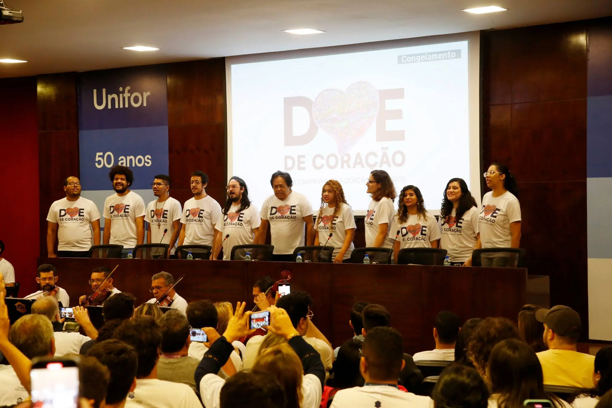 Na terça-feira (5), a Fundação Edson Queiroz lançou a 21ª edição da Doe de Coração, campanha de doação de órgãos e tecidos. O evento contou com a presença de gestores da Fundação, professores, alunos, transplantados, autoridades da saúde e parceiros da campanha, como Stênio Burgos, que assina a arte da campanha. Grupos de arte da Unifor, Camerata, Coral e Bigband se apresentaram e um vídeo com depoimentos foi exibido.