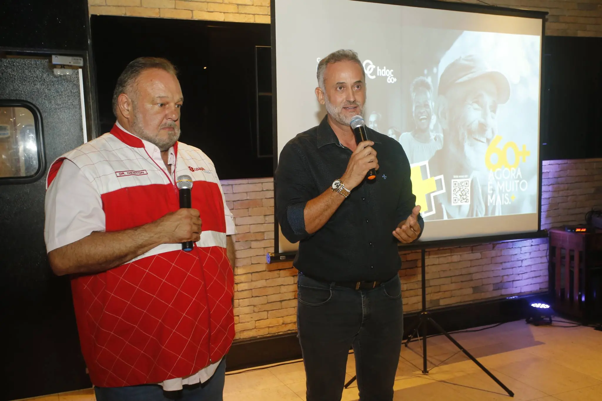Coube ao organizador do HDOC 60+, Sérgio Gomes, expor aos convidados o funcionamento do programa que oferece consultas, exames laboratoriais e de imagem, avaliações físicas e nutricionais, além do acompanhamento e cuidados de uma equipe multidisciplinar de saúde. Reforçou como diferencial, que a equipe do HDOC 60+ faz desde a marcação dos compromissos até o suporte e monitoramento por tecnologia. Por fim, esclareceu que a saúde preventiva proativa é trabalhada através de exames, consultas, avaliações físicas e nutricionais, e do fortalecimento de vínculos com o objetivo de que as pessoas acima de 60 anos vivam mais e melhor, com toda a assistência necessária.