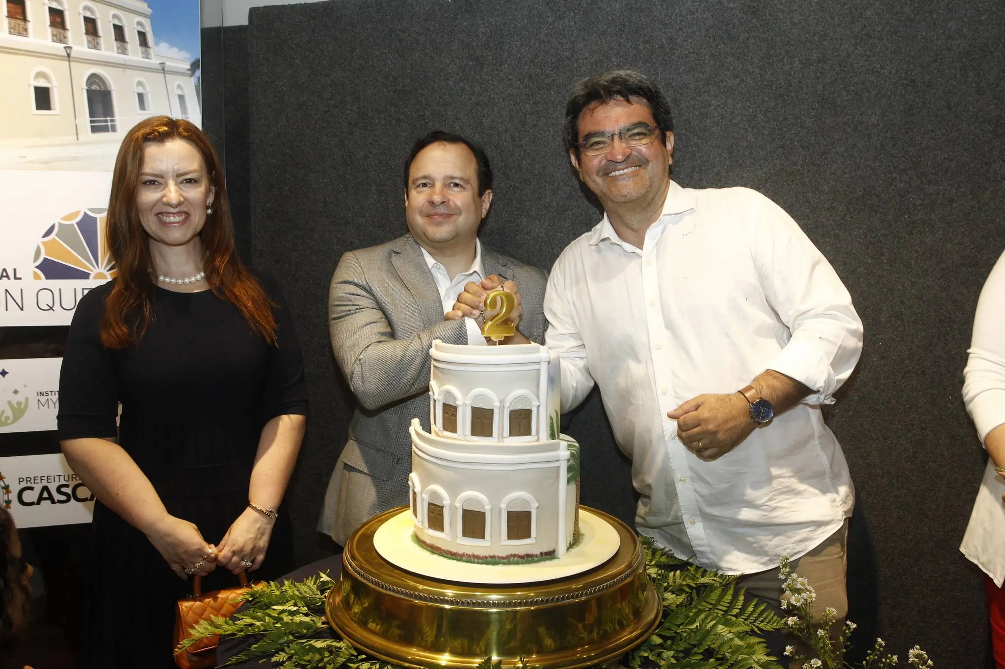 Aline Félix Barroso e Igor Queiroz Barroso com o Prefeito de Aquiraz, Tiago Ribeiro