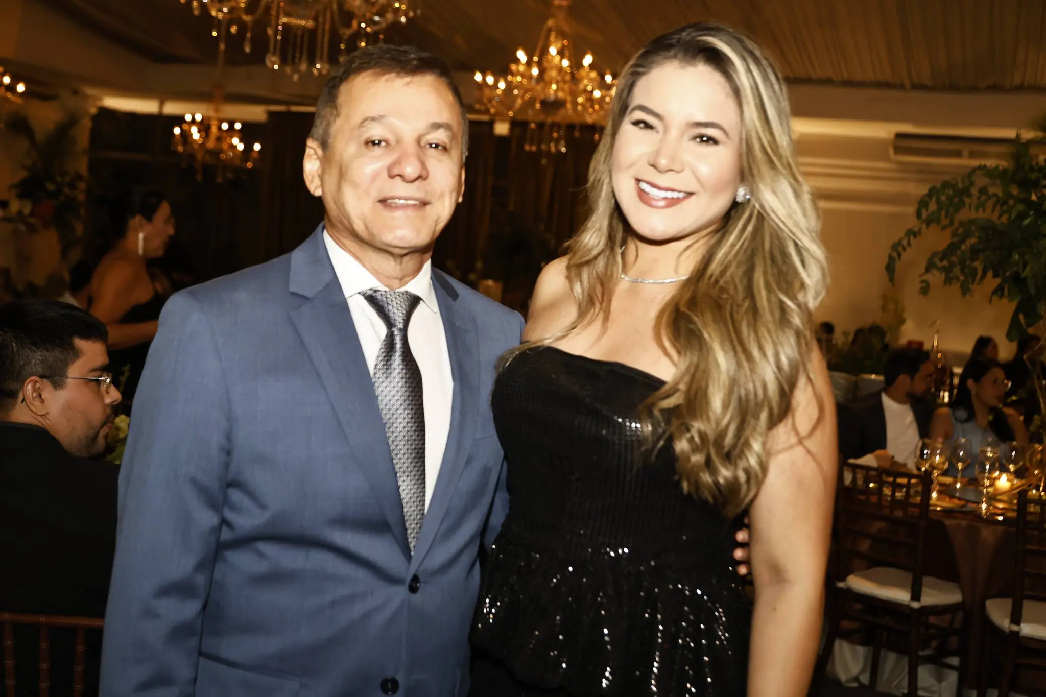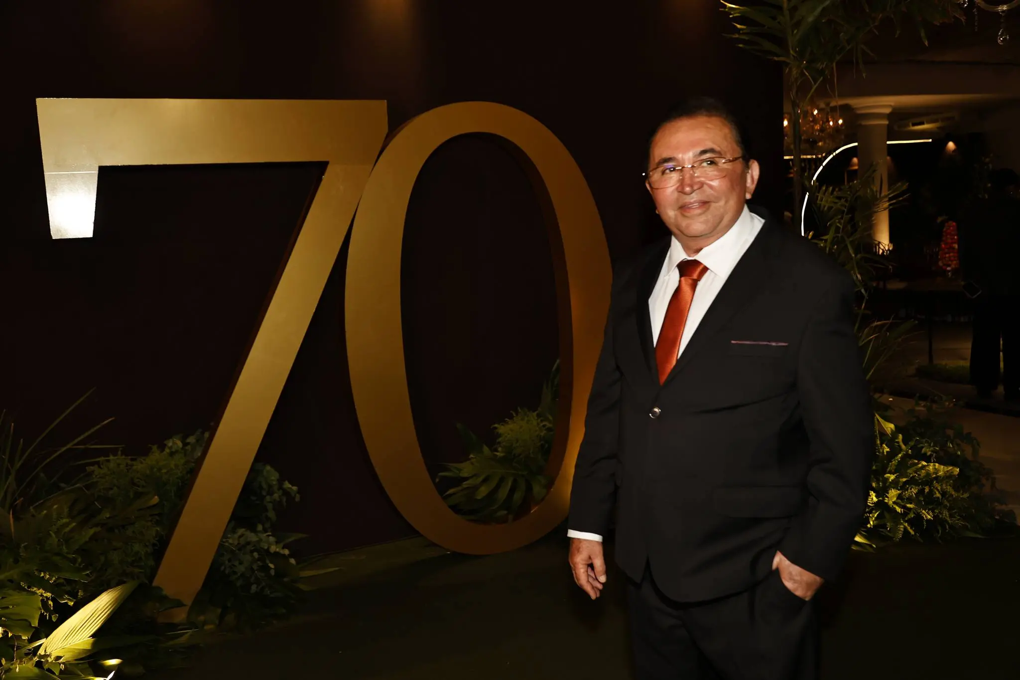 O decorador Rosalvo Ponte assinou uma ambientação elegante e acolhedora, transformando o espaço em cenário à altura da trajetória do aniversariante.