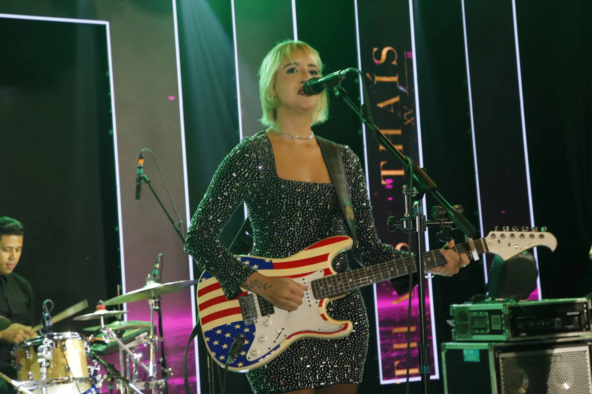 Thaís usava um Maison Cris, que realçava ainda mais sua beleza.