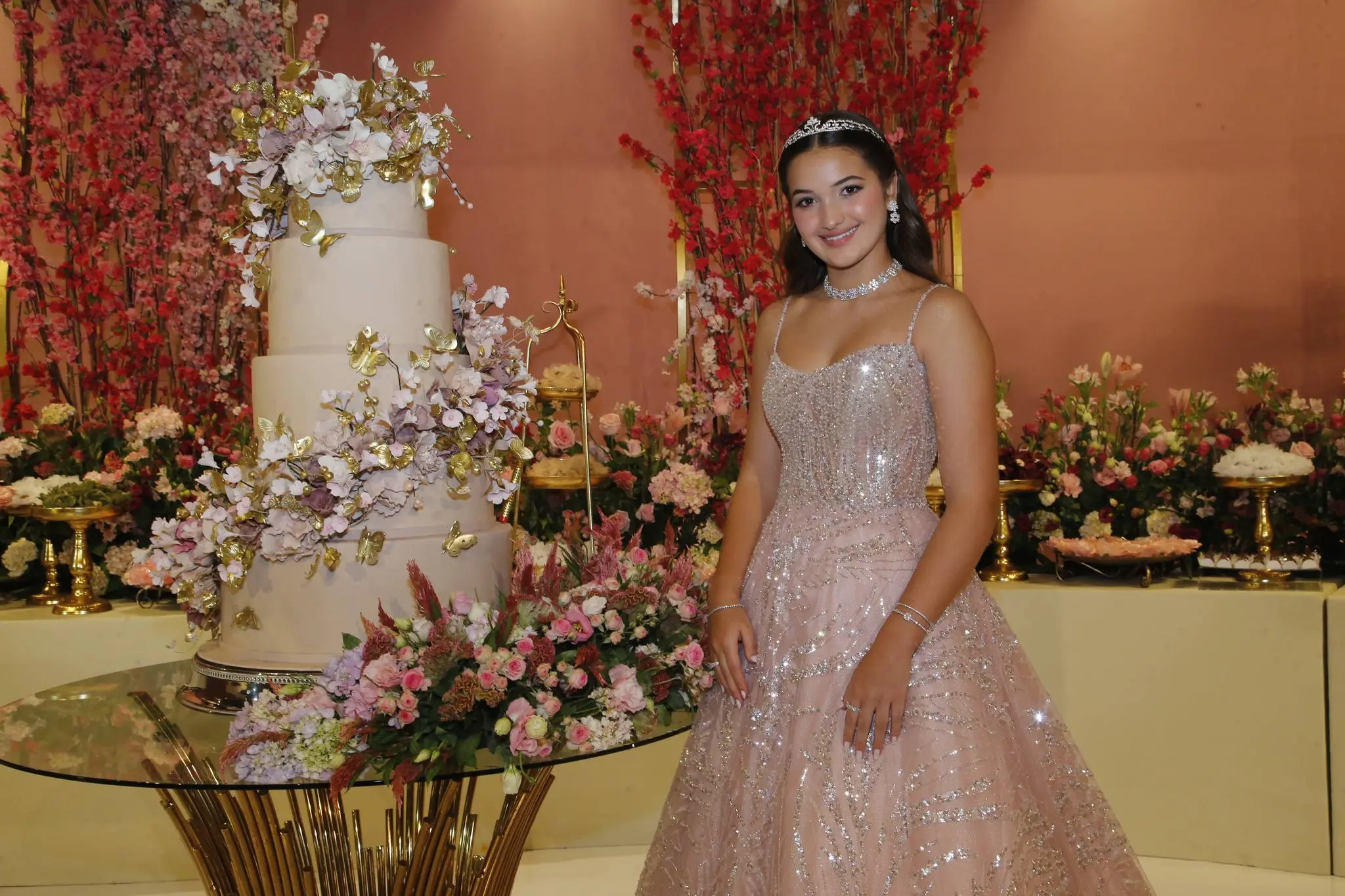 A decoração do local estava do jeito que a aniversariante imaginou, graças ao talento de Willfrydi Mendonça, que transformou o salão em um verdadeiro cenário de festa dos sonhos.