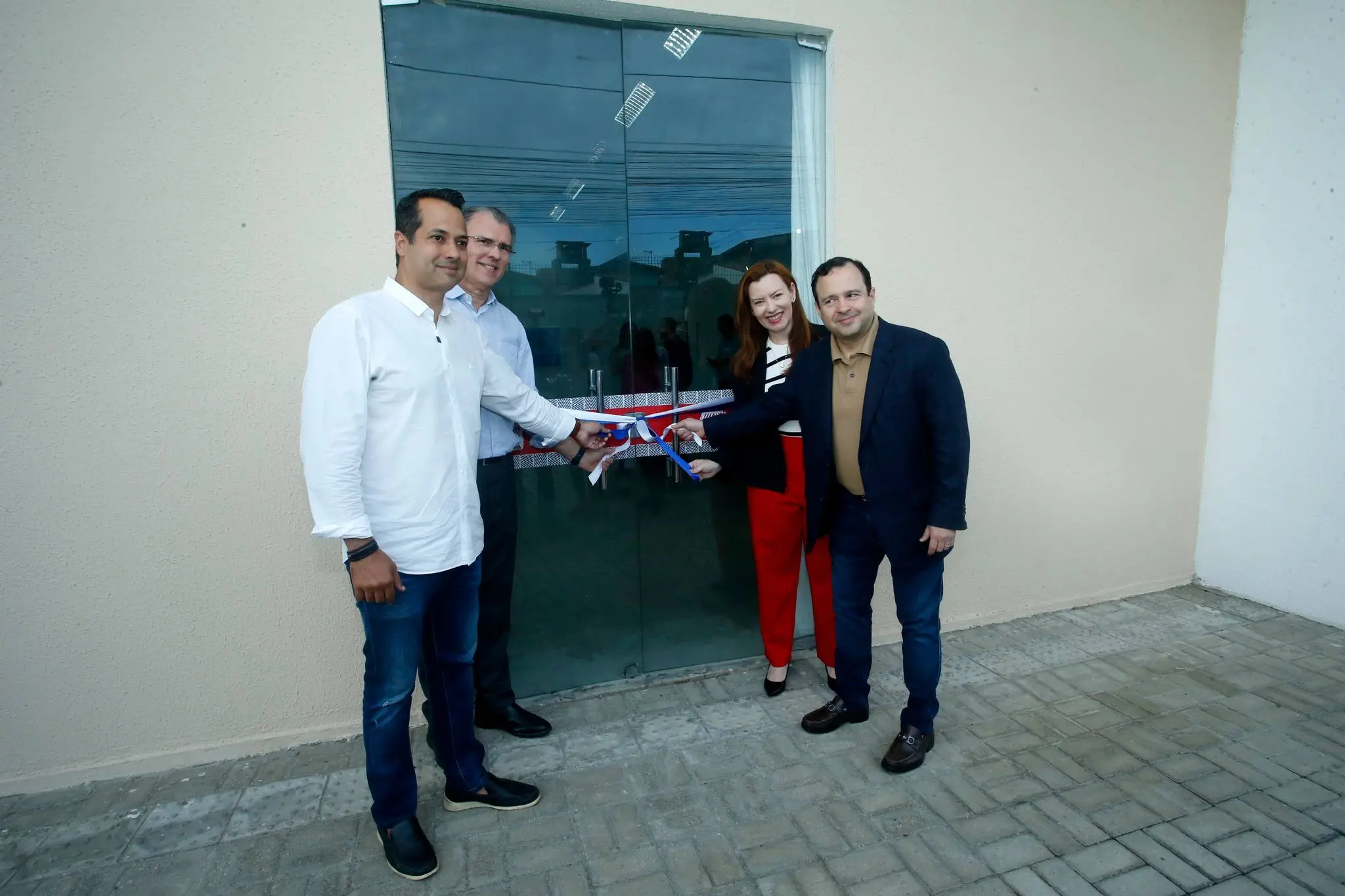Corte da fita de inauguração - Igor e Aline Queiroz Barroso com o Prefeito de Caucaia, Vitor Valim e o Reitor da Unifor, Randal Pompeu