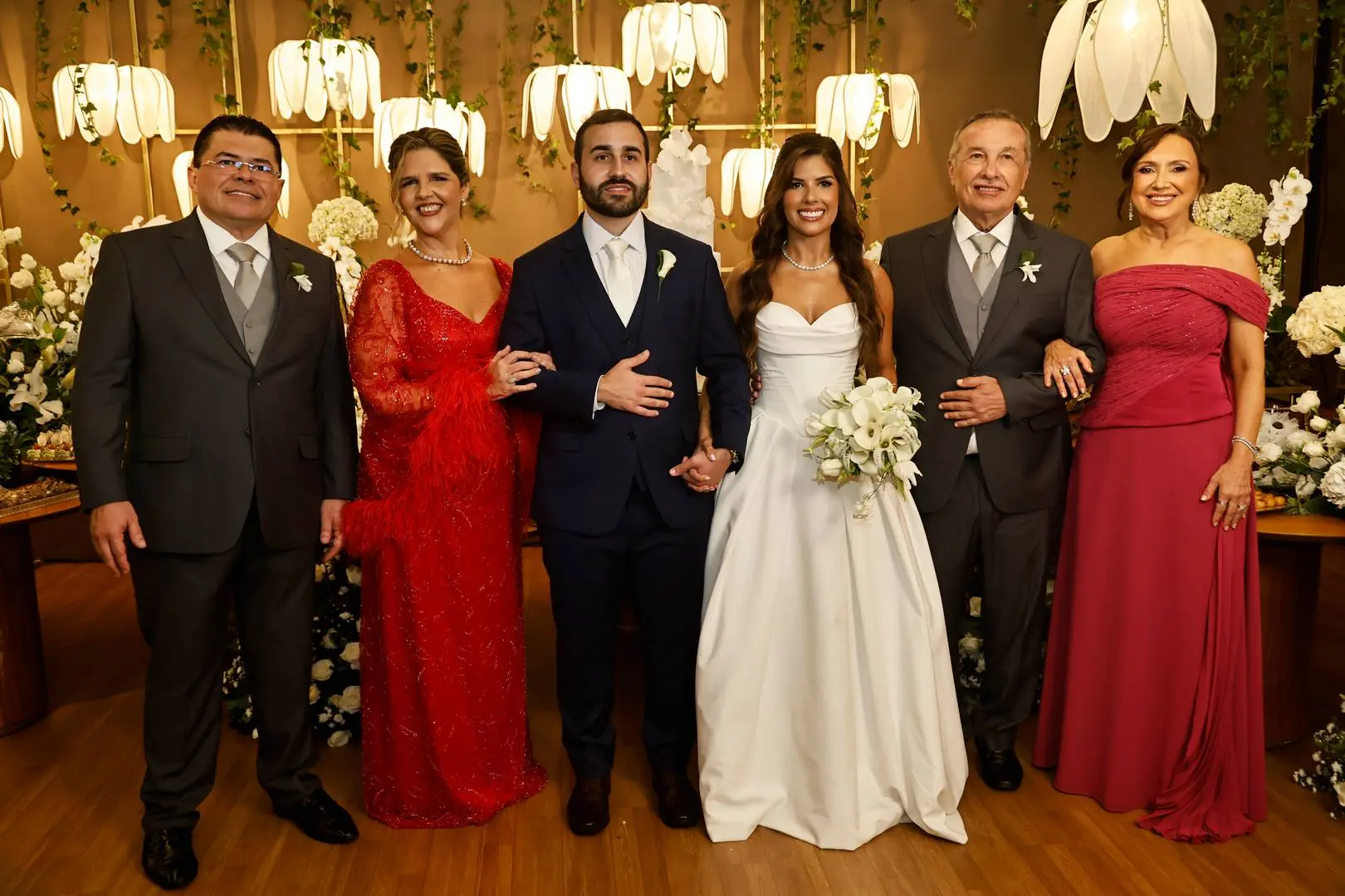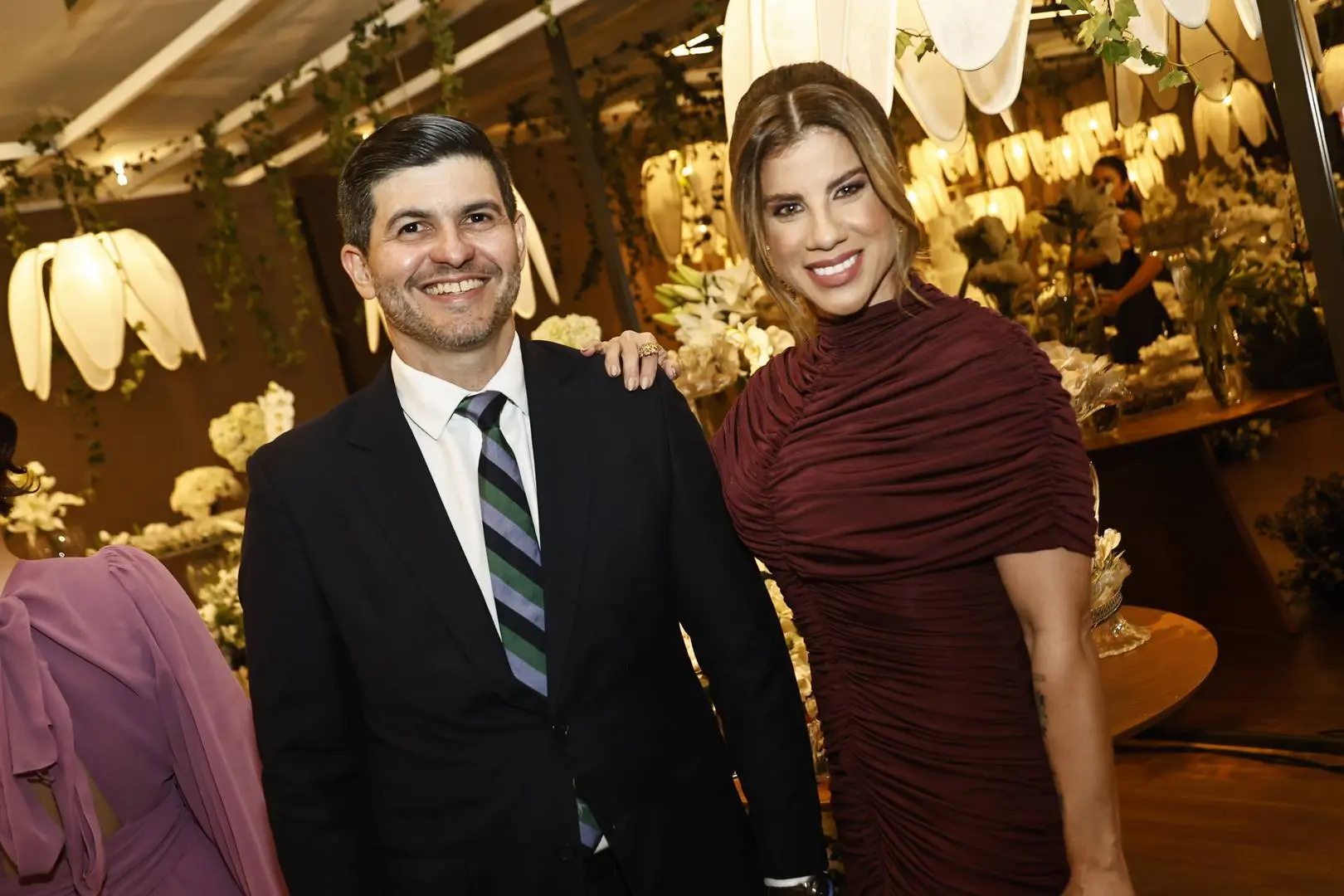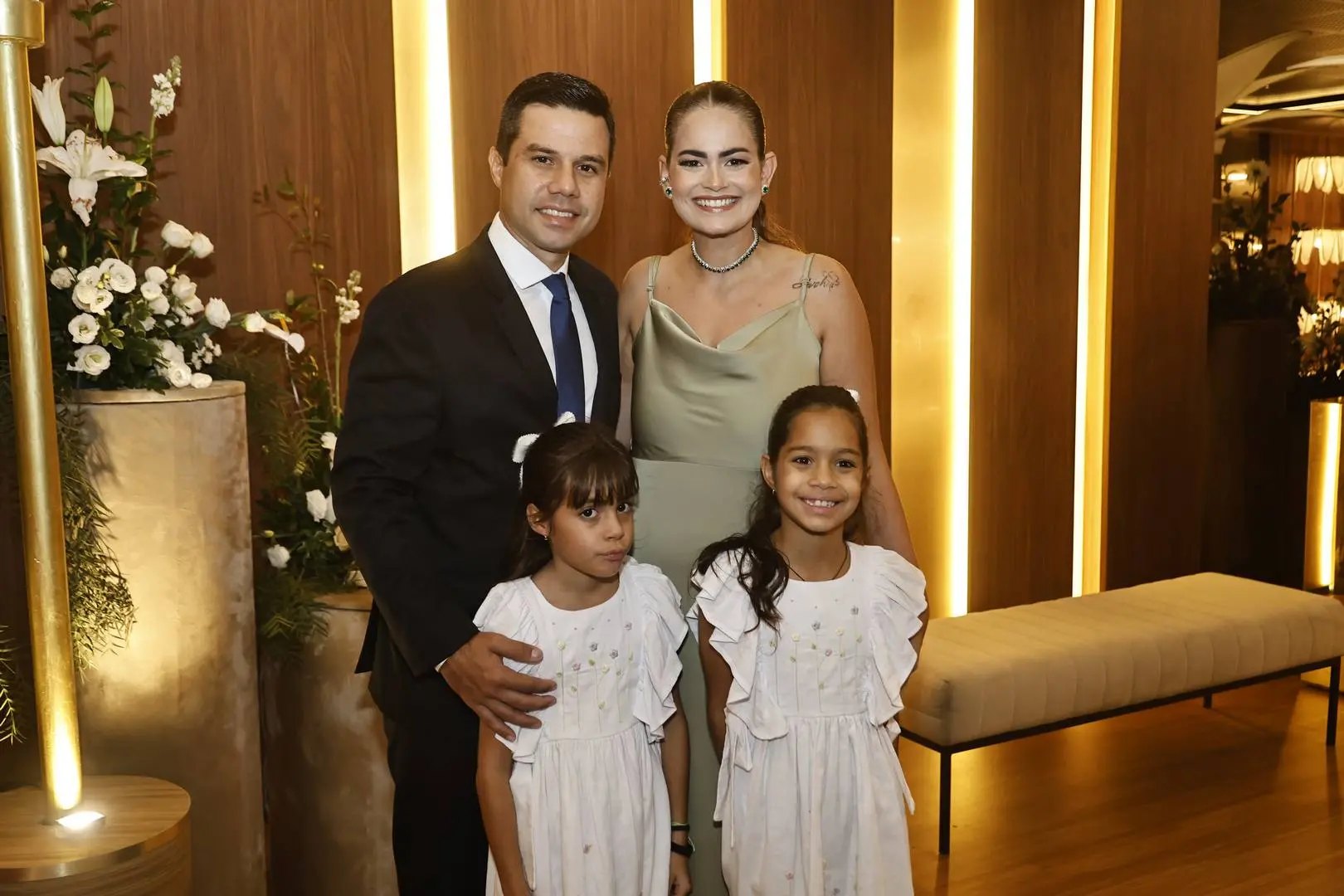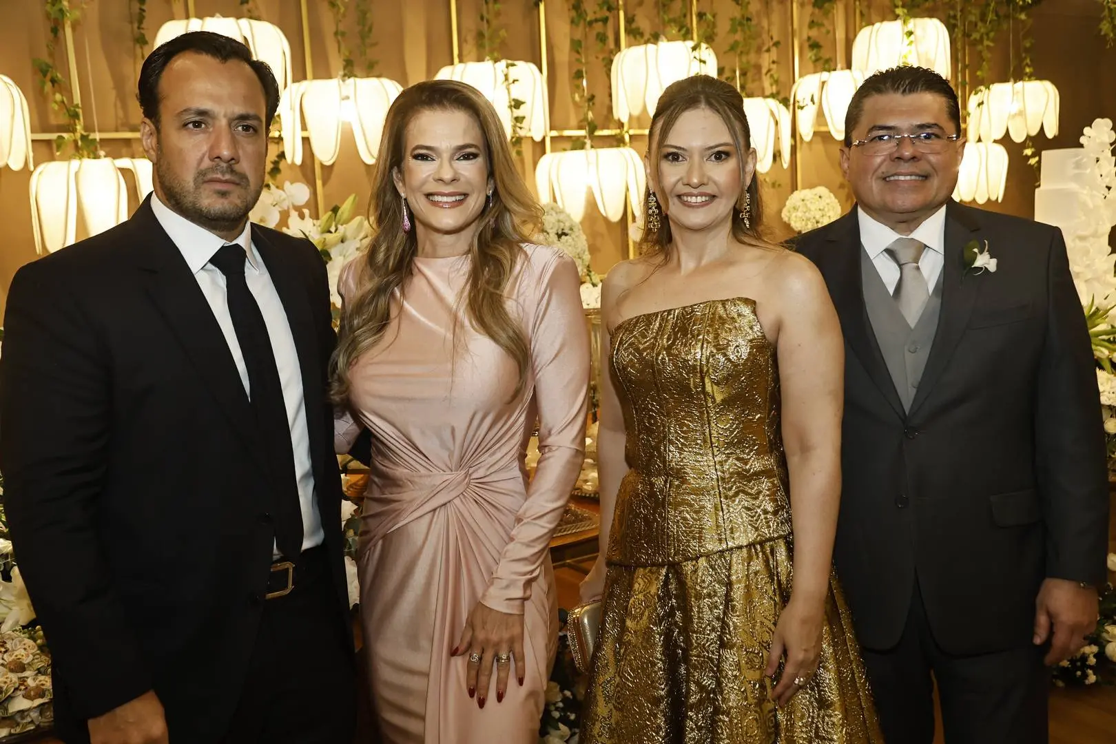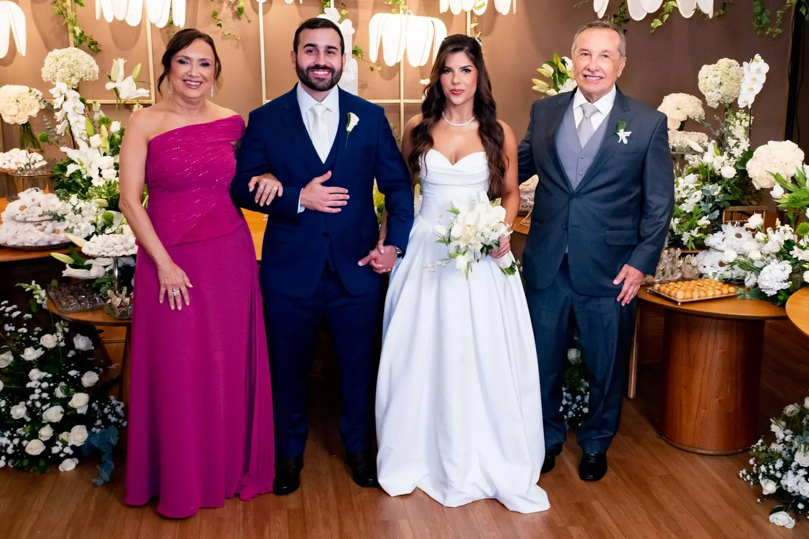Após a cerimônia, o cortejo seguiu para o Hotel Gran Marquise, onde familiares e amigos foram recebidos em festa com assinatura de Larissa Maia.
