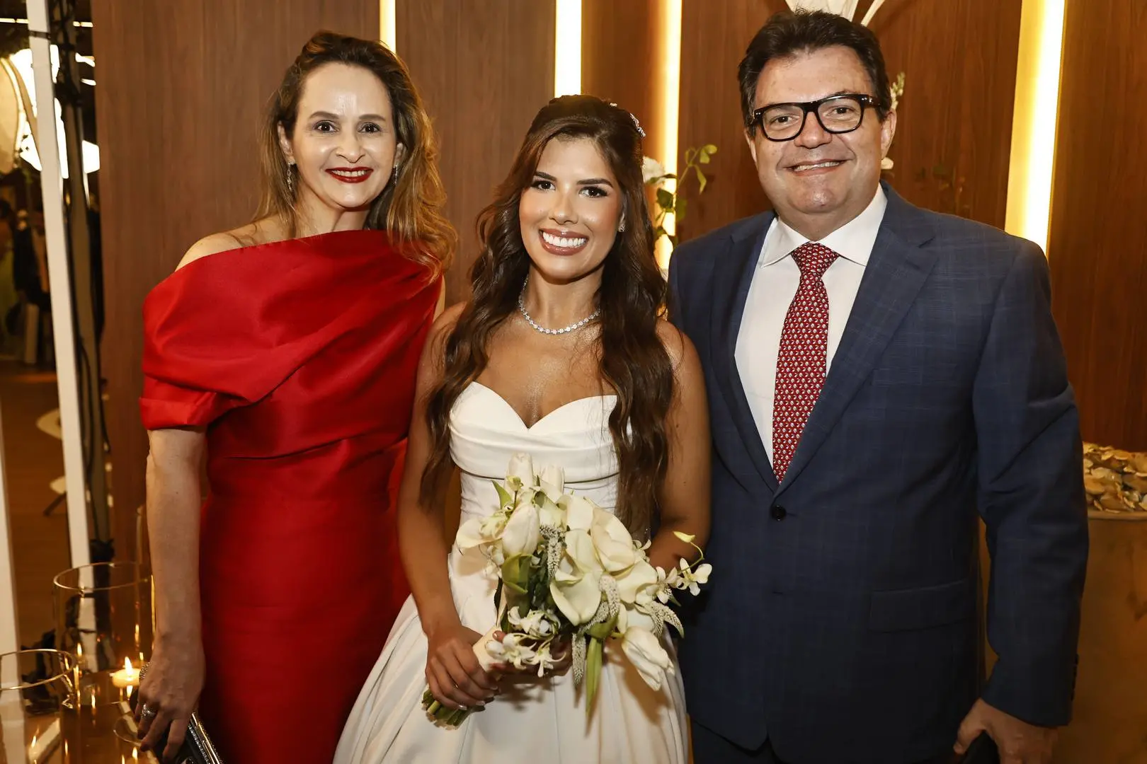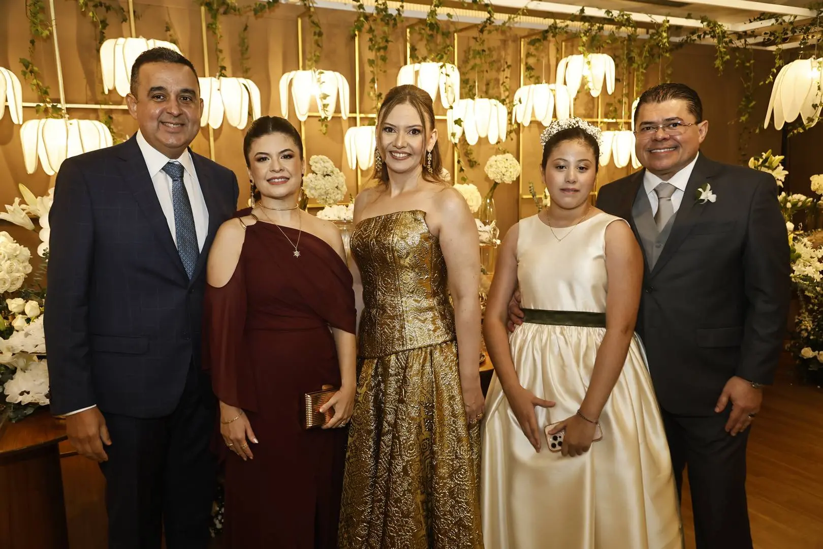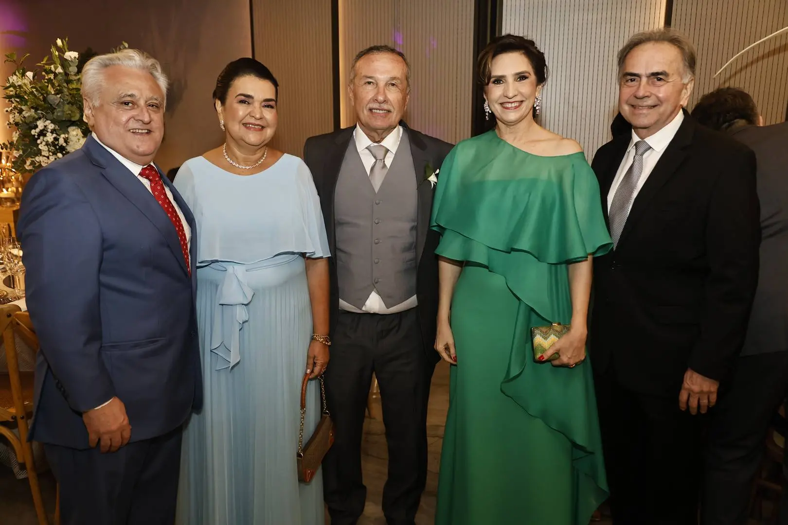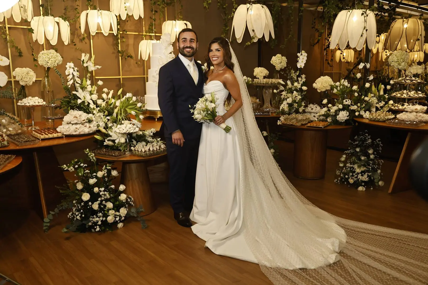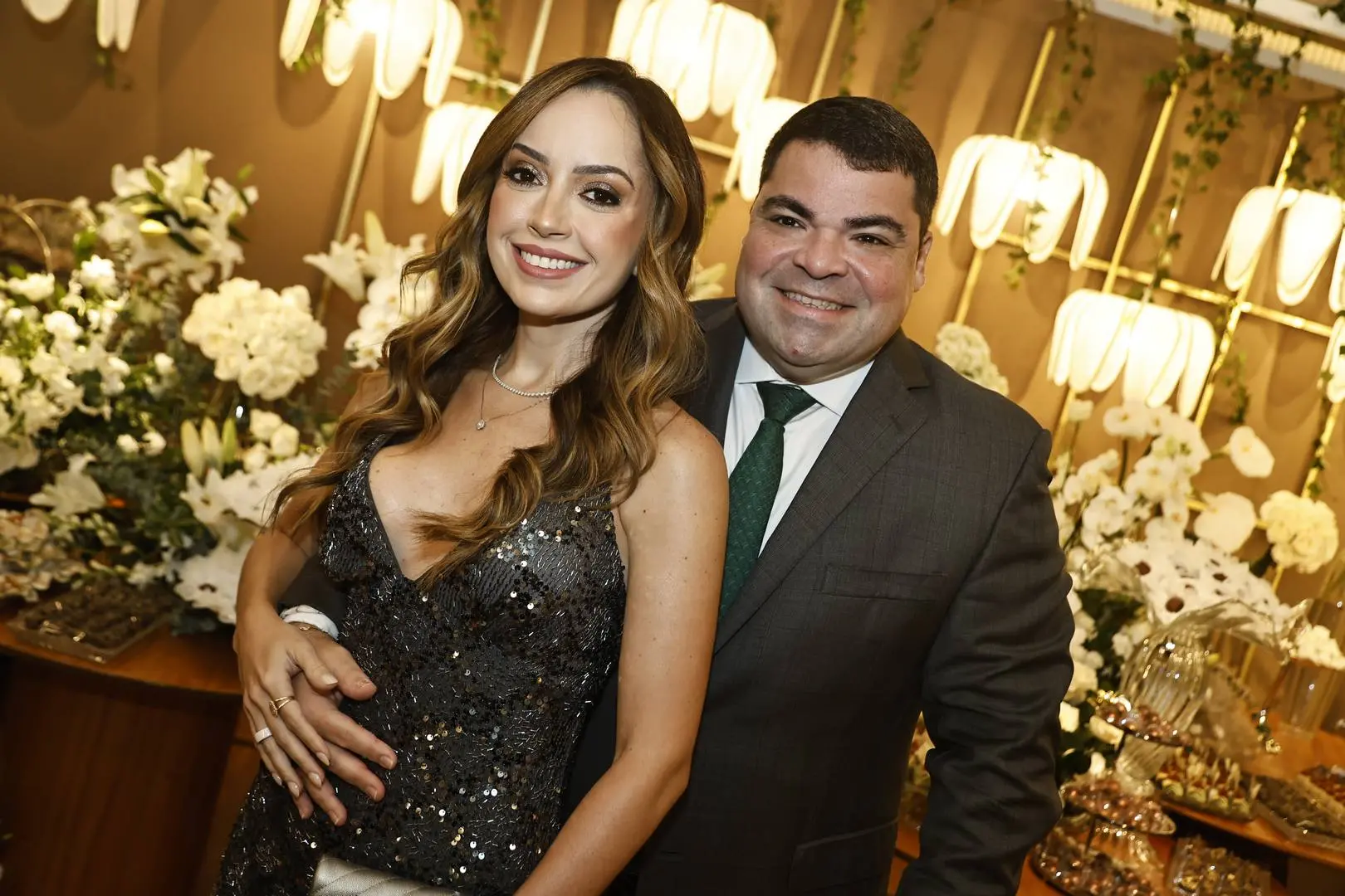 Após a cerimônia, o cortejo seguiu para o Hotel Gran Marquise, onde familiares e amigos foram recebidos em festa com assinatura de Larissa Maia.