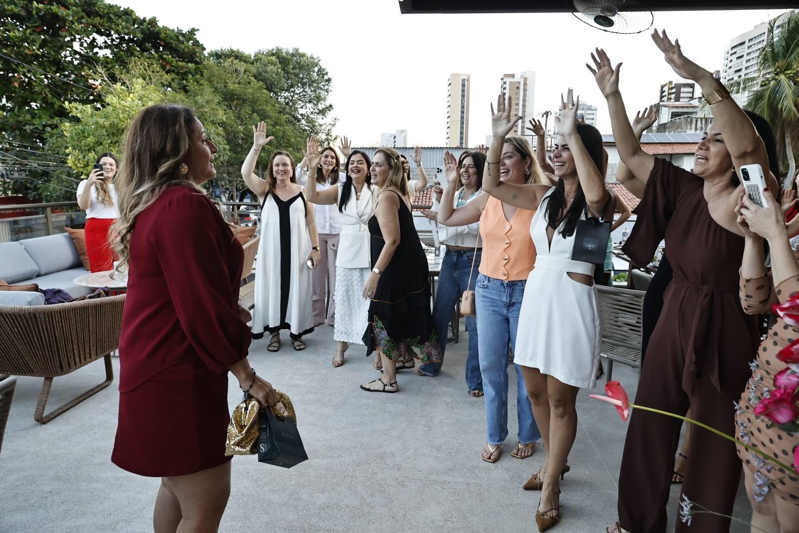 Karina Bezerra ganhou um animado b-day no fim da tarde de quinta-feira, 30 de novembro, no rooftop do restaurante Aquarela.