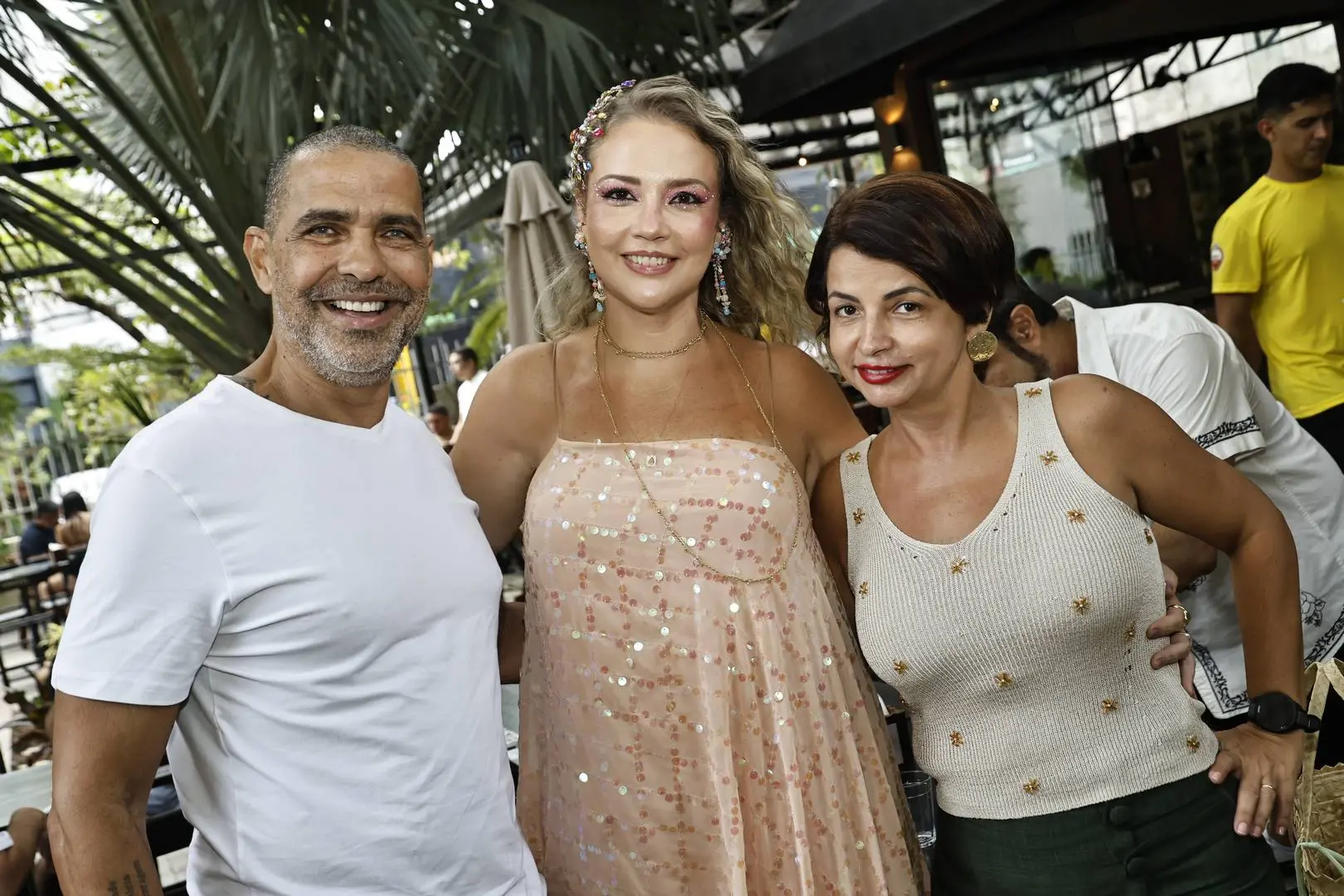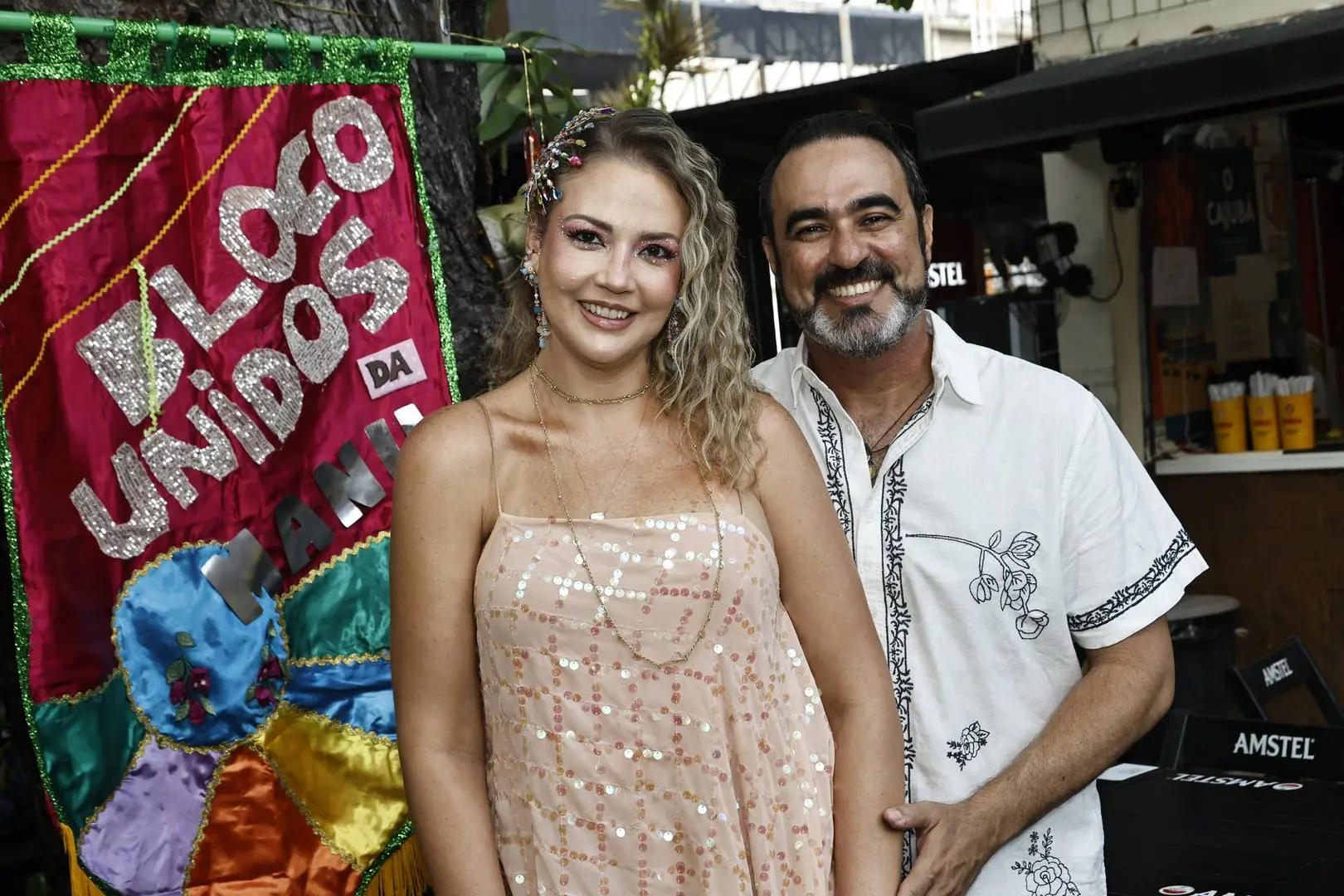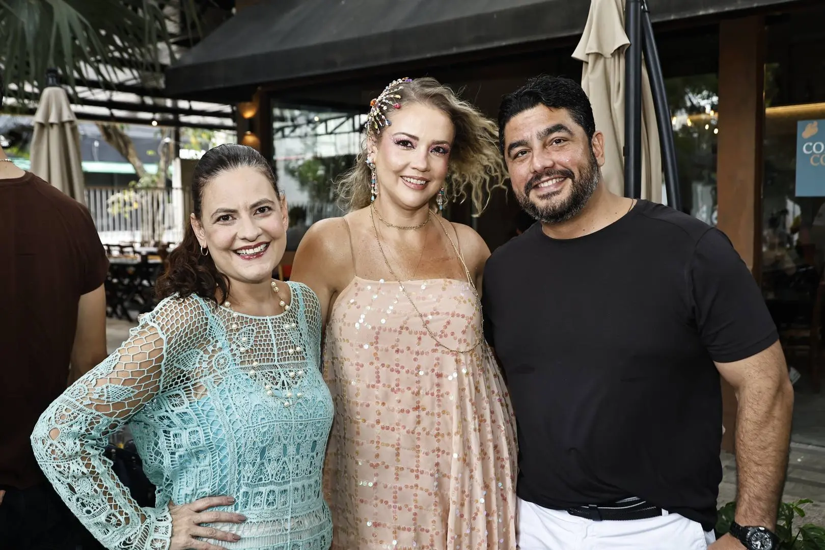 O cenário foi o Cajubar, estrategicamente escolhido sob a sombra de um cajueiro, onde nasceu o bloquinho particular da anfitriã, embalado por samba e pagode, em clima de primeiro grito de carnaval.