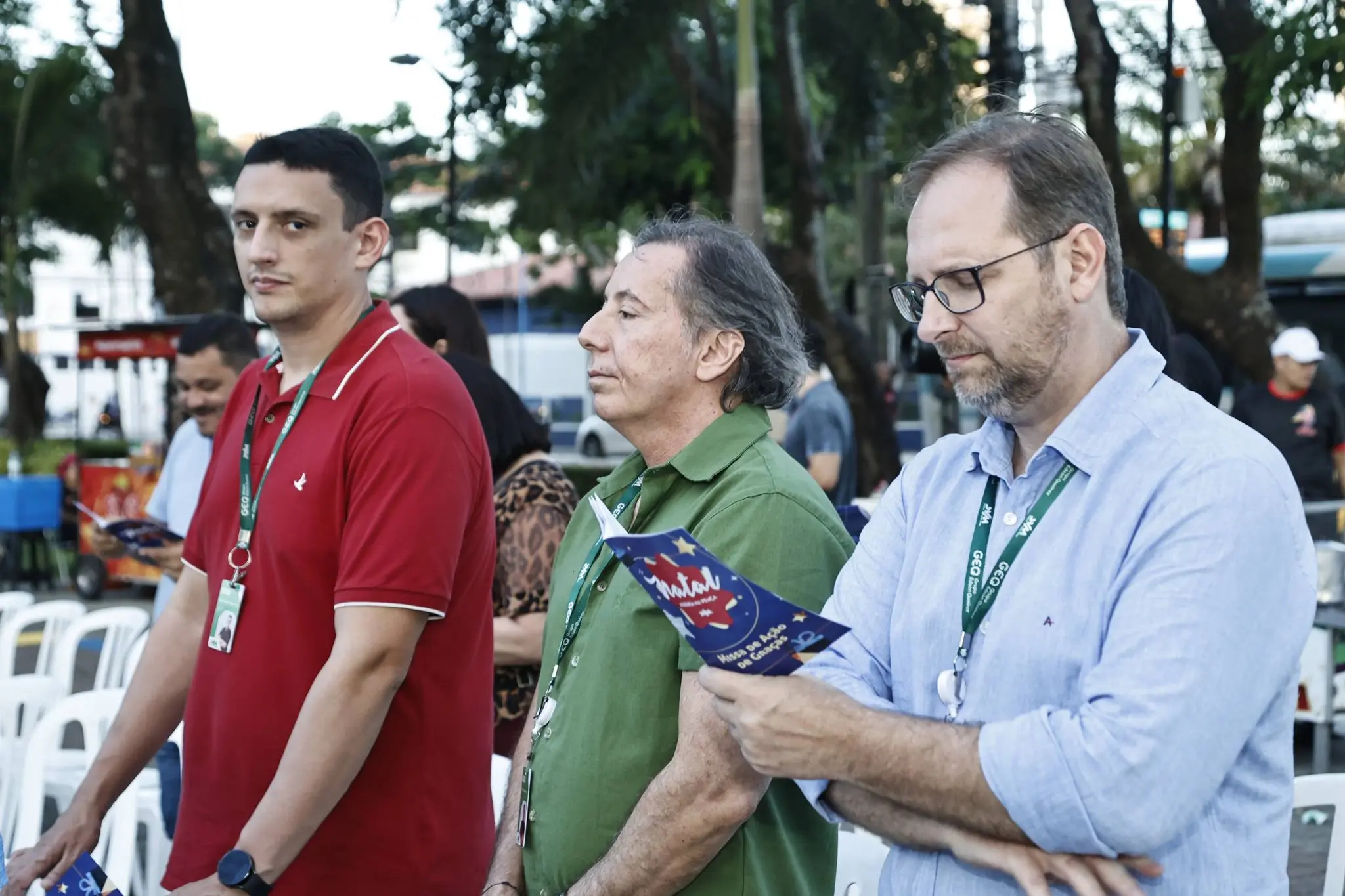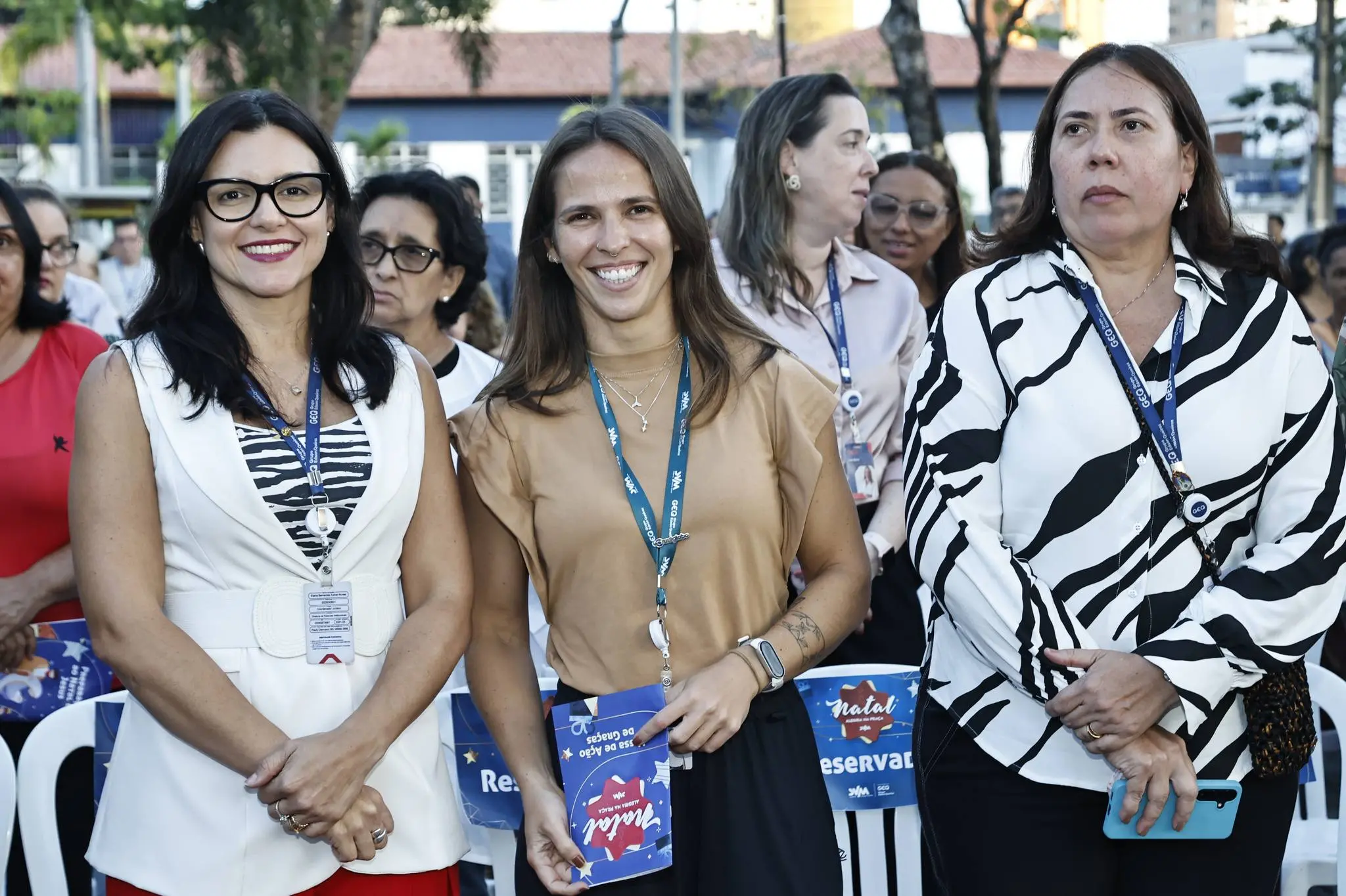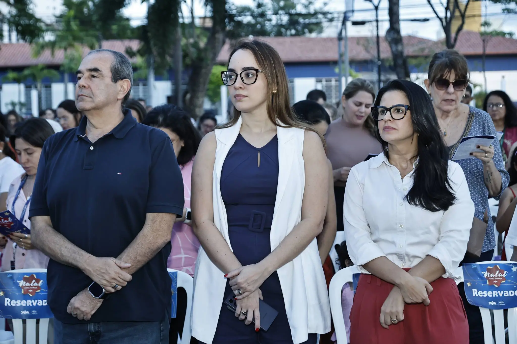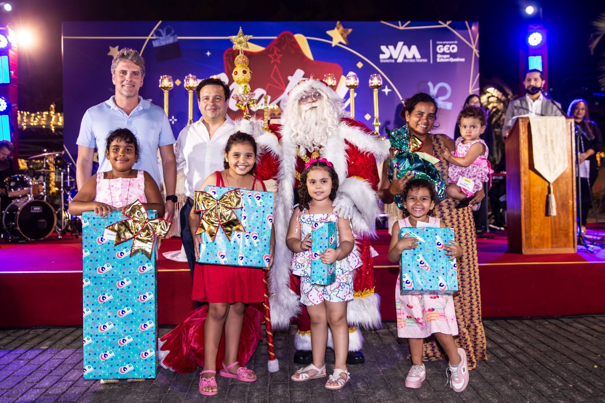 Em cena, Papai Noel, Ruy do Ceará, superintendente do SVM, e Igor Queiroz Barroso, representante do Conselho de Acionistas do GEQ, e a entrega dos presentes da ação “Meu Pedido de Natal”, iniciativa que transforma cartas em gestos concretos de solidariedade.