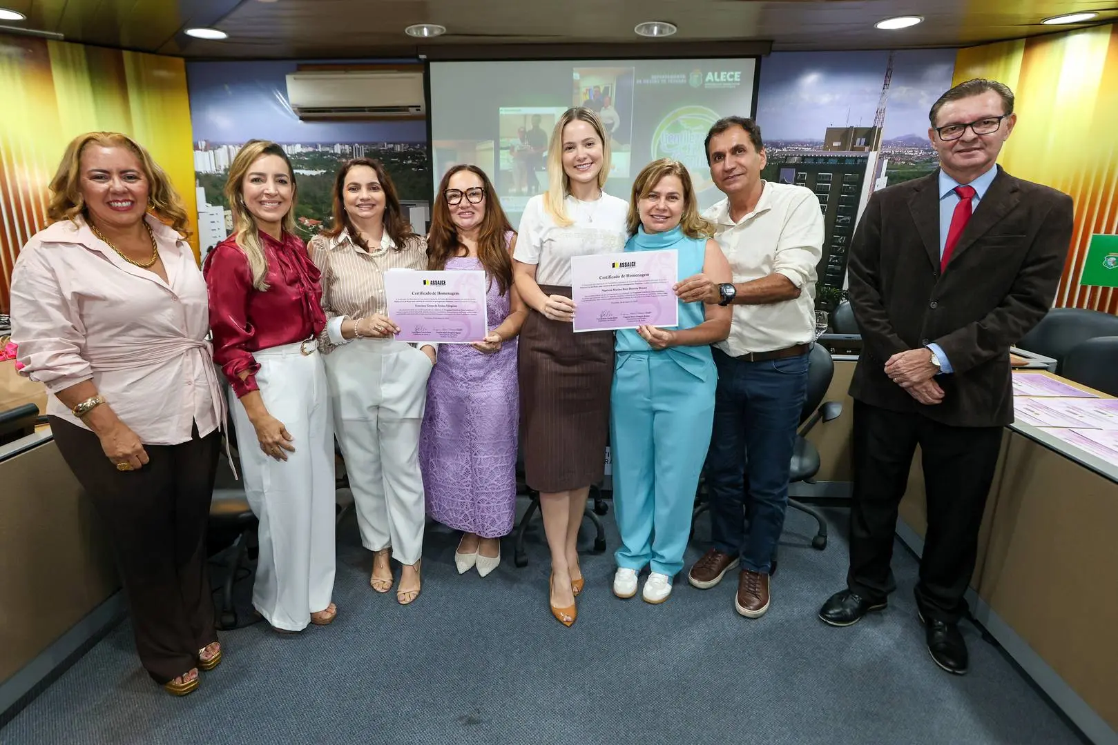 Quinze (15) servidoras da Alece foram homenageadas por suas trajetórias profissionais de excelência e pelo desenvolvimento de projetos de destaque dentro da instituição, reforçando o compromisso da Assalce com o reconhecimento de talentos e lideranças femininas no ambiente de trabalho.
