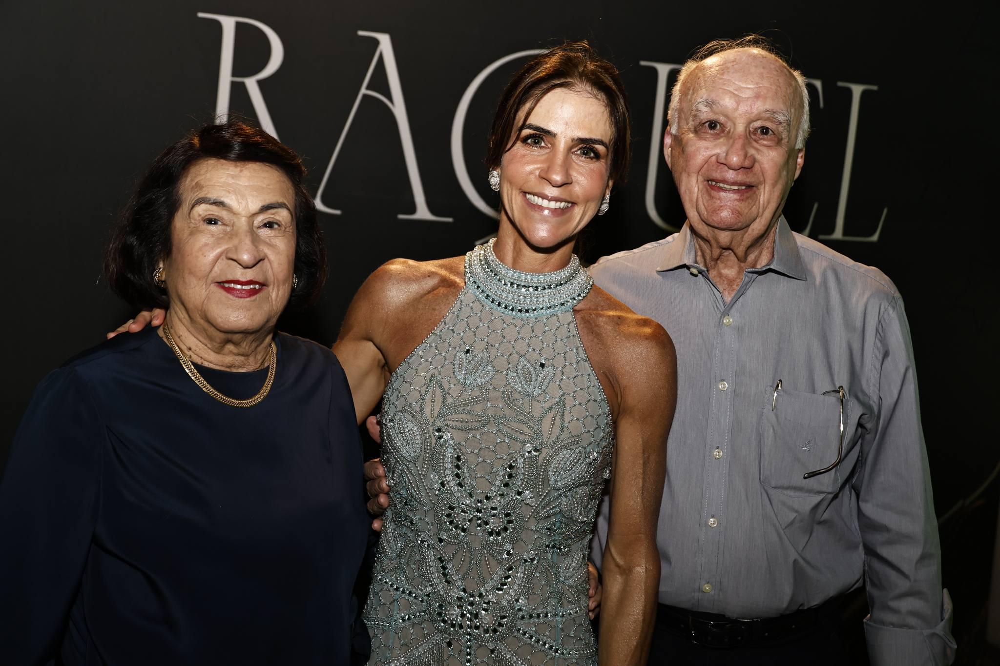 Um dos momentos mais emocionantes foi a surpresa preparada por sua irmã, Laura, que reuniu registros especiais em um painel de fotos, relembrando passagens marcantes da trajetória de Raquel.