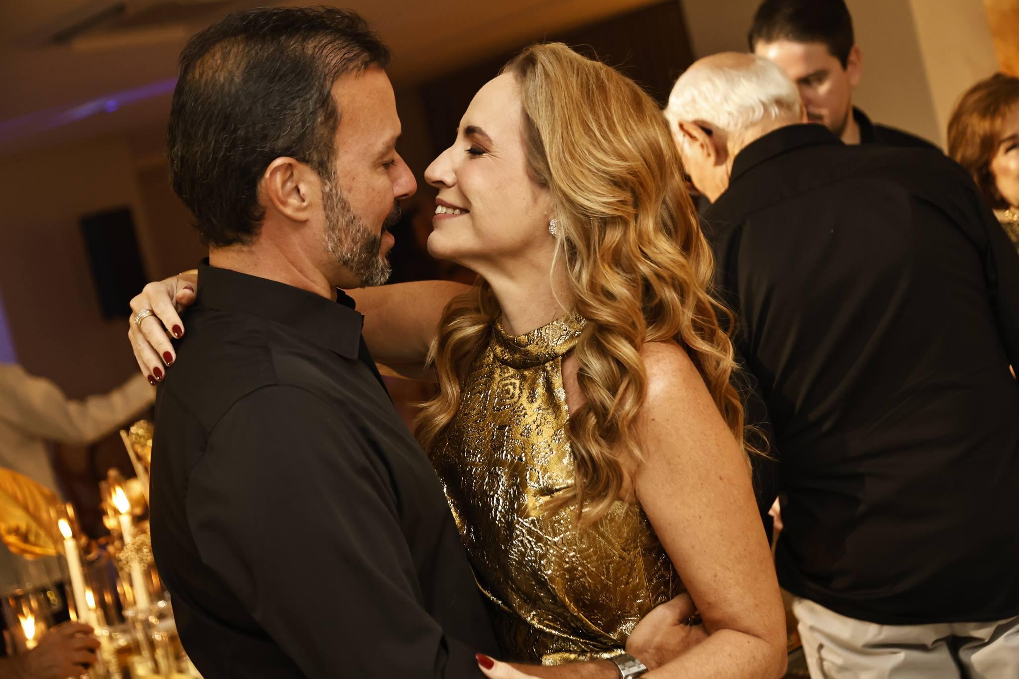 Danilo Serpa e Renata Duarte, durante a homenagem à aniversariante