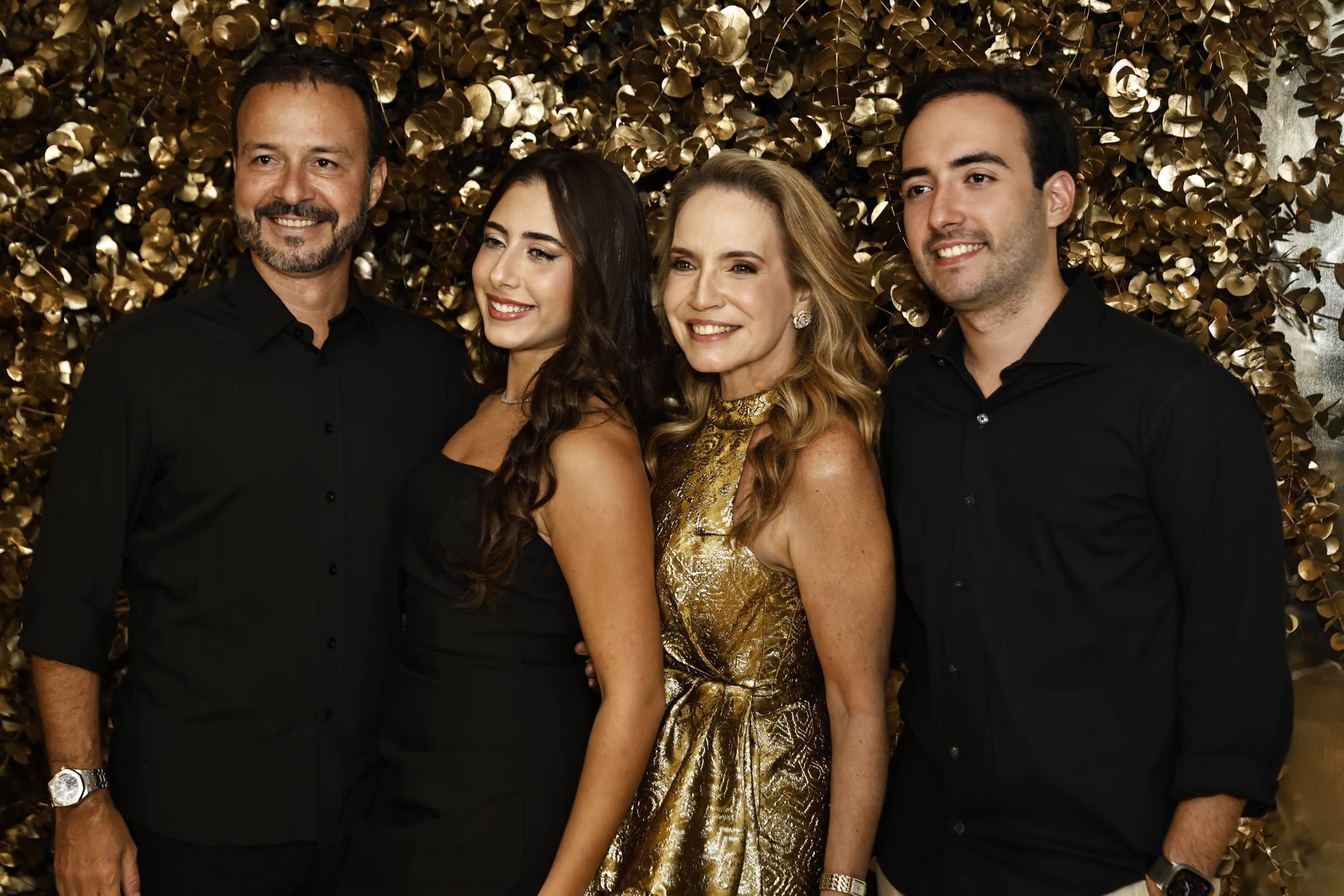 No registro, Renata aparece radiante ao lado do marido, Danilo Serpa, e dos filhos, Davi e Luiza — celebrando meio século de vida cercada de amor, alegria e boas energias.