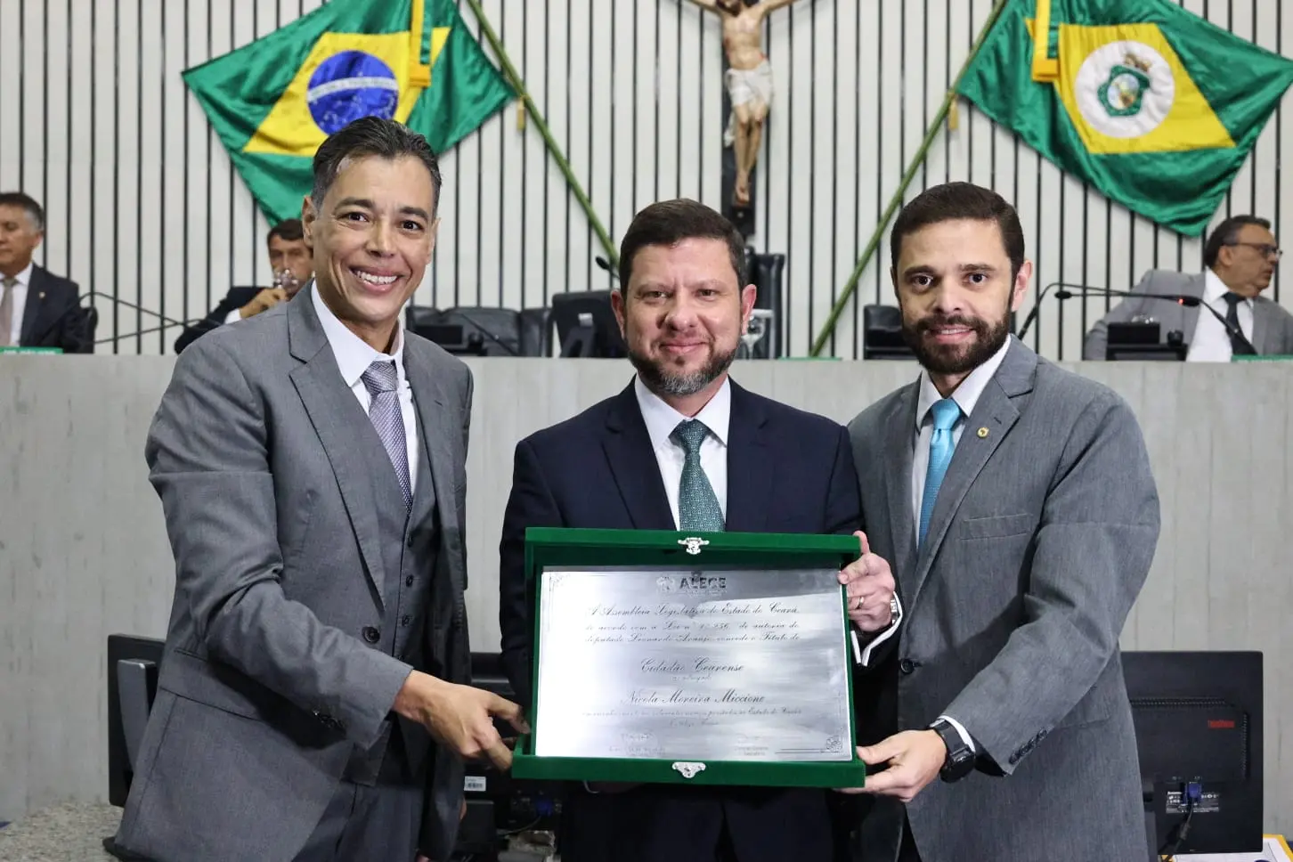 O secretário-chefe da Casa Civil do Governo do Estado do Rio de Janeiro, Nicola Moreira Miccione, foi agraciado com o Título de Cidadão Cearense nesta quinta-feira, 23, em uma sessão solene realizada no Plenário 13 de Maio da Assembleia Legislativa do Ceará (Alece). A homenagem foi requerida pelo deputado Júlio César Filho (PT).