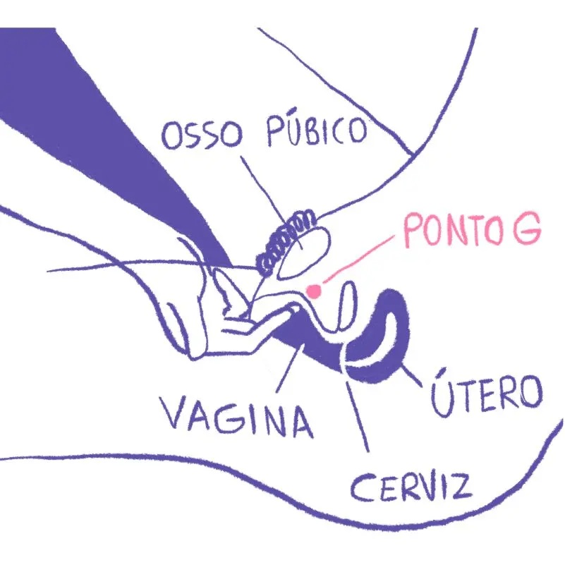 Ponto G: Para localizar essa zona, busque com os seus dedos uma área rugosa logo atrás do osso púbico (sozinha ou com alguém)