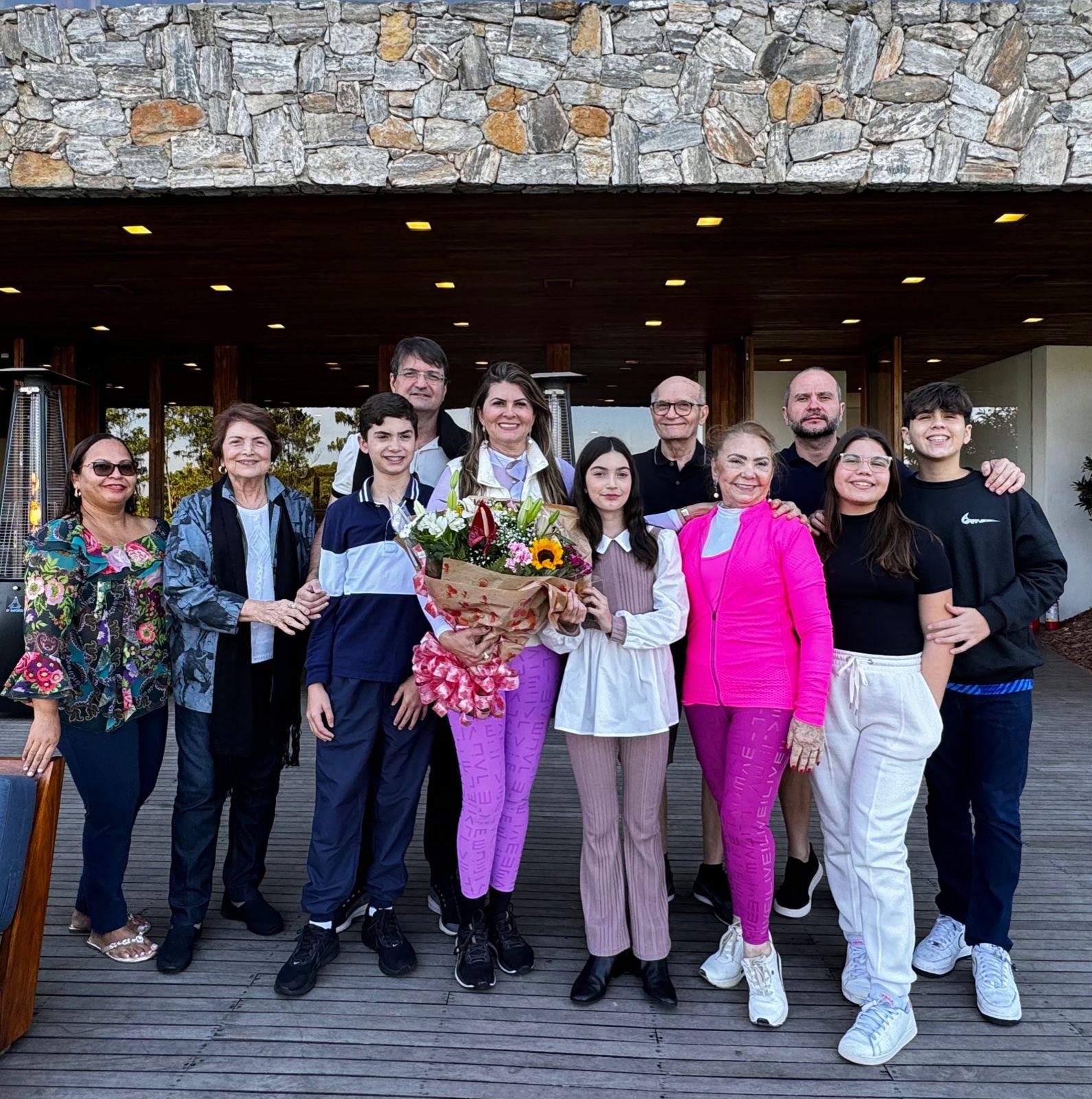 Natalie Pires comemorou ao lado da família no Baretta Restaurante, mas a presença inesperada de amigas tornou a celebração ainda mais especial