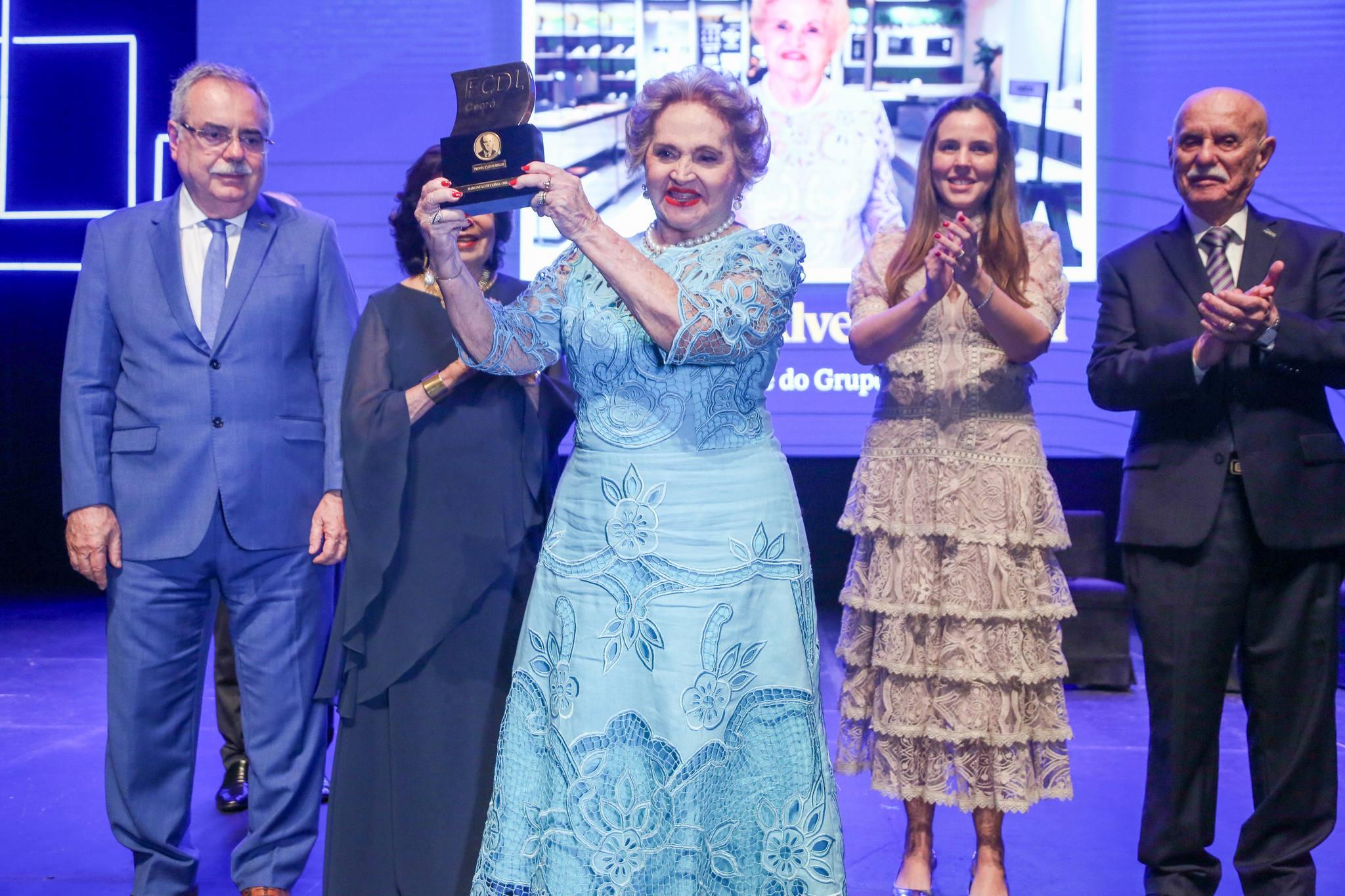 Durante a solenidade do Dia do Comerciante, Marlene Cabral recebeu o Troféu Clóvis Rolim