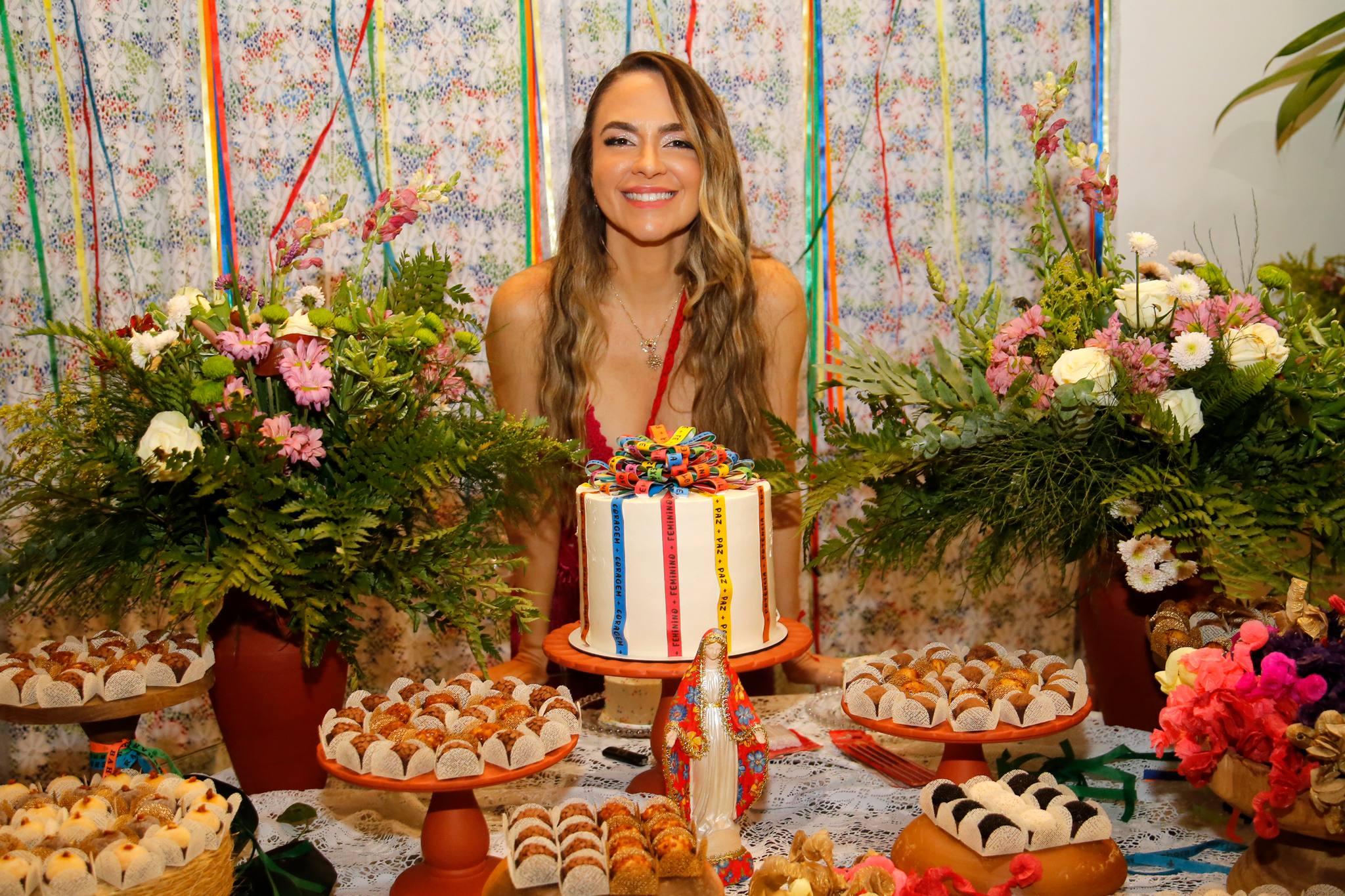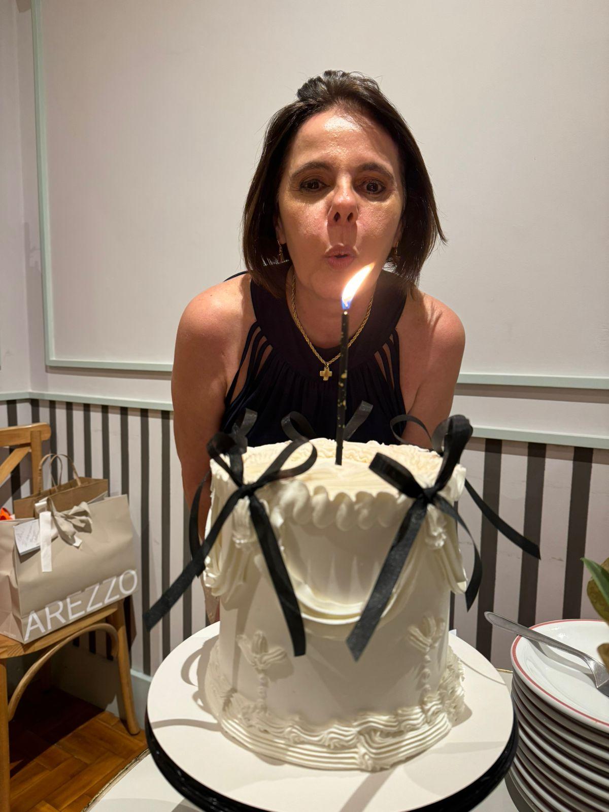 A empresária recebeu a família e amigas mais próximas em um ambiente mais acolhedor e repleto de sabores da gastronomia mediterrânea