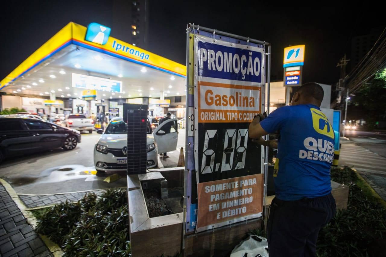 Uma semana após começar a valer em todo o País a redução da alíquota do ICMS sobre combustíveis, os postos de combustíveis seguem reduzindo o preço da gasolina. Na noite desta sexta-feira (8), o repórter fotográfico Thiago Gadelha flagrou em Fortaleza o momento em que o painel de um desses estabelecimentos era atualizado para marcar o valor do litro da gasolina comum para R$ 6,09.