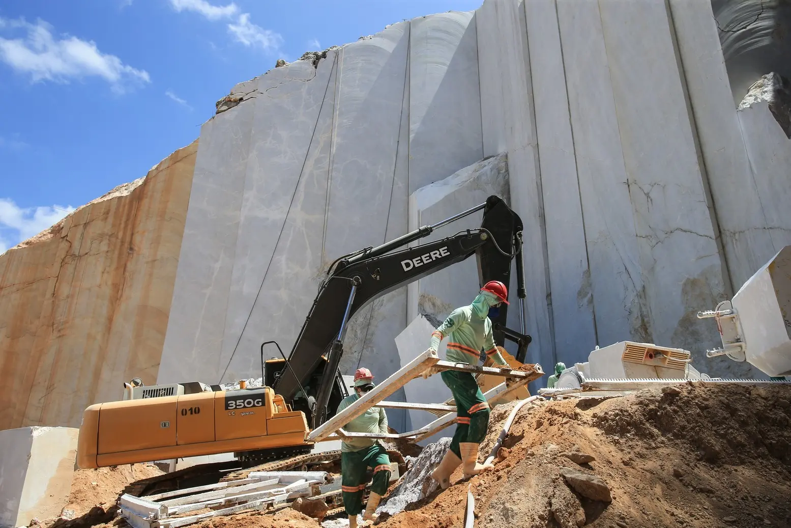 • Jazidas abundantes e exclusivas: a região concentra reservas expressivas de quartzito, como o Perla Venata e o Taj Mahal, variedades de alto valor no mercado internacional;