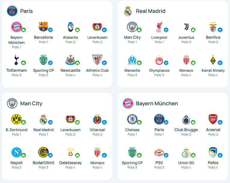 Nesta quinta-feira (28), foram conhecidos os jogos da 1ª Fase da Liga dos Campeões 2025/26.